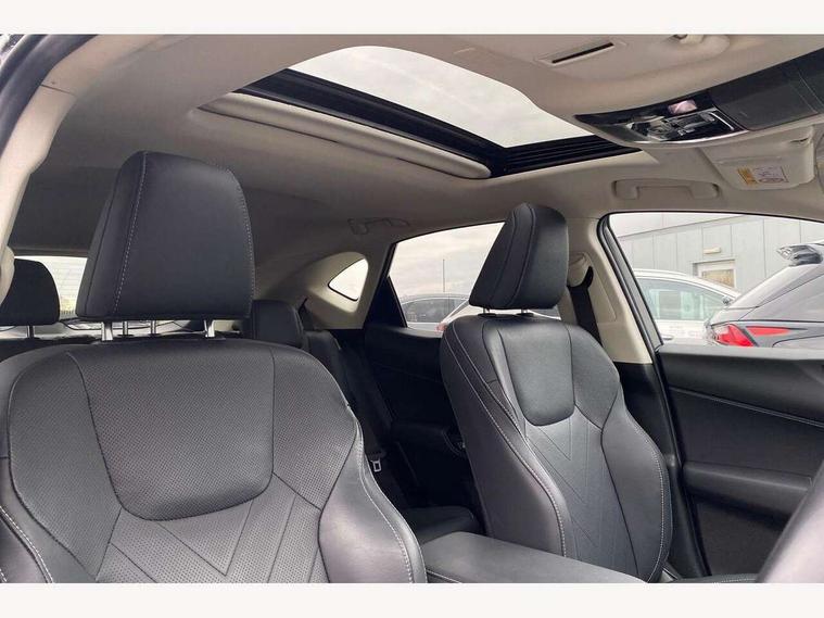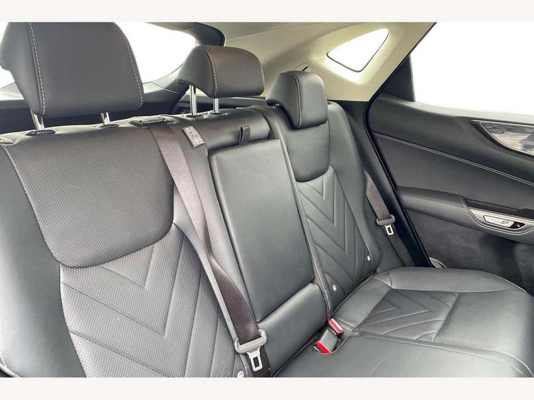 4 driving modes EV/Eco/Normal/Sport, 7" display in instrument binnacle, Blind spot monitoring with rear cross traffic alert, Bluetooth telephone connectivity, eCall emergency system, Electric speed sensitive power steering, Intelligent parking sensors - 4 front and 4 rear, Lane change flasher function, Lexus link connect - Cloud based navigation, cloud based voice assistant, always online and 9.8" VGA touchscreen, Push button starter, Reversing camera with back guidelines, Service interval indicator, Wireless Apple CarPlay and wired Android Auto, Wireless Smartphone charger, 6.6 kW onboard charger, All Wheel Drive (AWD), Hybrid automatic transmission, Vehicle Dynamics Integrated Management (VDIM), Vehicle Stability Control (VSC), 10 speakers, 4 USB ports - 2 front, one USB C, 2 rear USB C, DAB Digital radio, Auto dimming interior rear view mirror, Automatic headlights, Bi LED headlights, Double hidden exhaust pipes, Front and rear one touch power windows, with anti-jam protection, Heated, auto-folding, auto-dimming outside mirrors with reverse tilt function and turn indicators, Illuminated door handles with puddle light, LED brake lights and rear lights with emergency brake signal, LED daytime running lights, LED front fog lights, LED Indicators, Power back door with kick sensor, Privacy glass, rear doors and tailgate, Rain sensor windscreen wipers, Rear side wing doors, Rear wiper, Roof rails, 12V accessory port centre console and luggage compartment, 2 cupholders in front centre console, 2 way electrical lumbar adjustment for driver, 2 x fixed shopping bag hooks in boot, 2 x sun visors with vanity mirror and lamp, 3 seat bench in 2nd row, 4 x tie down hooks in the boot, 6 way manually adjustable front seats, 60/40 split folding rear seat, Adjustable rear seat backrest, Card holder installed in driver and passengers sun visors, Centre armrest with storage box, Dual climate control air conditioning system, Front and rear head restraints, Front and rear textile carpet mats, Front passenger seat, Heated front seats, Heated steering wheel, Leather gear lever, LED interior illumination, Power adjustable leather steering wheel with paddle shifts, Rear centre armrest with 2 cupholders, Tahara leather upholstery, Whiplash Injury Lessening (WIL) feature (active headrest) for seats, 2 x Isofix child rear seat restraints, 3 point ELR front seatbelts with pretensioners, 3x3 point rear seat belts, ABS, Adjustable seat belt anchor points, Driver and front passenger 2 stage airbag, Driver/front passenger side airbags, Drivers knee airbag, E-Latch with safe exit assist, EBD + Brake Assist, ECB (Electronically Controlled Brake System), Electronic parking brake, Front and rear curtain shield airbags, Front center airbag, Front passenger seat cushion airbag, Hill assist control, Lexus safety system - dynamic radar cruise control, pre collision system day and night, lane tracing assist, road sign, automatic high beam, OTA, Manual rear child locks, Passenger airbag cut-off device, Traction control, Tyre pressure warning, 2 x remote key fobs, Anti-theft system with alarm, intrusion sensor, glass breakage sensor, tilt sensor and engine immobiliser, Locking wheel nuts, Smart keyless entry, Speed sensitive auto door locking, Two motion door lock with double lock, VIN Window etching, 3D prism black Inlay, Tyre repair kit,