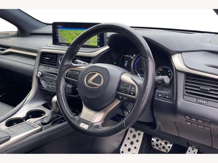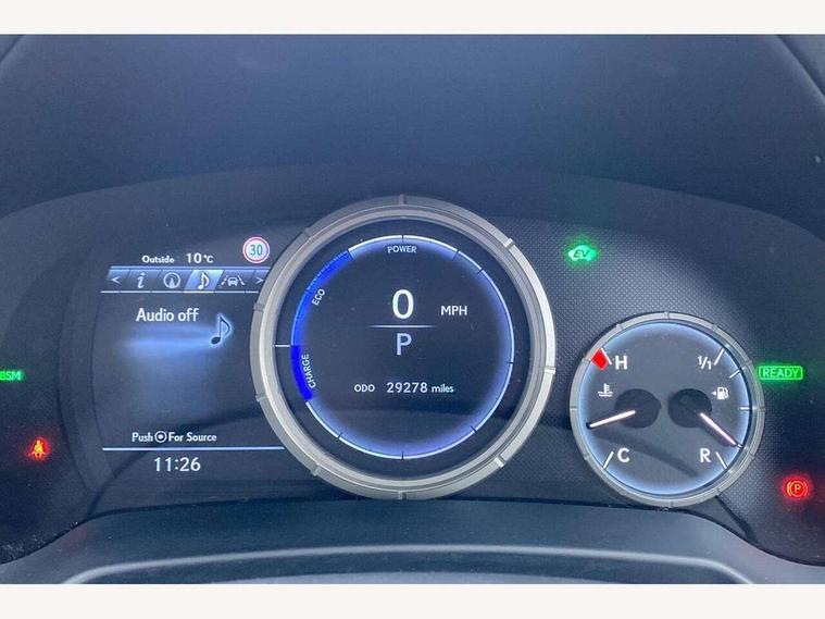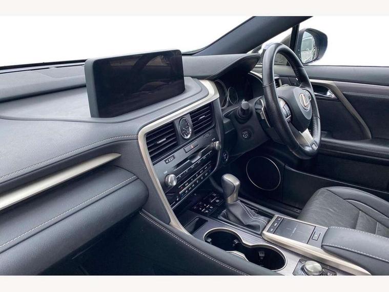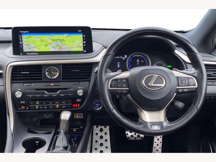 12.3" Touchscreen display and remote touch interface, 5 Driving modes EV/Normal/Eco/Sport/Sport+, Analogue clock with GPS function, Apple car play/Android Auto, Bluetooth mobile phone connectivity, Electric power steering, F SPORT combination meter, Front and rear parking sensors with intelligent clearance sonar, Hands free power boot lid operation with kick sensor, Lane change flasher function, Lexus link connected services with available optional wifi, Lexus Premium Navigation with full European map capability, street view and connected services, Multi-information display 4-inch TFT, Push button starter, Reversing camera with back guide lines, Wireless Smartphone charger, Adaptive variable suspension, F SPORT specific suspension tuning, Front and rear performance dampers, Vehicle Dynamics Integrated Management (VDIM), Vehicle Stability Control (VSC), 12 speakers Pioneer audio, AUX socket with VTR compatibility, DAB Digital radio, DVD, Front and rear USB ports, 3 eye LED headlights with adaptive high beam system with bladescan, Auto dimming rear view mirror, F SPORT exterior styling consists of Mesh front grille, front and rear bumper, badging, black outside mirror covers, Front and rear electric windows, Headlight washers, Heated, auto-folding door mirrors, auto dimming with rerverse tilt and memory, LED brake lights and rear lights with emergency brake signal, LED cornering headlights, LED daytime running lights, LED front and rear sequential indicators, LED front fog lights, Privacy glass, rear doors and tailgate, Puddle lights, Rain sensor windscreen wipers, Roof rails, 2 map pockets in the rear, 2 way electric lumbar support, 2 way manually adjustable front headrests, 2 way manually adjustable rear headrests, 2 x fixed shopping bag hooks in boot, 2 x Sunvisors with vanity mirror and lamp, 3 x 12V power sockets, 4 x tie down hooks in the boot, 60/40 split folding rear seat with 40/20/40 folding ability, 8 way electric adjust front seats, Active sound control, Card holder installed in driver and passengers sun visors, Centre and rear armrest with 2 cupholders, Centre armrest with storage box, Climate concierge, Drilled F SPORT aluminium sports pedals, Driver seat memory function, Driver's seat easy access auto retraction function, Dual zone climate control air conditioning system with S flow and Nanoe technology, Electrically adjustable F SPORT leather steering wheel with paddle shifts and auto retraction function, Electrically adjustable steering column, F SPORT leather gearlever, F SPORT seats - Leather upholstery, Glasses holder in roof lighting panel, Heated front seats, Heated steering wheel, Illuminated entry system, Isofix standard child seat restraint mounting, LED interior illumination, Rear armrest with storage, Rear door sunshades, Self charging hybrid, Sliding/reclining rear seats, Small compartment to right of steering wheel, Textile carpet mats, Unique LED illumination instrumnet panel, Ventilated front seats, 3 point ELR front and rear seatbelts with pretensioners, ABS, Curtain airbags, Driver and front passenger 2 stage airbag, Driver/front passenger side airbags, Drivers knee airbag, EBD + Brake Assist, Electronic parking brake, Electronically controlled braking, Front passenger seat cushion airbag, Hill start assist, Lexus safety system + includes dynamic radar cruise control, pre collision system day and night, lane tracing assist, road sign, adaptive high beam, Passenger airbag cut-off device, Rear passenger side airbags, Traction control, Tyre pressure warning, WIL whiplash protection front seats, Anti theft system with alarm, intrusion sensor, tilt sensor, glass breakage sensor and engine immobiliser, Locking wheel nuts, Security window etching, Smart keyless entry, Two motion door lock with double lock, Aluminium inlays, 20" F SPORT alloy wheels, Temporary spare wheel,