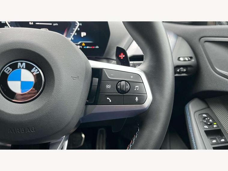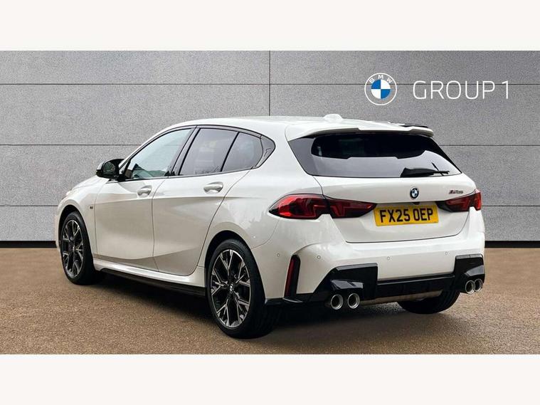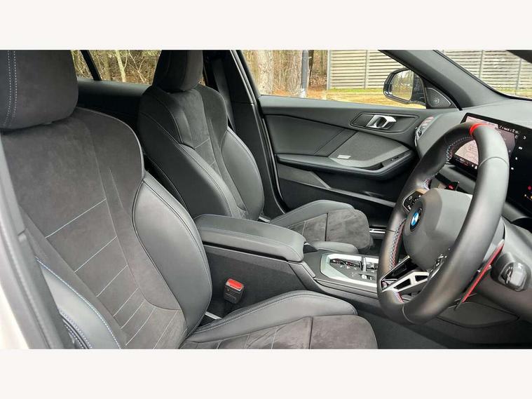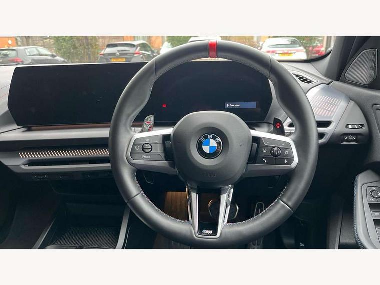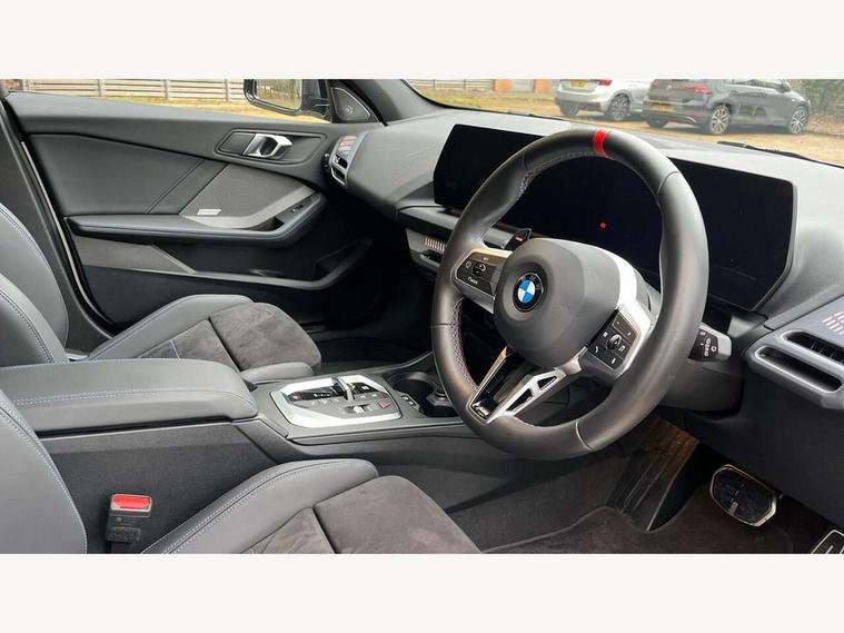 Active guard plus, Attentiveness assist, Bluetooth / WiFi interface for wireless connection of mobile terminal devices and audio streaming, BMW ConnectedDrive online services, BMW Live cockpit plus, BMW Teleservices, Check Control warning system for monitoring of lights and door/luggage compartment open warning, Eco pro mode, Electric power steering, Electro hydraulically controlled multi-plate clutch transfers drive to rear axle and with power take-off device located on the front differential., Energy efficient operating strategy, Evasion assistant, Flat airvents in instrument panel with adjustable slats, Front and rear parking sensors, Front axle single joint with specific axle kinematics to minimise drive influences on steering + provide increased rigidity agile driving behaviour, Gearshift time display in manual mode, Integrated owners handbook, Left turn warning with brake function, M Sports steering with M135i xDrive specific settings, My modes (Personal / Efficient / Sport), Oil sensor for level and grade, On board computer, Optimum shift indicator, Park assist including reversing assistant, lateral parking aid and reversing assist camera, Personal e-SIM, Personal Profile, Pull away assistant, Rigidly mounted rear subframe - Multi link construction with separate spring / damper configuration and excellent driving characteristics, Speed limit Info including no-overtaking indicator, Speed limiter, Sporty fast gear shifting in sport mode, 49 litre fuel tank, Aluminium lightweight construction, Anti roll bar front and rear, Balancer shaft, Double VANOS, Drive Performance Control, Electronic differential lock, Electronic selector lever, Engine cover with M performance designation, High precision injection, Launch control, M Adaptive suspension, M135i specific heavily de-throttled engine intake air guide, M135i specific high-performance cooling package, M135i specific larger turbocharger with integrated divert-air valve, Petrol Particulate Filter, Steptronic transmission with double clutch, Twin tube gas filled shock absorbers with degressive characteristic curve, VALVETRONIC engine management, Variable, stepless and infinitely adjustable distribution of drive torque between the front and rear axles, xDrive intelligent all wheel drive with M135i specific reinforced components, DAB Digital radio, Harman/Kardon surround sound audio system with 12 speakers, Auto dimming rear view mirror, Automatic windscreen wipers and automatic headlight, Body colour door handles, Body colour roof trims, Cerium grey exterior mirror caps, Direction indicator side lights in exterior mirrors, Electrically adjustable exterior mirror with mirror adjustment switch on drivers armrest and aspheric on driver side, convex on passenger side, Exhaust tailpipe, Cerium Grey with bevelled finish - twin, round 100mm, left and right split, Fading support, Folding side mirrors with auto dimming/folding wing mirrors with auto dimming, Follow me home headlights, Front and rear bumper system with replaceable deformation elements, Front and rear electric windows with open and close fingertip control, anti trap facility and comfort closing, Front door sill finishers with M135i designation, Green tinted heat protection glazing, Heated rear window, High gloss shadowline window frame, Recess cover mirror frames and B/C pillar embelisher trim, High level third brake light, Integrated front windscreen with washer jets, Kidney grille frame in Cerium Grey with Mesh design, LED daytime running lights, LED eyebrow turn indicators, LED Headlights, Lightweight engineering, M Performance exhaust system with valve control and minimised exhaust back pressure, M Performance specific setup, M rear spoiler in high gloss black, M sport roof spoiler, Matt black air guide grilles, Matt black wheel arch trim, Model badge on tailgate right, Nearside reverse light in rear light cluster, Preparation for high beam assistant, Rain sensor, Rear fog lights, Rear side wing doors, Rear window wiper, Reinforced crank drive, new pistons and adapted con rods, Shark fin antenna, Sun protection glass, Trailer stabilisation logic, Visible VIN plate, Welcome lighting, 12V power socket in front centre console with blanking plug, 3 rear seat head restraints, 3 seat bench in 2nd row, 3 spoke Walknappa leather steering wheel, decorative stitching, badge, pearl chrome finish, thumbnails, red centre and black/red high gloss paddles, Anthracite front and rear floor mats, Anthracite headlining, Black boot net with lashing eyes, Cargo function on 2nd seat row, Child seat ISOFIX attachment for two outer rear seats and front passenger seat with anchorage points, Conditioned based service, Driver and front passenger backrest net on rear, Driver and front passenger seat heating, Driver side folding compartment in instrument panel, Folding rear clothes hook, Footrest and pedals in black plastic, Four grab handles integrated in roof lining, Front and rear door pockets with bottle holders, Front and rear side armrest integrated into door trim, Front armrest with storage compartment, Glove compartment, Height adjustable front head restraints, Luggage compartment for bag hooks on left and right, foldable luggage compartment liner and four lashing eyelets, Manual adjust steering wheel, Multi-function controls for steering wheel, Rear seat backrest with manual 60:40 split folding with 3 top tether clips integrated on rear of seat panels, Single front passenger seat, Storage compartment in centre console, Storage compartment in luggage compartment, Stowage of the parcel shelf in luggage compartment trim, Sun visors with vanity mirrors and insert tab, Two front centre console cupholders, Type C two USB ports in rear centre console, Upper retaining strap integrated into backrest rear panels, Connected pack professional - 1 Series, Interior lights pack - 1 Series, M Sport exterior styling aerodynamics pack - 1 Series 135i, 2 tone horn, 3 point seatbelts on all seats, front pyrotechnic be