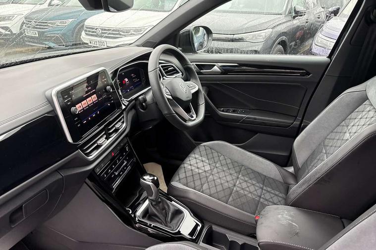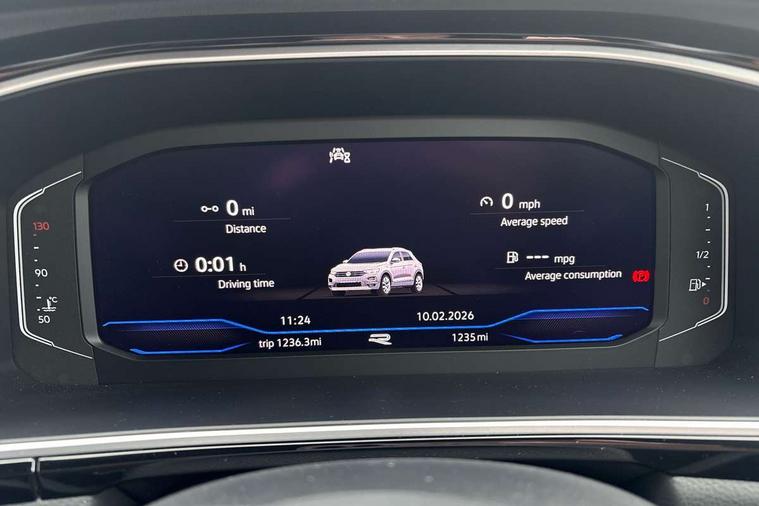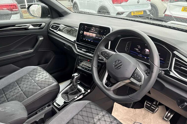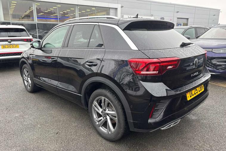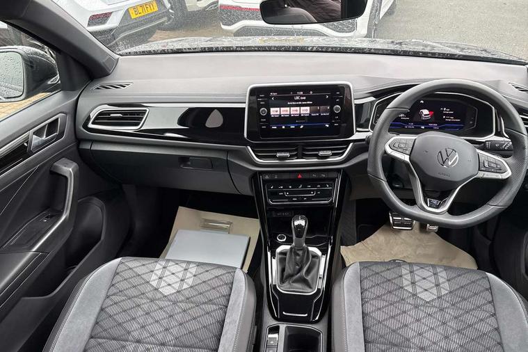 10.25" Digital cockpit pro, Advanced driver attention and drowsiness monitor, Dynamic road sign display, Emergency call service, Lane keeping system Lane Assist, Mobile phone interface, Modified key software - reduce switch off time for key status change to Long no motion, Online services, Park assist including front and rear parking sensors, Service interval indicator, Tailgate/trunk lid release from outside, Think blue trainer driver tips and journey analysis, Warning sound and light for front seatbelts unfastened, Wireless app connect, Battery regeneration during braking, Start/stop function with battery regeneration, DAB Digital radio, Diversity antenna for FM reception, Front and rear 6 speakers, Music playback - MP3, WMA and AAC files, Premium USB cable in choice of either Apple or Android smartphone compatibility, SD card slot, Simultaneous pairing of 2 compatible mobile devices, Title and cover art display, We Connect and We Connect Plus functionality, Auto dimming interior rear view mirror, Automatic hazard lights activation under emergency braking, Automatic headlight control with LED separate daytime running lights with coming/leaving home function, Body coloured exterior mirror housings and door handles, Electrically adjustable and heated door mirrors, Extended roof spoiler, Exterior mirrors aspherical on driver side, convex on front passenger side, External USB type C socket and charging sockets, Front windscreen wiper with intermittent wipe and 4 position delay, Heated rear window, LED 3rd brake light, LED rear combination lamps, LED rear number plate lights, Power windows with comfort operation and circuit breaker, Privacy glass for rear side windows and rear window, R-Line design body coloured bumpers, Rain sensor, Rear exhaust tailpipe, Rear fog light on one side and reversing lights on both sides, Rear side wing doors, Rear wash/wipe with intermittent wipe setting, Remote electrically foldable door mirrors, puddle lights and reverse activated passenger's door mirror, 12V power socket in centre console, 3 rear head restraints, 3 seat bench in 2nd row, 4 load lashing points in luggage compartment, Air care climatronic air conditoning system with active combination filter and 2-zone temperature control, Black roof lining, Chrome plated decorative trims, Chrome plated radiator grille inserts, air vent surrounds and light switch surrounds, Door and side trim panel with leatherette insert, Front + rear carpet mats, Front centre armrest, Front cupholders x 2, Front footwell illumination, Front reading light, Front scuff plates with R Line logo, Front seat back storage pockets, Glove compartment door with light, Instrument lighting, white adjustable panel illumination, Interior ambient lighting and surround lighting, Interior light delay, Isofix child seat preparation, Leather gearshift handle, Load-through provision with cup holder when folded down ('Unsplit rear seat bench, split folding backrest, with centre armrest), Luggage compartment lighting, Single front passenger seat, Stainless steel pedals, Storage compartment in left and right luggage area, Storage compartment in rear doors, Storage compartments in driver and front passenger doors, Sunvisors with illuminated vanity mirrors, Variable boot floor, height adjustable and removable, Driver assistance pack without proactive passenger protection - T-Roc, 3 point height adj front seatbelts + pretensioners, 3 point seatbelts in outer rear with ECE label, ABS, Child locks on rear doors, City emergency braking and pedestrian monitoring, Driver and front passenger airbag with front passenger airbag deactivation, Driver and front passenger safety-optimised head restraints, Drivers seatbelt reminder, Electronic parking brake, Electronic Stability Control (ESC) inc EDL (Electronic Differential Lock) and ASR (Traction Control), Front and rear passengers curtain airbag system including front side airbags, Hill start assist, Predictive pedestrian protection, Rear disc brakes, Two tone horn, Tyre pressure loss indicator, Volkswagen roadside assistance, Piano black decorative inserts in dashboard and front door trim panels, Trims for alloy wheels,