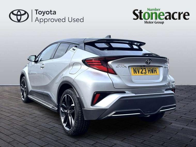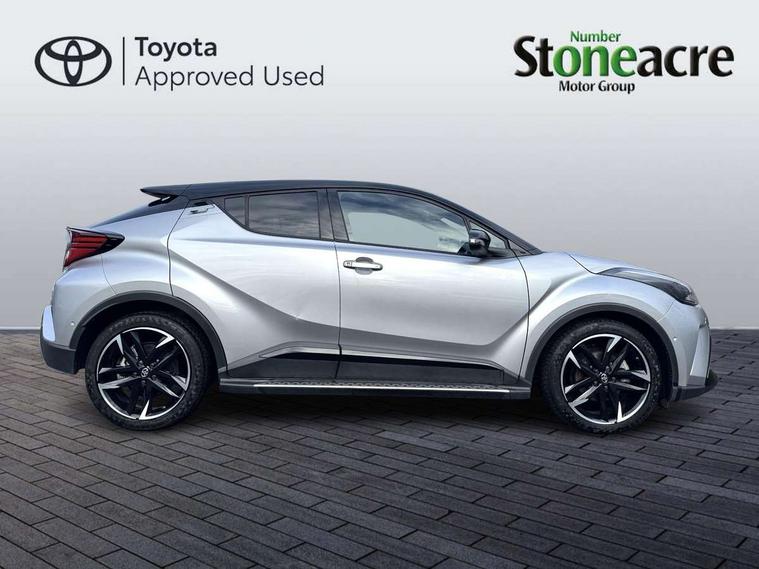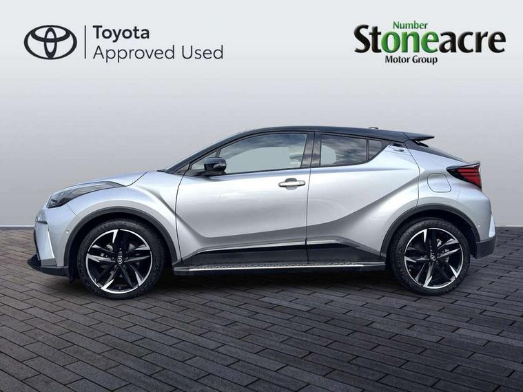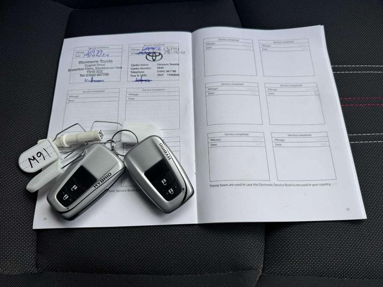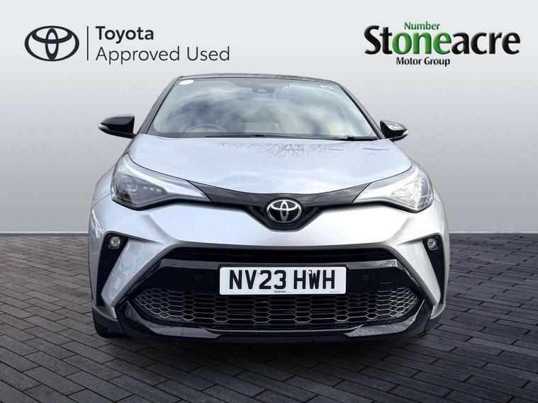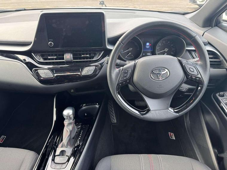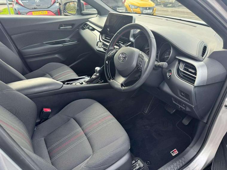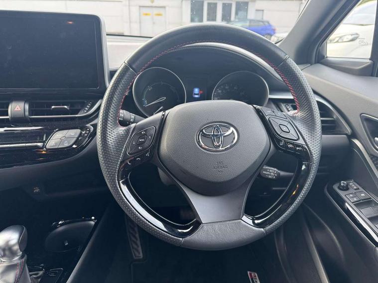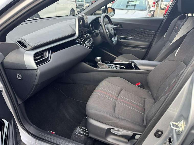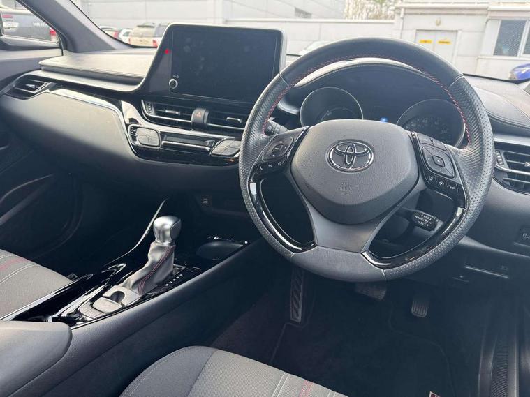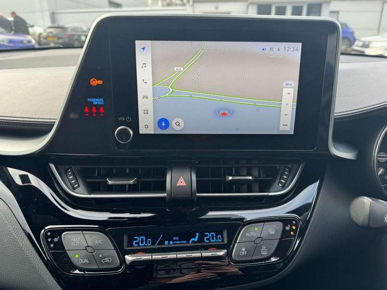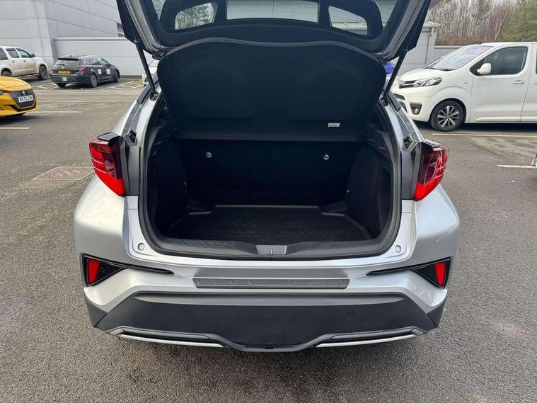 4.2" coloured TFT screen for multi-information display, Adaptive cruise control, Apple car play and Android auto, Bluetooth connectivity, E-call, Electric power steering, Hybrid system indicator, Lane departure alert with steering control, Lane trace assist, Push button tailgate release, Remote boot door release in cabin, Remote boot door release in key, Reversing camera, Road sign assist - RSA, Simple Intelligent parking assist, Smart voice assist, Touch 2 Go navigation system, Trip computer, Voice recognition, Wireless smartphone integration, Vehicle Stability Control (VSC), 6 speakers, AM/FM radio, DAB Radio (Digital Audio Broadcasting), Toyota touch 2 multimedia system with 8" display, USB connector, Wi-fi connectivity, Adaptive front light system, Adaptive LED Headlights, Anti-jam protection on power windows, Auto high beam, Auto up and down function on all power windows, Automatic headlight levelling, Automatic headlights, Automatic headlights cut-off, Black and body coloured rear bumper, Black upper front grille, Body colour door handles, Body colour door mirrors, Body coloured front bumper, Boot door release with push button, Chrome front lower bumper, Electric heated door mirrors, Follow me home headlights, Front and rear power windows, Front spoiler lip in black, Headlight cut off reminder, Honeycomb lower front grille, LED daytime running lights, LED fog lights, LED front light guide, LED High mounted stop light, LED rear brake lights, LED rear combination lights, Noise reduction layer on front windows and windscreen, Power adjustable door mirrors, Privacy glass, Rain sensor, Rear sequential indicators, Rear side wing doors, Rear spoiler, Rear tailgate, Rear window defogger, Rear window wiper, Shark fin antenna, UV-filter on driver and passenger windows, UV-filter on rear windows, Variable front intermittent wipers, 12v power outlet - front, 3 rear headrests, 3 seat bench in 2nd row, 3 spoke perforated leather steering wheel, 60/40 split folding 2nd row rear seats, Adjustable rear headrests, Adjustable speed limiter switch on steering wheel, Assist grips front and centre pillar, Audio and telephone switches on steering wheel, Black front door assist grips, Blue ambient lighting on front cup holders, Blue ambient lighting on front doors, Boot light, Chrome interior door handles, Cloth upholstery, Driver and front passenger personal light, Driver and front passenger Whiplash Injury Lessening seats, Driver and passenger seatback pockets, Dual zone automatic air conditioning, Floor mats, Front cupholders, Front head restraints, Front sports seats, Glovebox with internal light, Hard tonneau cover, Heated driver and front passenger seats, Hooks for luggage holding net, Humidifying Nanoe air purifier, Illuminated entry system, Isofix attachments on outer rear seats, Leather gearshift, Light on driver sun visor, Light on passenger sun visor, Manual telescopic steering wheel, Manual tilt steering wheel, Manually height adjustable driver seat, Manually height adjustable front passenger seat, Manually reclining driver seat, Manually reclining front passenger seat, Manually sliding driver seat, Manually sliding front passenger seat, Microphone on front personal light, Mirror on driver sun visor, Mirror on passenger sun visor, Multimedia switches on steering wheel, Pollen filter, Power adjustable lumbar support on driver seat, Shopping bag hooks, Single front passenger seat, Slow opening on lower glovebox, Voice recognition switch on steering wheel, Tech with parking sensor pack - C-HR, 16 Disk front wheel brake, 3x3 point rear seatbelts, ABS+EBD+Brake assist, Electronic parking brake, Front and rear seatbelt reminder, Front passenger airbag on/off switch, Hill start assist control (HAC), Pre collision system with pedestrian detection, Pre-tensioners and force limiters, Rear door child safety locks, SRS Airbags - Driver + Front passenger, front side, front and rear curtain and driver's knee airbags, Toyota safety sense, Tyre pressure monitoring system, Tyre pressure warning system, Acoustic vehicle alert system (AVAS), Glass-breaking alarm sensors, Immobiliser, Intrusion alarm, Intrusion sensor, Motion sensor alarm, Power door locks, Power passenger window lock, Remote central locking, Black lower dashboard, Black upper dashboard, Piano black console, Silver deco line on upper dashboard, 19" Black machined alloy wheels, Tyre repair kit,