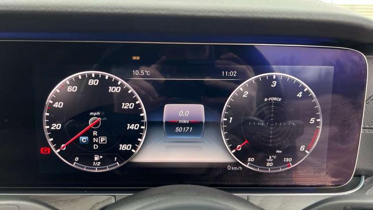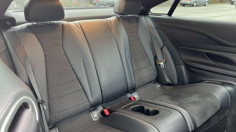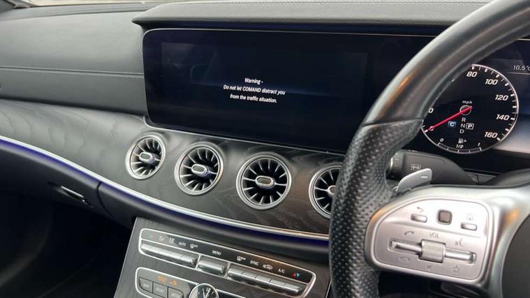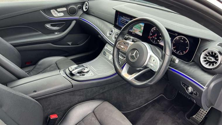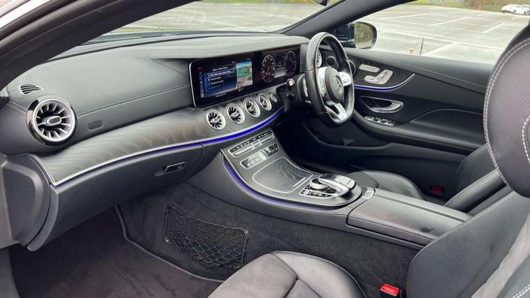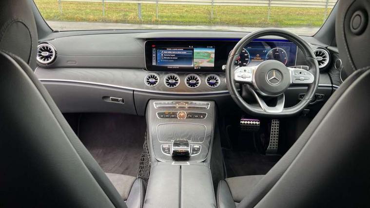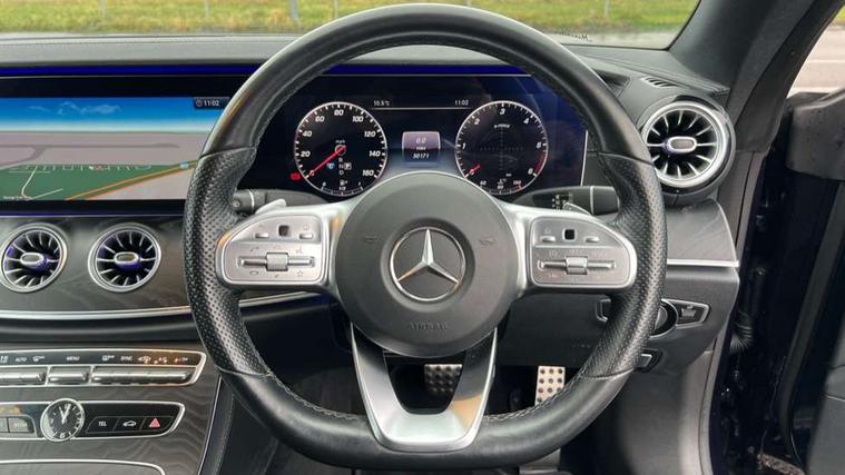 Active parking assist including front and rear parking sensors, Analogue clock, Attention assist, Blind spot assist, Bluetooth interface for hands free telephone, Brake wear warning display, Cockpit display 12.3" widescreen digital instrument cluster, Collision prevention assist plus, Direct steer speed sensitive steering, Direct steering, DYNAMIC SELECT with a choice of driving modes (ECO, Comfort, Sport, Sport+ and Individual), ECO start/stop function, Engine start/stop button, High resolution 12.3" multimedia colour display, Mercedes connect me, Multi function trip computer, Outside temperature display, Remote boot release, Reversing camera, SD card based satellite navigation system, Service indicator (ASSYST), Status display for rear seat belts in instrument cluster, Touchpad with control wheel, 25 litre AdBlue tank, 66 litre fuel tank, Agility control sports suspension with selective damping system, Diesel particulate filter, Incorrect fuelling protection, 2 USB ports in centre console, Audio 20 with USB, touchpad and control wheel with Media Interface with Bluetooth interface and hands-free function, DAB Digital radio, Adaptive brake lights, AMG bodystyling front and rear aprons, side skirts, AMG boot lid spoiler in body colour, AMG front, rear apron and side skirts, Body colour door handles, Body coloured bumpers, Electric windows with one touch opening/closing and obstruction sensors, Exterior mirrors heated and electronically adjustable, Illuminated front door sill panels with Mercedes-Benz lettering, LED high performance headlamps with integrated LED daytime running lights, Magic Vision Control heated windscreen wiper system, Pre-installation for roof rail systems, Privacy glass Includes rear side windows and rear windscreen, Rain sensing windscreen wipers, Rear LED lights, Top surround of side windows in polished aluminium, Visible twin pipe exhaust system integrated into bumper, 3-spoke flat bottom multifunction AMG steering wheel with Touch Control buttons, trimmed in black nappa leather, 4 way adjustable front head restraints and 2 way rear head restraints, 40:20:40 split folding rear seats, Artico man-made leather upper dashboard and beltlines with contrast stitching, Automatic child seat recognition sensor, Automatic two zone climate control, Bag hook in luggage compartment, Belt feeder driver and front passenger seat belt automatically positioned within easier reach, Black roof lining, Central stowage compartment with 12 V socket in centre console, Centre armrest and door handle illumination, Chrome door pins, Easy entry seats, Floor mats with AMG lettering, Front and rear door pockets, Front centre armrest with stowage compartment, Front footwell lights, Glasses compartment in overhead control panel, Glove compartment - lockable, air conditioned and illuminated, Heated front seats, Interior lighting - 64 colour Ambient lighting, Interior rear light/integral reading lights, Isofix rear child seat fastenings, Multi contour front sports seats, Multi function steering wheel, Partial electric front seats/backrest/height adjust, Rear centre armrest with 2 cupholders + storage, Seat occupancy sensor for front passenger seat, Sports pedals in brushed stainless steel with black rubber studs, Steering column manually adjustable for height and reach, Steering wheel gearshift paddles, Steering wheel touch control buttons for audio and onboard settings, Storage net in luggage compartment, Sunvisors with illuminated vanity mirrors, Twin front cupholders, Mirror pack - E Class, Seat comfort pack - E Class, Stowage pack - E Class, 2 x 3-point rear seatbelts, Active bonnet, Active brake assist, Adaptive brake system, Adaptive driver and front passenger airbags, Anti-lock braking system (ABS), Crash sensor (auto door unlocking), Drivers knee airbag, Electric parking brake, Electronic Stability Programme, Front and rear window airbags, Front seatbelt pretensioners, Front side airbags, Head airbags, Hill hold function, Perforated front brake discs with "Mercedes-Benz" lettering, Seatbelt warning, Tyre pressure monitoring system, Warning triangle and first aid kit, Alarm system/interior protection/immobiliser, Central locking with interior switch, automatic locking and crash sensor with emergency opening function, Chrome surround in electric key, Keyless entry go starting function, Black open pore ash wood, Open pore black ash wood centre console, Run flat tyres,
