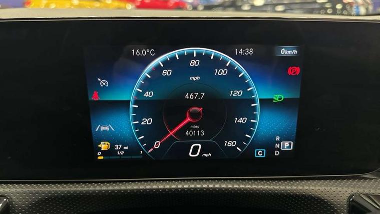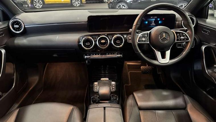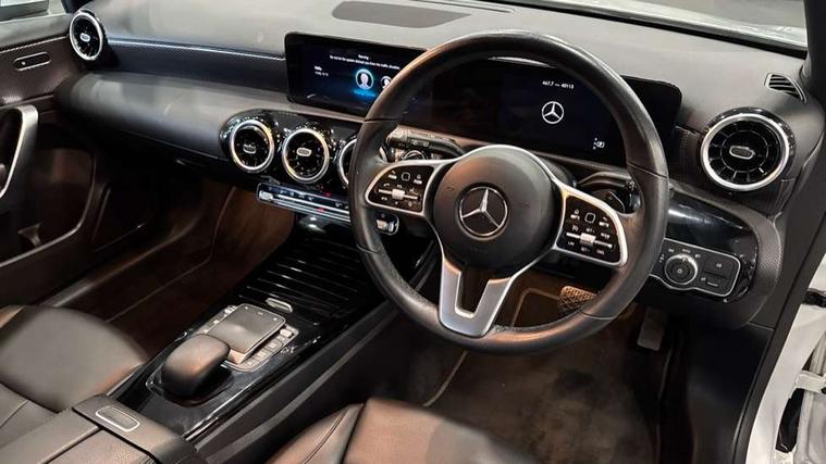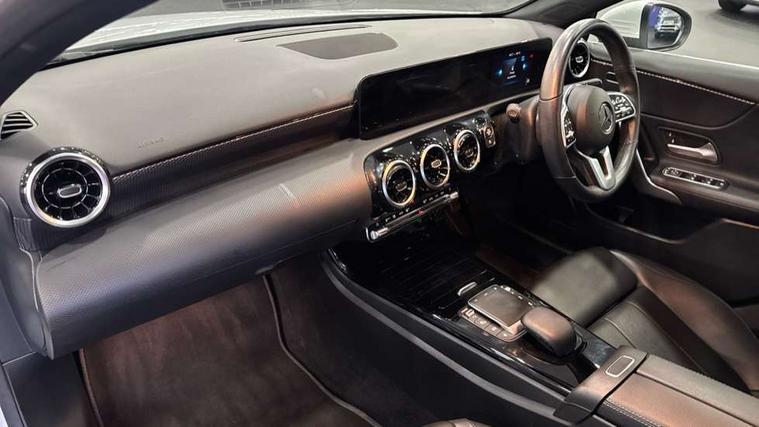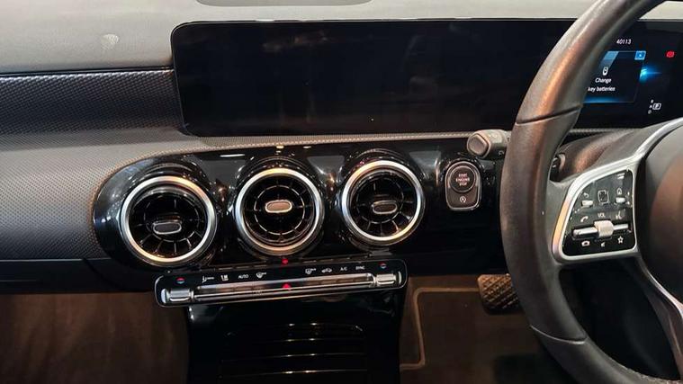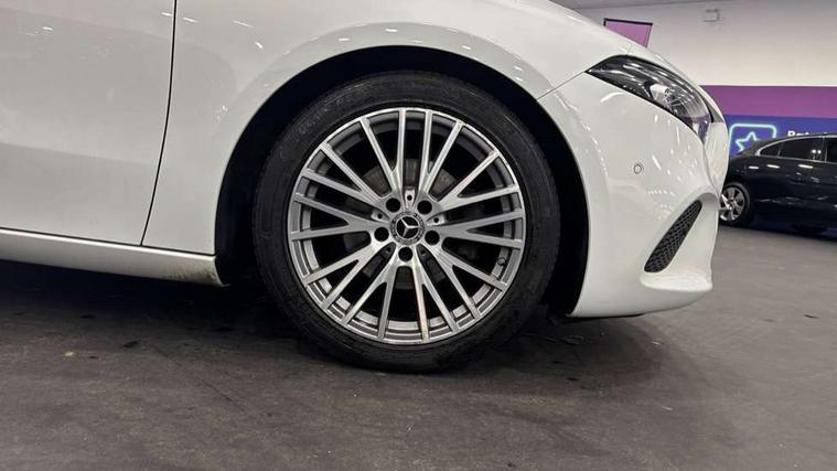 10.25" media display, 180 degree rear view camera with parking guidelines, 7" colour screen in instrument panel, Active parking assist with visual and audible warning of detected obstacles, Attention assist, Brake pad wear indicator warning light, Car wash mode, Cruise control + speed limiter, Direct steering, Dual bluetooth interfaces, DYNAMIC SELECT with a choice of driving modes (ECO, Comfort, Sport and Individual), ECO start/stop function, Fluid level warning indicator for fuel, oil, coolant and washer fluid, Hard-disk navigation, Hey Mercedes Voice activation, Lamp failure indicator, Lane keeping system, Mercedes me connect including emergency call system, accident recovery, breakdown and maintenance management, Mercedes me remote services, Outside temperature gauge, Owners manual in English, Pre-installation for private car sharing, Preinstallation for Mercedes Benz link, Service indicator (ASSYST), Smartphone integration with Apple CarPlay and Android auto, Speed sensitive power steering, Trip computer, Ultrasonic sensors positioned in the front and rear bumpers, Lowered comfort suspension, Rear axle torsion beam, 2 USB ports (type C) in rear stowage compartment and one in front of center console, 6 speakers, DAB Digital radio, MBUX multimedia system with DAB digital radio and touchpad including satellite navigation, Mercedes-Benz sound system - 100W, 4 Electric Front and Rear windows, Adaptive brake lights, Automatic headlights, Black weather strip, Body colour bumpers, Body colour door handles, Body colour side skirt, Body coloured door mirrors, Chrome beltline trim, Diamond radiator grille with black pins with one louvre in silver + chrome insert, Electric adjustable and heated door mirrors with integrated LED side indicators, Exhaust system - Twin visible tailpipes in polished stainless steel, Headlamp assist automatic headlamp activation, Heated glass rear windscreen + timer control, LED High level third brake light, LED high performance headlamps with integrated LED daytime running lights, LED tail lamp, Privacy glass, Radio aerial, Rain sensing windscreen wipers with two sensitivity settings, Rear fog lights, Rear side wing doors, Rear wiper, Window line trim strip in chrome, 3 seat bench in 2nd row, 3 Spoke leather multi function steering wheel, 40:20:40 split folding rear seats, Artico man-made leather upholstery, Auto Mercedes-Benz child seat recognition sensor, Black air vents with surround in silver chrome, Black roof lining, Controller on centre console with chrome surround, Front centre armrest with storage compartment, Front comfort seats with adjustable head restraints, Front door sills with Mercedes Benz lettering, Front seat backs luggage nets, Front seat cushion length adjustment, Gearshift paddles on steering wheel, Heated front seats, Height/reach adjustable steering column, Interior mirror with reading lamps in black and frameless, Manual height adjustable front seats, Rear head restraints, Seat occupancy sensor for front passenger seat, Single front passenger seat, Stowage compartment in centre console with retractable cover, Sunvisors with illuminated vanity mirrors, Touchpad on center console, Twin front cupholders, Two zone thermotronic luxury automatic climate control, Velour floor mats, Light and sight pack - A Class, Mirror package - A Class, Seat comfort pack - A Class, 3 rear 3 point seatbelts, ABS with Brake Assist, Active bonnet, Active brake assist includes forward collision warning system with autonomous braking, Adaptive brake assist with hold function and hill start assist, Black seatbelts, Childproof locks manually operated for rear doors and electrically operated for rear power windows, Crash responsive emergency lighting, Driver and passenger head and side airbags, Drivers knee airbag, Dual stage driver/passenger airbags, Electronic parking brake, ESP curve dynamic assist, ESP with ASR, Front and rear seatbelt reminder, ISOFIX and top tether child seat fixing points in two outer rear seats, Tyre pressure monitoring system, Warning triangle and first aid kit, Window airbags, Alarm system/interior protection/immobiliser, Keyless Go, Remote central locking and crash sensor with emergency opening function, Urban guard vehicle protection system with immobiliser and interior protection, Dark carbon fibre interior trim, 18" multi spoke light alloy wheels painted in himalayas grey with a high sheen finish, Summer tyres, Tirefit sealant kit,