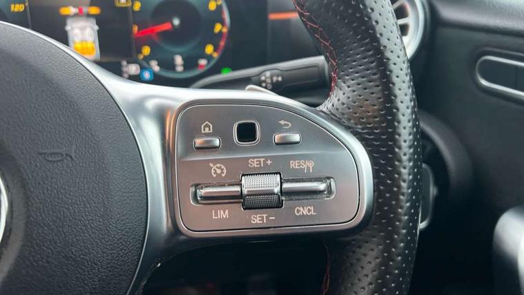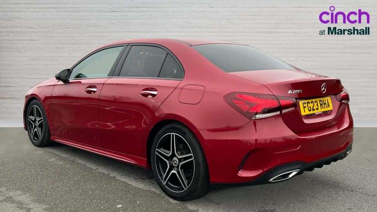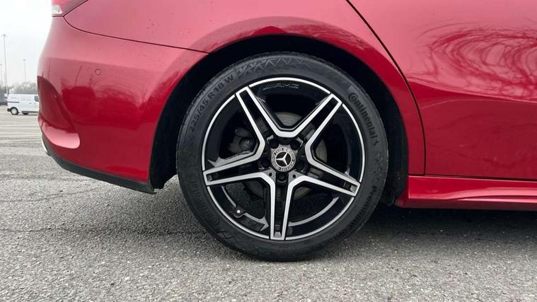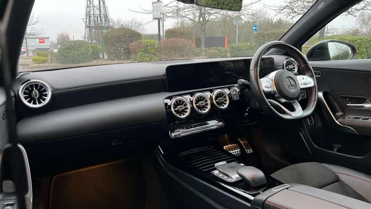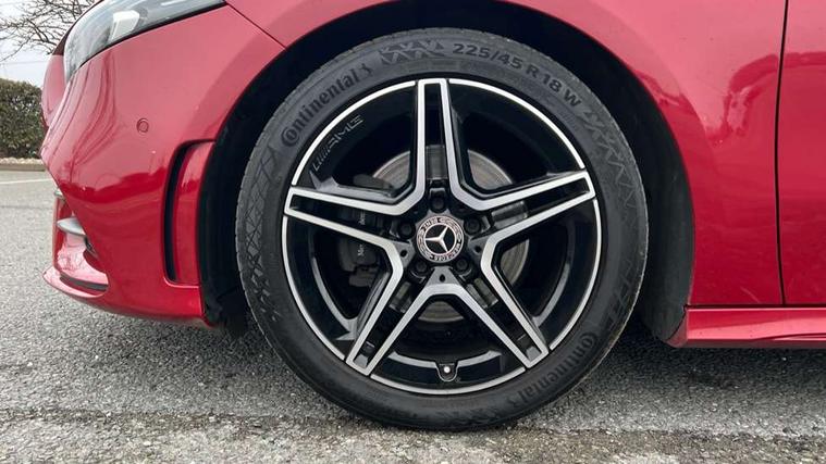 10.25" Digital instrument cluster display screen, 10.25" media display, 180 degree rear view camera with parking guidelines, Active parking assist with visual and audible warning of detected obstacles, Attention assist, Brake pad wear indicator warning light, Car wash mode, Cruise control + speed limiter, Direct steering, Dual bluetooth interfaces, DYNAMIC SELECT with a choice of driving modes (ECO, Comfort, Sport and Individual), ECO start/stop function, Fluid level warning indicator for fuel, oil, coolant and washer fluid, Hard-disk navigation, Hey Mercedes Voice activation, Lamp failure indicator, Lane keeping system, Mercedes me connect including emergency call system, accident recovery, breakdown and maintenance management, Mercedes me remote services, Outside temperature gauge, Owners manual in English, Pre-installation for private car sharing, Preinstallation for Mercedes Benz link, Service indicator (ASSYST), Smartphone integration with Apple CarPlay and Android auto, Speed limit assist, Speed sensitive power steering, Trip computer, Ultrasonic sensors positioned in the front and rear bumpers, Lowered comfort suspension, Rear axle torsion beam, 2 USB ports (type C) in rear stowage compartment and one in front of center console, 6 speakers, DAB Digital radio, MBUX multimedia system with DAB digital radio and touchpad including satellite navigation, Mercedes-Benz sound system - 100W, 4 Electric Front and Rear windows, Adaptive brake lights, AMG bodystyling - Front apron with splitter in chrome, rear apron with chrome trim and chrome visible trim elements in tailpipe, Automatic headlights, Black weather strip, Body colour bumpers, Body colour door handles with chrome inserts, Body colour side skirt, Electric adjustable and heated door mirrors with integrated LED side indicators, Exclusive diamond radiator grille, Exhaust system - Twin visible tailpipes in polished stainless steel, Headlamp assist automatic headlamp activation, Heated glass rear windscreen + timer control, LED high performance headlamps with integrated LED daytime running lights, LED tail lamp, Privacy glass, Radio aerial, Rain sensing windscreen wipers with two sensitivity settings, Rear boot, Rear fog lights, Rear side wing doors, Third brake light featuring LED technology, 3 seat bench in 2nd row, 3 Spoke flat bottom leather multi function steering wheel with perforated leather in grip area, 40:20:40 split folding rear seats, Artico man-made leather/Microfibre Dinamica upholstery with red contrast stitching, Auto Mercedes-Benz child seat recognition sensor, Black air vents with surround in silver chrome, Black roof lining, Brushed stainless steel sports pedals with rubber studs, Controller on centre console with chrome surround, Floor mats with AMG lettering, Front centre armrest with storage compartment, Front seat backs luggage nets, Front sports seats with adjustable head restraints, Galvanished gear shift paddles on steering wheel, Heated front seats, Height/reach adjustable steering column, Illuminated Mercedes Benz lettering front door sills with changeable cover, Interior lighting - 64 colour Ambient lighting, Interior mirror with reading lamps in black and frameless, Manual height adjustable front seats, Rear armrest with 2 cupholders, Rear head restraints, Seat occupancy sensor for front passenger seat, Single front passenger seat, Stowage compartment in centre console with retractable cover, Sunvisors with illuminated vanity mirrors, Touchpad on center console, Twin front cupholders, Two zone thermotronic luxury automatic climate control, Light and sight pack - A Class, Mirror package - A Class, Night pack - A Class Saloon/Hatchback, Seat comfort pack - A Class, 3 rear 3 point seatbelts, ABS with Brake Assist, Active bonnet, Active brake assist includes forward collision warning system with autonomous braking, Adaptive brake assist with hold function and hill start assist, Black seatbelts, Childproof locks manually operated for rear doors and electrically operated for rear power windows, Crash responsive emergency lighting, Driver and passenger head and side airbags, Drivers knee airbag, Dual stage driver/passenger airbags, Electronic parking brake, ESP curve dynamic assist, ESP with ASR, Front and rear seatbelt reminder, Front brake callipers with Mercedes Benz lettering, ISOFIX and top tether child seat fixing points in two outer rear seats, Tyre pressure monitoring system, Warning triangle and first aid kit, Window airbags, Alarm system/interior protection/immobiliser, Keyless entry lock/unlock, Keyless Go, Remote central locking and crash sensor with emergency opening function, Urban guard vehicle protection system with immobiliser and interior protection, Matrix look light longitudinal grain aluminium trim element, 18" AMG 5 twin spoke light alloy wheels aerodynamically optimised painted in black with highsheen finish, Summer tyres, Tirefit sealant kit,