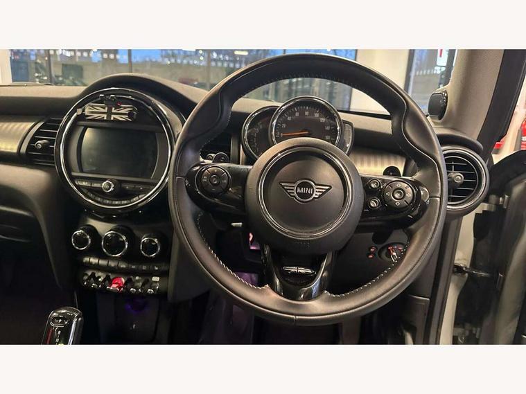 Automatic start/stop function with brake energy recuperation, Compatible mobile phone bluetooth with audio streaming, Electro-mechanical speed dependant steering assistance, Instrument cluster, Mini E-call, MINI TeleServices, On board computer, Service interval indicator, Double Vanos system, Fully variable valve control, High precision injection, Performance Control, Steptronic sport transmission with double clutch and steering wheel paddles, 6.5" touchscreen with LED ring, FM tuner and DAB digital radio, Automatic headlight activation switch, Bonnet scoop, Chrome border honeycomb structure radiator grille with S badge, Chrome plated fuel cap, Dynamic brake lights, Electric front+rear windows, Heated rear window, Heated windscreen washer jets, LED headlight with closed ring and daytime driving lights, Metal door sill strips with Cooper S imprint, Model logo Cooper S on right of tailgate, Radiator grille bars, tailgate handle, lower front grille grating, rear central fog light in chrome, Rain sensor window wipers, Rear fog lights, Rear LED lights with union jack design, Rear window wiper, Side scuttle panel with integrated indicator, Sun/heat protection glass, Two central exhaust tailpipes with chrome finisher, White indicator lenses, 12V Accessory socket in centre console, 4 lashing eyes in luggage compartment, 60/40 split folding rear seat, Air vents, gear lever base, speakers in doors, door handles in chrome, Chrome interior highlights, Cupholders, Front and rear head restraints, Front and rear isofix with front passenger airbag deactivation, Glove compartment, Height and length steering column adjustment, Interior lighting with 12 basic colours selectable via toggle switch in roof, Leather gearshift lever and handbrake gaiters, LED reading lights, vanity mirror lights, front foot well light and spotlight on front seats, Manual air conditioning, Mechanical seat adjustment, driver seat height adjust, forward/back and front seats backrest, Mini logo projection on floor from drivers exterior mirror, MINI Yours leather steering wheel with silver contrasting stitching with MINI Yours badge, Multifunction steering wheel, Storage compartments in doors, Storage pocket on back of front seats, Sunvisors with vanity mirrors, Tool kit, 3 point seatbelts on all four seats, 6 Airbags - front, side, head and seat belt tensioners, Anti-lock braking system (ABS), DSC - Dynamic Stability Control, Front and rear disc brakes, Hill start assist, Two tone horn, Tyre pressure monitoring system, Alarm system with tilt sensor, monitoring doors, bonnet interior and tailgate, Electronic vehicle immobiliser, Start/stop toggle with keyless go, Chrome line interior,