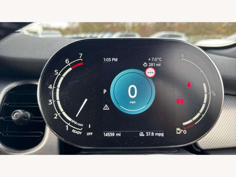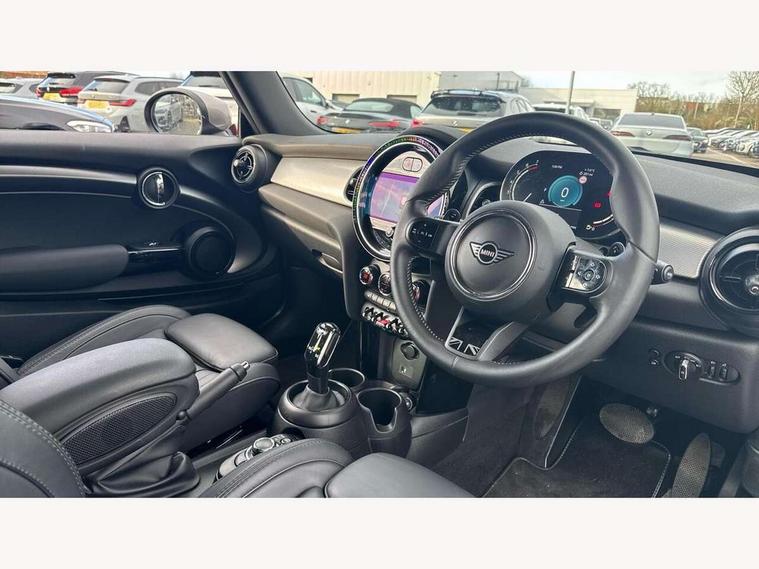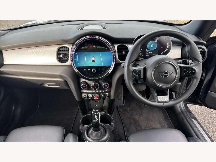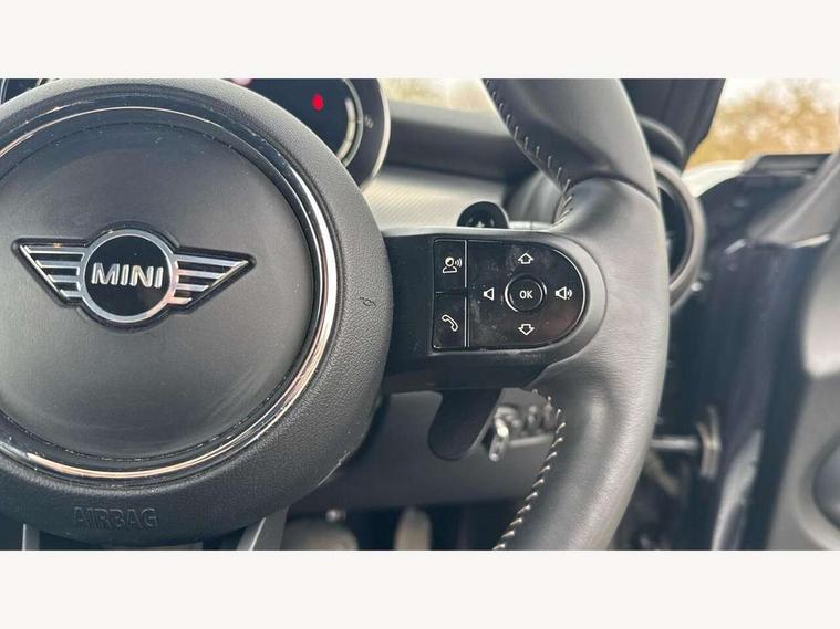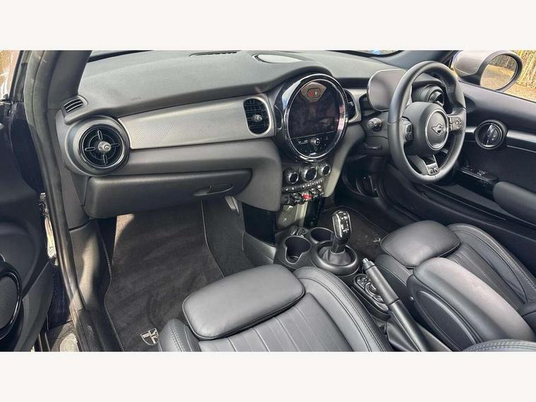Apple CarPlay, Automatic start/stop function with brake energy recuperation, Compatible mobile phone bluetooth with audio streaming, Cruise control with brake assist, Electro-mechanical speed dependant steering assistance, Flexible car sharing preparation, Instrument cluster, MINI Driving Modes - centre toggle switch to control driving setting (sport, mid and green), Mini E-call, MINI TeleServices, On board computer, Rear park distance control, Service interval indicator, Double Vanos system, Fully variable valve control, High precision injection, Performance Control, Steptronic sport transmission with double clutch and steering wheel paddles, 8.8" touchscreen with LED ring, FM tuner and DAB digital radio, 3rd brake light, Automatic headlight activation switch, Bonnet scoop, Chrome line exterior - radiator grille bars, tailgate handle, lower front grille grating and rear central fog-light, Dynamic brake lights, Electric front windows, Heated rear window, Heated windscreen washer jets, LED headlight with closed ring and daytime driving lights, Metal door sill strips with Cooper S, Model logo Cooper S on right of tailgate, Rain sensor window wipers, Rear fog lights, Rear LED lights with union jack design, Rear window wiper, Side scuttle panel with integrated indicator, Sun/heat protection glass, White indicator lenses, 12V Accessory socket in centre console, 2 seat bench in 2nd row, 4 lashing eyes in luggage compartment, 60/40 split folding rear seat, Carbon black colour line - Knee roll and door armrest, Chrome interior highlights, Chrome line interior - air vents, gear lever base, door handles and speakers in doors, Cupholders, Front and rear head restraints, Front and rear isofix with front passenger airbag deactivation, Front floor mats in velour, Glove compartment, Height and length steering column adjustment, Interior lighting with 12 different colours across the dashboard, underneath door bezel with illuminated laser-engraved design on central display, Leatherette gearshift lever and handbrake gaiters, LED reading lights, vanity mirror lights, front foot well light and spotlight on front seats, Manual air conditioning, Mechanical seat adjustment - forward/back & backrest for front seats and driver seat height adjust, MINI yours badge on exterior pillar, Multifunction steering wheel, Passenger seat height adjuster, Satellite grey headlining including grab handles and clothes hooks, Single front passenger seat, Storage compartments in doors, Storage pocket on back of front seats, Sunvisors with vanity mirrors, Walknappa leather steering wheel with grey seam and MINI Yours badge on Piano Black lower steering wheel spoke, 3 point seatbelts on all four seats, 6 Airbags - front, side, head and seat belt tensioners, Anti-lock braking system (ABS), DSC - Dynamic Stability Control, Front and rear disc brakes, Two tone horn, Tyre pressure monitoring system, Alarm system with tilt sensor, monitoring doors, bonnet interior and tailgate, Electronic vehicle immobiliser, Start/stop toggle with keyless go, Tool kit,
