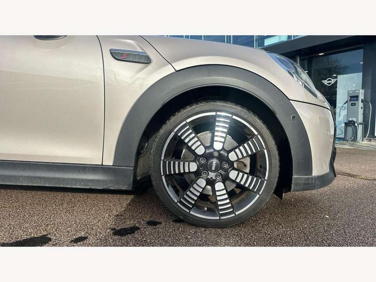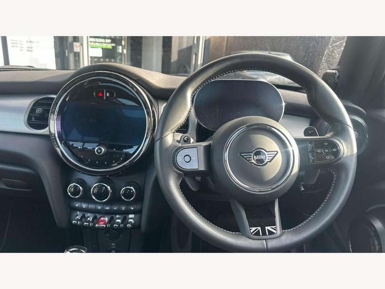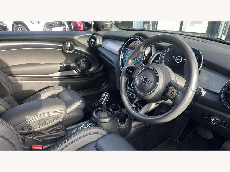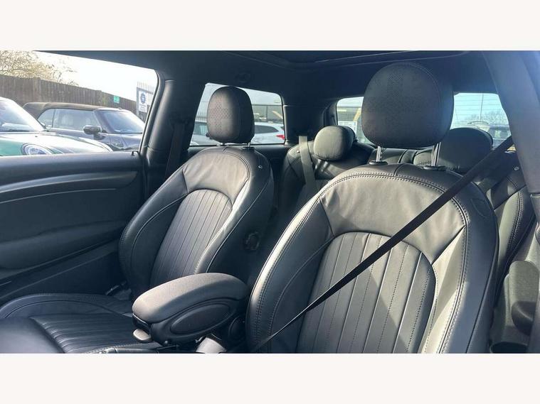 Apple CarPlay, Automatic start/stop function with brake energy recuperation, Compatible mobile phone bluetooth with audio streaming, Cruise control with brake assist, Electro-mechanical speed dependant steering assistance, Flexible car sharing preparation, Instrument cluster, MINI Driving Modes - centre toggle switch to control driving setting (sport, mid and green), Mini E-call, MINI TeleServices, On board computer, Rear park distance control, Service interval indicator, Double Vanos system, Fully variable valve control, High precision injection, Performance Control, Steptronic sport transmission with double clutch and steering wheel paddles, 8.8" touchscreen with LED ring, FM tuner and DAB digital radio, 3rd brake light, Automatic headlight activation switch, Bonnet scoop, Chrome line exterior - radiator grille bars, tailgate handle, lower front grille grating and rear central fog-light, Dynamic brake lights, Electric front windows, Heated rear window, Heated windscreen washer jets, LED headlight with closed ring and daytime driving lights, Metal door sill strips with Cooper S, Model logo Cooper S on right of tailgate, Rain sensor window wipers, Rear fog lights, Rear LED lights with union jack design, Rear window wiper, Side scuttle panel with integrated indicator, Sun/heat protection glass, White indicator lenses, 12V Accessory socket in centre console, 2 seat bench in 2nd row, 4 lashing eyes in luggage compartment, 60/40 split folding rear seat, Carbon black colour line - Knee roll and door armrest, Chrome interior highlights, Chrome line interior - air vents, gear lever base, door handles and speakers in doors, Cupholders, Front and rear head restraints, Front and rear isofix with front passenger airbag deactivation, Front floor mats in velour, Glove compartment, Height and length steering column adjustment, Interior lighting with 12 different colours across the dashboard, underneath door bezel with illuminated laser-engraved design on central display, Leatherette gearshift lever and handbrake gaiters, LED reading lights, vanity mirror lights, front foot well light and spotlight on front seats, Manual air conditioning, Mechanical seat adjustment - forward/back & backrest for front seats and driver seat height adjust, MINI yours badge on exterior pillar, Multifunction steering wheel, Passenger seat height adjuster, Satellite grey headlining including grab handles and clothes hooks, Single front passenger seat, Storage compartments in doors, Storage pocket on back of front seats, Sunvisors with vanity mirrors, Walknappa leather steering wheel with grey seam and MINI Yours badge on Piano Black lower steering wheel spoke, 3 point seatbelts on all four seats, 6 Airbags - front, side, head and seat belt tensioners, Anti-lock braking system (ABS), DSC - Dynamic Stability Control, Front and rear disc brakes, Two tone horn, Tyre pressure monitoring system, Alarm system with tilt sensor, monitoring doors, bonnet interior and tailgate, Electronic vehicle immobiliser, Start/stop toggle with keyless go, Tool kit,