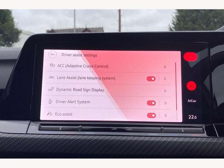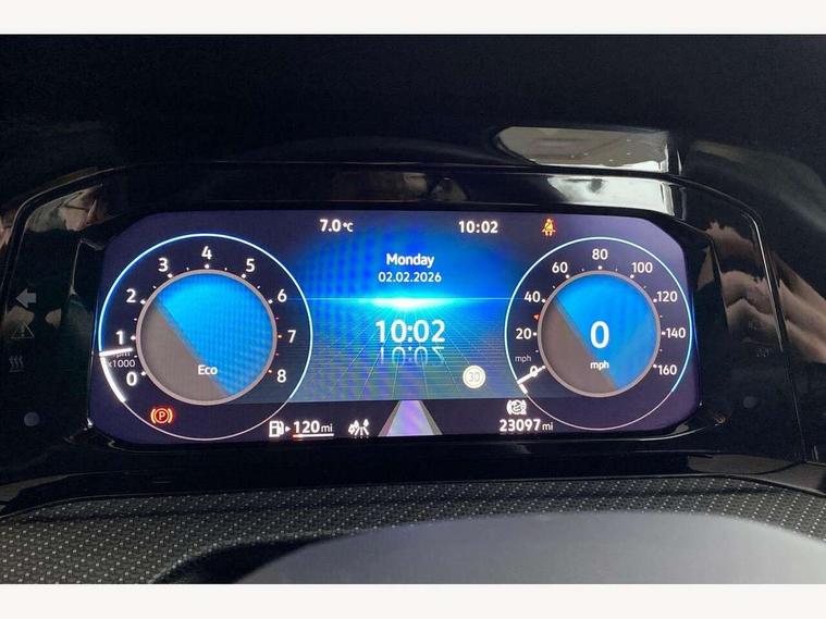 Adaptive cruise control (ACC) with speed limiter and front assist (reacting to vehicles pedestrians and cyclists), Car2X communication, Digital cockpit pro - 10.25" high resolution TFT dash display screen with customizable menus and information, Driver alert system, Dynamic road sign display, eCall - Emergency call service for SOS calls to emergency response, Lane assist, Mobile phone interface with wireless inductive charging function, Multifunction camera for distance control, PAS, Speedo, rev counter, electronic odometer, trip, service interval display, exterior temperature and fuel gauge, Start/Stop function, USB-C ports in the front and rear centre console with increased charging performance, Warning buzzer and light for front seatbelts unfastened, Wireless app connect, Petrol Particulate Filter, XDS electronic differential lock for improved traction and handling, Premium USB cable in choice of either Apple or Android smartphone compatibility, Ambient lighting, exterior illuminated styling elements at the sides, Auto dimming rear view mirror, Automatic headlamp activation with Coming home and Leaving home feature, Automatic headlights, Body colour door handles, Body colour door mirrors with integrated indicators, Body colour rear roof spoiler, Dynamic headlight range control, Electrically heated and adjustable door mirrors with memory feature, Front and rear electric windows, Heat insulating glass windscreen, Heated rear windscreen, High level 3rd brake light, Highway light, LED daytime running lights, LED headlights incorporating turn signals, LED License plate illumination, R Line body coloured bumpers, Rain sensor, Rear fog light on one side and reversing lights on both sides, Rear lights incorporating LED technology, Rear side wing doors, Rear tinted glass 65% light absorbing from B pillar backwards, Rear windscreen washer and wiper with interval delay, Welcome light, 12V socket in front centre console, 12V socket in luggage compartment, 3 rear head restraints, 3 seat bench in 2nd row, Ambient lighting - Customisable 30 colour ambient lighting, Black roof lining, Brushed stainless steel pedals, Chrome plated surround to electric mirror button, window switch and air vent surrounds, Drivers and front passengers sun visors with vanity mirrors, Front + rear carpet mats in recycled material, Front centre armrest with storage compartment, Front cupholders x 2, Front passenger seat, Front reading lights x 2 incorporating LED technology, Front seat lumbar support adjuster, Front sports seats, Glovebox, Height adjustable front seats, Height and reach adjustable steering wheel, Isofix child seat preparation for 2 rear child seats and front passenger seat, Luggage compartment lighting, R Line door and side trim panel, R Line front seats integrated head restraints, R-Line leather wrapped multi function sports heated steering wheel, Removable luggage compartment cover, Sardegna cloth upholstery with front and outer rear seats Art Velour inner sides of bolsters, Split folding backrest with centre armrest and unsplit rear seat bench, Woven fabric storage compartments in front and rear doors, 3 point height adj front seatbelts + pretensioners, 3 rear three point seatbelts, ABS, Child locks on rear doors, Driver and front passenger airbag with front passenger airbag deactivation, Drivers and front passengers safety optimised head restraints, Electronic parking brake with auto hold, ESC (Electronic Stability Control), Extended pedestrian protection measures, Front and rear passengers curtain airbag system including front side airbags, Front centre airbag, Front disc brakes, Front side airbags with curtain airbags, Rear disc brakes, Two tone horn, Tyre pressure monitoring system, Alarm with interior protection and deactivation via infotainment system, Electronic engine immobiliser, Carbon grey decorative inserts in dash and front door trim panels, High gloss black centre console, Soul dashboard, Space and weight saver spare wheel,