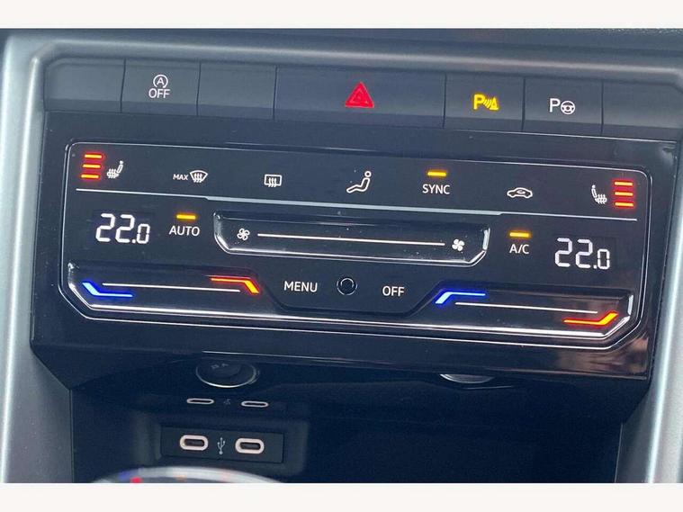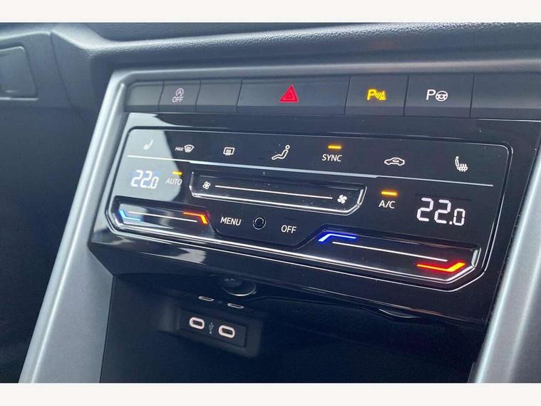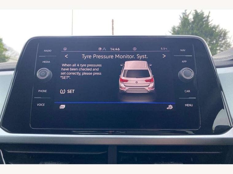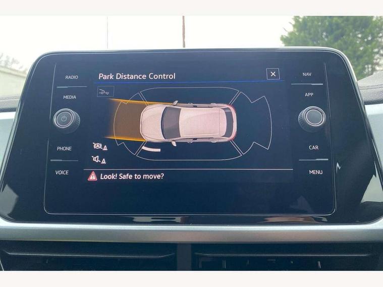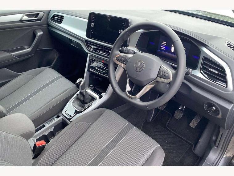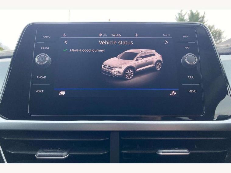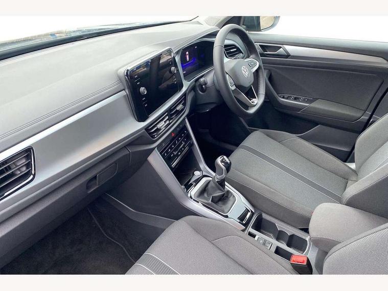 Advanced driver attention and drowsiness monitor, Dynamic road sign display, Emergency call service, Lane keeping system Lane Assist, Mobile phone interface, Modified key software - reduce switch off time for key status change to Long no motion, Online services, Park assist including front and rear parking sensors, Power assisted speed sensitive steering, Rear view camera, Service interval indicator, Tailgate/trunk lid release from outside, Think blue trainer driver tips and journey analysis, Warning sound and light for front seatbelts unfastened, Wireless app connect, Battery regeneration during braking, Front shock absorption, Rear shock absorption chassis with increased ride height, Start/stop function with battery regeneration, DAB Digital radio, Diversity antenna for FM reception, Music playback - MP3, WMA and AAC files, SD card slot, Simultaneous pairing of 2 compatible mobile devices, Title and cover art display, We Connect and We Connect Plus functionality, Auto dimming interior rear view mirror, Automatic hazard lights activation under emergency braking, Automatic headlight control with LED separate daytime running lights with coming/leaving home function, Black roof rails, Body coloured bumpers and radiator grille with chrome trim and front fog lamps with chrome bezel, Body coloured exterior mirror housings and door handles, Electrically adjustable and heated door mirrors, Extended roof spoiler, Exterior mirrors aspherical on driver side, convex on front passenger side, External USB type C socket and charging sockets, Front windscreen wiper with intermittent wipe and 4 position delay, Heated rear window, LED 3rd brake light, LED rear combination lamps, LED rear number plate lights, Power windows with comfort operation and circuit breaker, Privacy glass for rear side windows and rear window, Rain sensor, Rear exhaust tailpipe, Rear fog light on one side and reversing lights on both sides, Rear side wing doors, Rear wash/wipe with intermittent wipe setting, Remote electrically foldable door mirrors, puddle lights and reverse activated passenger's door mirror, 12V power socket in centre console, 3 rear head restraints, 3 seat bench in 2nd row, 4 load lashing points in luggage compartment, Air care climatronic air conditoning system with active combination filter and 2-zone temperature control, Black stitching for floor mats, Ceramique roof liner, Cloth upholstery, Door and side trim panel in cloth, Drawer under drivers seat, Driver/front passenger seat height adjustment, Front centre armrest, Front comfort sports seats, Front cupholders x 2, Front reading light, Front seat back storage pockets, Glove compartment door with light, Instrument lighting, white adjustable panel illumination, Interior ambient lighting and surround lighting, Interior light delay, Isofix child seat preparation, Leather gearshift handle, Load-through provision with cup holder when folded down ('Unsplit rear seat bench, split folding backrest, with centre armrest), Luggage compartment lighting, Lumbar support for driver's and front passengers seat, Non-folding front passenger seat backrest, Single front passenger seat, Storage compartment in left and right luggage area, Storage compartment in rear doors, Storage compartments in driver and front passenger doors, Sunvisors with illuminated vanity mirrors, Variable boot floor, height adjustable and removable, Driver assistance pack without proactive passenger protection - T-Roc Life/Match, 3 point height adj front seatbelts + pretensioners, 3 point seatbelts in outer rear with ECE label, ABS, Child locks on rear doors, City emergency braking and pedestrian monitoring, Driver and front passenger airbag with front passenger airbag deactivation, Driver and front passenger safety-optimised head restraints, Drivers seatbelt reminder, Electronic parking brake, Electronic Stability Control (ESC) inc EDL (Electronic Differential Lock) and ASR (Traction Control), Front and rear passengers curtain airbag system including front side airbags, Front disc brakes, Hill start assist, Predictive pedestrian protection, Rear disc brakes, Two tone horn, Tyre pressure loss indicator, Volkswagen roadside assistance, Alarm with interior protection, Keyless locking and starting system keyless access with safelock, Pewter matt decorative inserts for intrument panel, centre console and door panels at the front, Trims for alloy wheels,