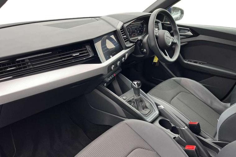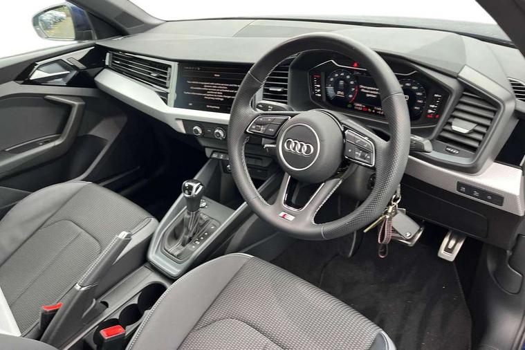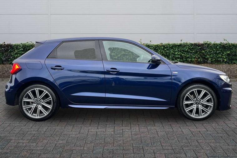 10.25" Digital instrument cluster display classis style instrument dials + speed, odometer, time, outside temperature, telephone menu + fuel level warning, Audi drive select - power steering assistance + engine + gear shift 3 preset modes (auto, dynamic, efficiency and an Individual mode), Audi smartphone interface with connect compatible smartphone via USB directly MMI display + Nav, music, third party apps controlled via MMI controller, Automatic start/stop system, Bluetooth interface, Cruise control, Driver's information system, Electromechanical power steering, Emergency e-call, Lane departure warning system, Rear parking sensor, Service interval indicator, Speed limiter, Voice control system, Washer fluid level indicator, Sports suspension, 2 x USB type C connection points, 6 passive loudspeakers, DAB Digital radio, MMI radio plus with 10.1" colour MMI display screen and MMI touch, Auto dimming rear view mirror, Body coloured door mirrors, Door sills with aluminium inlays and S Line logo, Electric front and rear windows, Electrically adjustable, heated, folding door mirrors with integrated LED side indicator, Front side air inlets in grained matt black and C frame in anthracite black, Heat insulating glass windscreen and side windows, Heated rear windscreen, High level LED brake light, LED headlights with LED rear lights + dynamic rear indicators + headlight adjustment and high beam, turning light + LED daytime running lights, Privacy glass, Radiator grille and rear diffuser in matt anthracite black, Radiator protective grille frame in matt aluminium silver, Rain and light sensors, Rear fog lights, Rear side wing doors, Rear wiper, S line badges on front wings, Side front spoiler lips in grained matt black, 12V socket in centre console with two cup holders, 3 rear seats with headrests, 3 seat bench in 2nd row, 3 spoke leather multi-function plus steering wheel features S badging and grips in perforated leather with contrast stitching, 40:60 Split folding rear seat or folded fully, Black cloth headlining, Driver and passenger seat with manual height adjust with forward and backwards adjustment, Front and rear black floor mats with contrast stitching in fine silver, Front head restraints, Front passenger seat, Height and reach adjustable steering wheel, ISOFIX child seat mounting for front passenger and outer rear seats including top tether attachment point of outer rear seats, Leather gear knob with aluminium trim, Leather handbrake grip, Luggage compartment light with front and rear reading lights, Manual air conditioning, Manually adjustable lumbar support in front seats, Stainless steel pedals, LED interior lighting pack - A1, Luggage compartment pack - A1, S line exterior styling pack - A1 Sportback, 3x3 point rear seatbelts, Audi pre-sense front with pedestrain and cyclist recognition, Brake assist function, Driver and front passenger airbag with front side and head airbags, Electronic Stability Control including ABS, EBD, ASR and EDL, Front passenger airbag deactivation switch, Hill hold assist, Manual rear child locks, Seatbelt height adjustment for front seats, Seatbelt monitoring, Tyre pressure warning light, Warning triangle and first aid kit, Anti theft alarm, Anti theft wheel bolts and loose wheel warning, Immobiliser, Remote central locking with 2 foldaway keys, Aluminium trim for control switches, air vents and digital instrument cluster, Black dashboard, Silver grey inlays polygon structure in diamond paint finish, Structured grey accent areas including air vents, door handle recesses and centre console in quartz paint finish,
