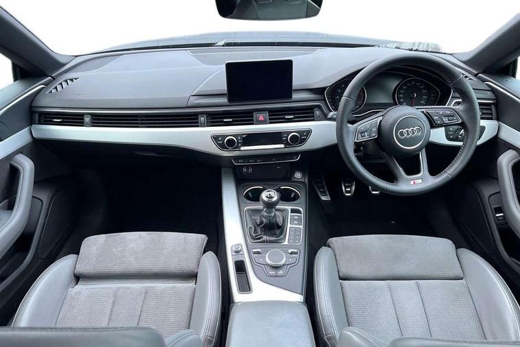 Audi drive select, Audi parking system plus with front and rear sensors, Audi smartphone interface, Colour driver's information system display, Electric tailgate release, Electro-mechanical PAS, Mobile telephone preparation - bluetooth interface, SD card based satellite navigation system, Service interval indicator, Voice control system, 2 x USB charging port with aux input socket, CD player, DAB Digital radio, MMI radio plus with 7" colour MMI screen and MMI controller, Two SDXC card slots, Air inlets in titanium black, Auto dimming rear view mirror with acoustic windscreen, Body colour bumpers, Body coloured door mirrors, Chrome exhaust tailpipes, Electric adjustable heated door mirrors, Electric front windows, Front fog lights, Heat insulated glass, Rain and light sensors, S Line body styling, S line sill plates, Twilight grey matt radiator grille in matt aluminium inlay, Twilight grey matt rear diffuser, 3 seat rear bench, Adjustable steering column, Automatic tri-zone climate control, Black headlining, Boot mat, Centre console with cupholders, Front centre armrest, Front head restraints, Front sports seats including electric lumbar support, Front/rear floor mats, Illuminated door sills, Isofix front passenger and rear seat preparation, Jack and tool kit, Perforated leather gearknob, Rear headrests, Split folding rear seat, Stainless steel pedals and foot rest, Top tether anchor plate for isofix child seat, Non Smokers pack, 3x3 point rear seatbelts, ABS, ASR, Driver/Front Passenger airbags, Electromechanical parking brake, ESP + traction control, First aid kit, Front and rear curtain airbags, Front passenger airbag deactivation, Height adjustable front seatbelts, Multi-Collision braking, Pre-sense city emergency braking system, Seatbelt warning, Side airbags, Tyre pressure monitor, Warning triangle, Anti theft system, Immobiliser, Keyless start, Locking wheel bolts, Remote central locking, Contrast stitching, Space saver spare wheel,