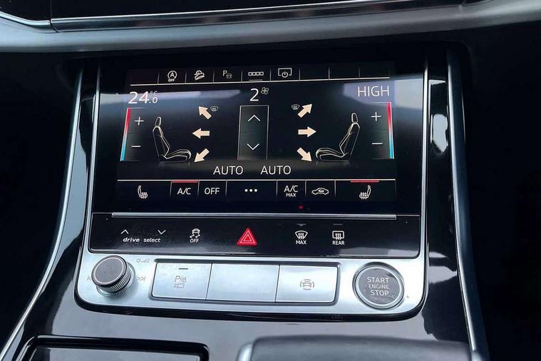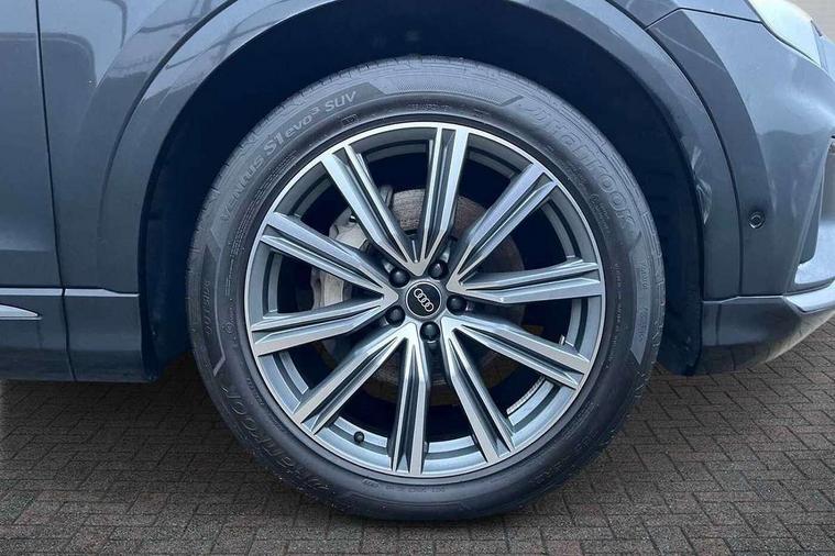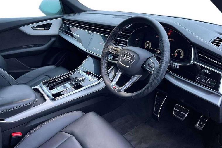 10.1" and 8.6" Dual colour touchscreens, Audi connect safety and service (e-call), Audi connect with Amazon Alexa Integration, Audi drive select, Audi parking system plus includes 360 degree display with front and rear sensors, Audi virtual cockpit - 12.3" high resolution LCD display with fully customisable instrument cluster, Automatic start/stop system, Electro-mechanical PAS, Low washer fluid indicator, MMI - Multi Media Interface control system, MMI navigation plus with MMI touch, Natural voice recognition, On board computer, Operating buttons in black, glass look with haptic feedback, Power operated tailgate, Rear view camera, Service interval indicator, Smartphone interface includes wireless Apple carplay/Android Auto, 48V Mild hybrid technology, Adaptive sport air suspension, Diesel particulate filter, Quattro all wheel drive with self locking centre differential, Audi music interface with 2 USB ports with charge and data functions, Audi sound system with 6 channel amplifier, 180 watt amplifying capacity and 10 loudspeakers including subwoofer, Aux-in socket, DAB Digital radio, 3rd brake light, Acoustic windscreen, Aluminium window trim, Audi HD Matrix LED headlights with dynamic front and rear indicators, Auto dimming frameless rear view mirror, Body colour door mirrors, Coming/leaving home lighting function, Electric front+rear windows, Electrically folding auto dimming/adjustable/heated door mirrors with memory function, LED side indicators and kerb view function for passenger side, Headlight washers, Heat insulating glass in windshield, Illuminated door sill trims with S line logo, LED signature daytime running lights, Platinum grey front spoiler lip and diffuser insert with honeycomb grille in black, Privacy glass - dark tinted rear and rear side windows from B-pillar backwards, Rain and light sensors, Rear side wing doors, Rear wiper, S line badges on front wings, S Line body styling, S line bumpers in full body colour paint finish, S line roof spoiler, S Line side skirts, S line side ventilation grille, 2 zone automatic climate control, 3 bench rear seats in 2nd row, 4-way lumbar support for front seats, 40:20:40 split folding rear bench seat, Black cloth headlining, Comfort front centre armrest, Driver seat memory function, Electrically adjustable front seats, Front head restraints, Front/rear floor mats, Heated front seats, ISOFIX child seat mounting for front passenger seat and 2 outer rear seats with top tether child seat mounting for all 3 rear seats, LED interior ambient lighting, Luggage compartment sill protection in stainless steel, Rear centre armrest with 2 cupholders, Rear headrests, Single front passenger seat, Stainless steel pedals, Sunvisors with illuminated vanity mirrors, 3 point seatbelts on all seats, Audi pre sense front, Child locks on rear doors, Driver and front passenger, front side and curtain airbags, Electromechanical parking brake, Electronic Stability Control (ESC) including ABS, ASR and EDL, Front passenger airbag deactivation, Hill descent control, Hill hold assist, Predictive pedestrian protection, Seatbelt monitoring, Traction control, Tyre pressure loss indicator, Warning triangle and first aid kit, Anti theft alarm with tow away protection, Anti-theft wheel bolts and wheel loosening detection, Immobiliser, Keyless go with remote central locking, Dark matt brushed aluminium inlay, Tool kit, Tyre repair kit,