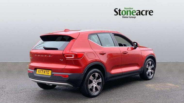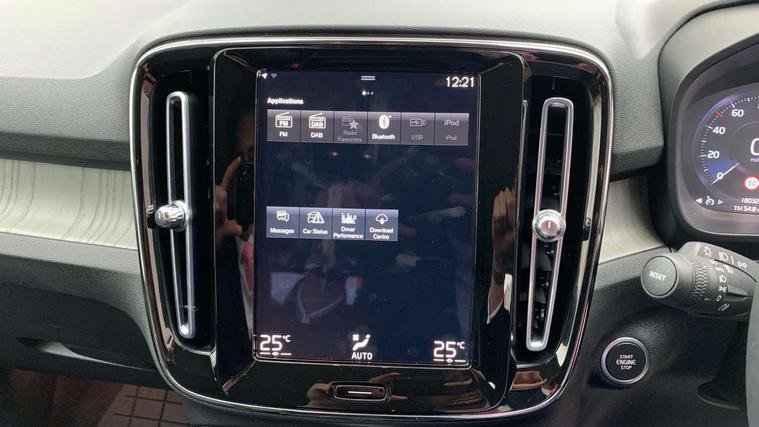 12.3" Active TFT crystal driver's instrument display, 9" centre console portrait touch screen, Adjustable steering wheel force, Bluetooth hands free telephone kit, Drive mode selector, E-call, Lane keep assist with driver alert control, Oncoming Lane Mitigation, Power operated tailgate, Sensus navigation with European mapping and traffic information, Speed limiter, Speed sensitive steering, Voice activated control for key functions, Volvo on call, Dynamic chassis, DAB Digital radio, Steering wheel mounted remote controls, Adaptive brake lights with high level LED brake lights, Auto dimming interior mirror, Automatic headlamp levelling, Chrome window surround, Colour coordinated auto folding and heated power door mirrors, Front aluminium tread plates, Front and rear electric windows, High gloss black front grille with chrome inserts, High gloss black sensus surround deco, High Gloss silver front and rear skid plate, Home safe and approach lighting, Integrated roof rails in silver, LED Headlights + Active high beam incorporating daytime running lights, Rain sensor with automatic windscreen wiper activation, Rear side wing doors, Rear wiper, Roof antenna, Roof spoiler, Visible VIN plate, 12V socket in front tunnel console and luggage compartment, 2 zone electronic climate control and rear air vent, 3 seat bench in 2nd row, 3 Spoke tailored steering wheel with chrome trim, 60/40 versatile split folding rear seat, A-pillar parking ticket holder, Bright metal luggage threshold, Centre console cupholders and storage, Floor mats, Front footwell illumination, Front headrests, Front reading light and theatre lighting, Glovebox bag hook, Height/reach adjustable steering column, Height/tilt adjustable driver's seat, Illuminated glovebox, Illuminated luggage compartment, Illuminated vanity mirrors, Isofix attachments on outer rear seats, Leather faced upholstery, Leather gearknob, Load protection net, Multi directional lumbar support, Power driver seat with memory + exterior mirrors memory, Rear armrest / integral cup holders / storage tray, Rear coat hook, Single front passenger seat, Underfloor cargo storage, Vanity mirror with ticket holder, Park assist pack - XC40, 3x3 point rear seatbelts, City safety includes pedestrian, cyclist and large animal detection and front collision warning with full auto brake, Drivers knee airbag, Dual stage driver/passenger airbags, Electronic parking brake with auto hold, First aid kit, Front and outer rear seatbelt reminder and pretensioners, Front seats SIPS airbags, Hill descent control, Hill start assist, Inflatable curtain, Passenger airbag cut-off device, Road sign information display, Run off Road Mitigation, Run off Road Protection, SIPS (Side Impact Protection System), Slippery road and hazard light alert, Stability and Traction Control with Spin control, Engine Drag Control and Corner Traction Control, Tyre pressure monitoring system, Vehicle deceleration control with Anti-lock Brake System, Electronic Brake Distribution and Emergency Brake Assist, Warning triangle, WHIPS whiplash protection system - front, Anti-theft alarm including immobiliser/volume sensor + level sensor, Care key with user defined top speed, Key integrated remote control central locking + fuel flap with deadlocking system and auto open/close power windows, Locking wheel nuts, Private locking for tailgate, Driftwood inlays,