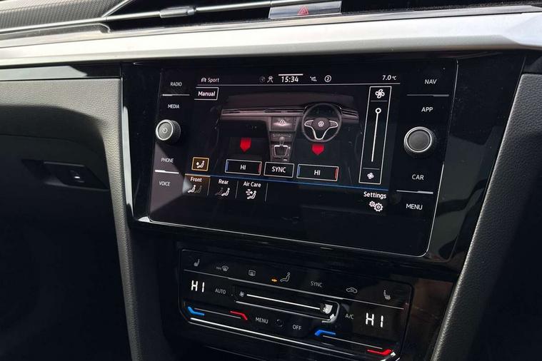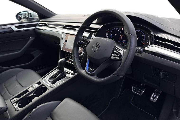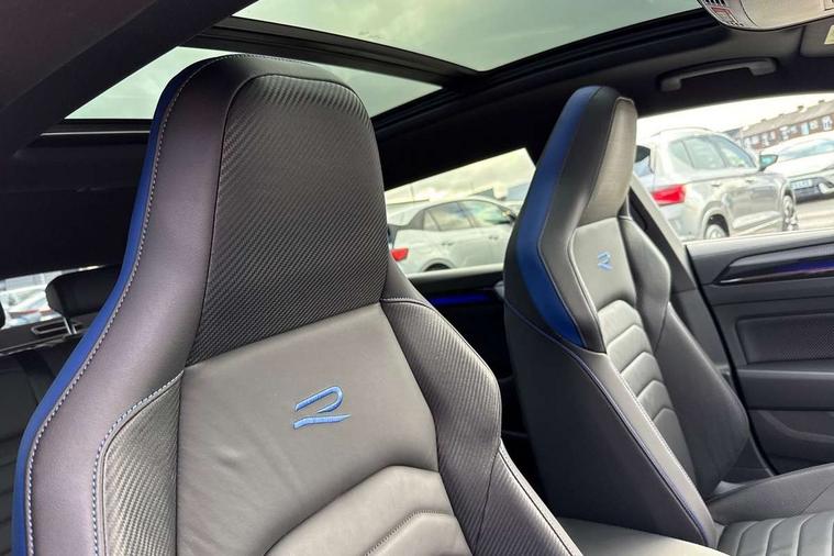 Adaptive cruise control (ACC) with speed limiter, front assist (reacting vehicles pedestrian and cyclists) and follow to stop, Advanced driver attention and drowsiness monitor, App connect including wireless Apple CarPlay, Camera for warning system, Digital cockpit with 10.25" high resolution TFT display screen with customisable menus and information, Driver profile selection including ECO function, Dynamic road sign display, eCall - Emergency call service for SOS calls to emergency response, Emergency assist, Hands free boot opening, Press and drive key, Progressive steering, R driving mode button on steering wheel, Side scan lane change assist including rear cross traffic alert, Speedo and rev counter, electronic odometer, trip, service interval display and exterior temperature gauge, Tailgate, Travel assist - Lane keeping assist and traffic jam assist, Voice activation for telephone and navigation, All wheel drive - 4Motion, Start/stop function with battery regeneration, XDS electronic differential lock, External, USB type C data sockets with increased charging performance front (45 Watt), Premium USB cable in choice of either Apple or Android smartphone compatibility, Auto dimming interior rear view mirror, Automatic coming/leaving home lighting function, Automatic headlights, Body colour door handles, Body colour side skirt, Body coloured top and matt black lower door mirrors with integrated indicators, Chrome side window surrounds, Dynamic headlight range control, Electric folding door mirror, adjustable, heated with front passenger exterior mirror lowering function, Front and rear electric windows, Front and rear stainless steel door sill protection, Front windscreen washers and wipers with 4x interval delay, Heat insulating side and rear windows, Heated rear windscreen, Heated windscreen washer jets, LED 3rd brake light, LED rear combination lamp with dynamic indicators, LED rear number plate lights, Left and right chrome effect twin trapezoid exhaust tailpipe surrounds, Panoramic sunroof with tilting and sliding including integrated roller blind, R Line design body coloured bumpers, R logo light projection, R logo on radiator grille, side panels and rear, R specific radiator grille, R specific rear bumper and R specific diffusor in black, Rain sensor, Rear fog lamp on one side and reversing lamp on both sides, Rear side wing doors, Rear tinted glass from B pillar backwards, approx 65% tinted, Rear windscreen washer and wiper with interval delay, Roof spoiler, 12V socket in front centre console, 12V socket on rear of front centre armrest, 14way electric adj front seats with lumbar + ergoComfort driver seat with memory/massage, comfort entry, integrated front headrest + door mirror memory, 3 rear head restraints, 3 seat bench in 2nd row, 30 colours options interior ambient lighting, 60:40 split folding rear seat backrests with centre armrest, Air care climatronic 3 Zone electronic air conditioning with automatic air recirculation, Chrome trim on upper and lower air vents extending across cockpit, Driver and front passenger sunvisor with vanity mirror, Front cupholders x 2, Front footwell illumination, Glovebox, Heated front seats, Height/reach adjust steering wheel, Isofix child seat preparation easy fit for two outer rear seats, Luggage compartment lighting, Nappa leather upholstery with side bolster and headrest, Pedals and footrest in stainless steel, Premium sports seats with R-logo, R performance leather wrapped heated multi-function sports steering wheel with touch controls and larger shifting paddles, blue stitching and R-logo, R specific floor mats with R-logo and stitching, Removable luggage compartment cover, Single front passenger seat, Split folding front seat backrest with front centre armrest, Titanium black roof lining, Two LED front reading light, 18" performance brakes, 3 rear three point seatbelts, ABS+EBD+Brake assist, Child locks on rear doors, Driver airbag and front passenger airbags with deactivation switch including driver knee airbags, Electronic parking brake, Electronic stability control (ESC) and Electromechanical brake booster, Front disc brakes, Front side airbags with curtain airbags, Hill start assist, Pro active occupant protection to detect critical situations with elevated accident potential from the front, R performance torque vectoring, R specific blue brake calipers, Rear disc brakes, Three point height adjust front seatbelts + pretensioners, Two tone horn, Tyre pressure monitor, Warning buzzer for seatbelts if unfastened, Warning triangle, Alarm with interior protection with deactivation via infotainment system, Electronic engine immobiliser, Keyless entry system including start/stop button on centre console, Remote central locking, Aluminium decorative inserts, Chrome trim on lower doors in front and rear, Leatherette insert on door and side trim panel in foam film, Piano black decorative inserts in centre console, R specific decor inlay aluminium black carbon,