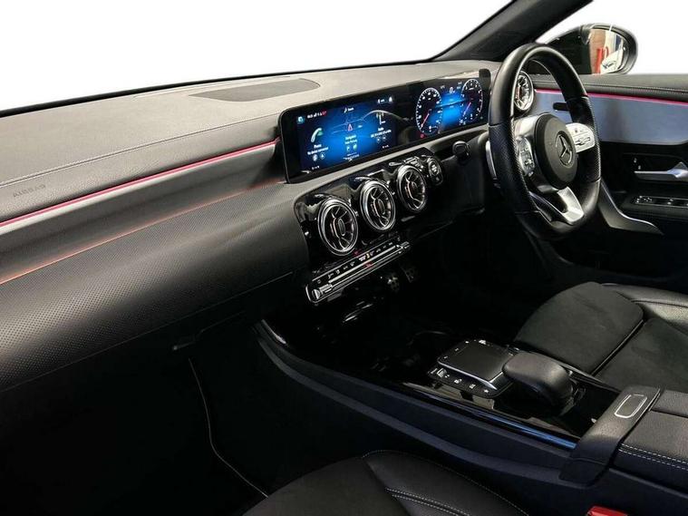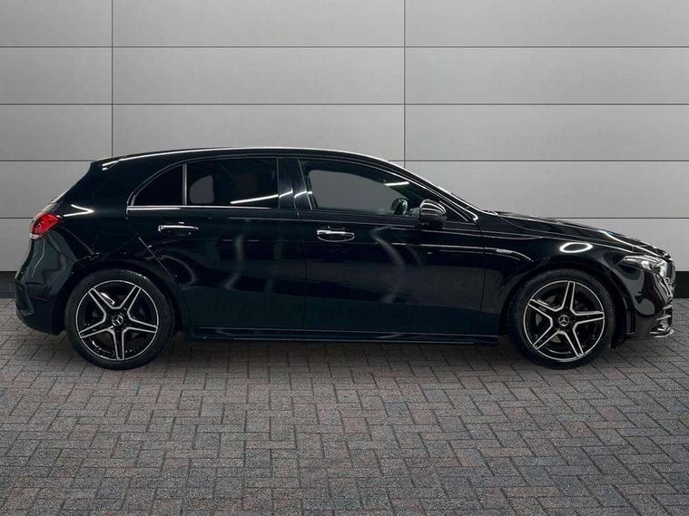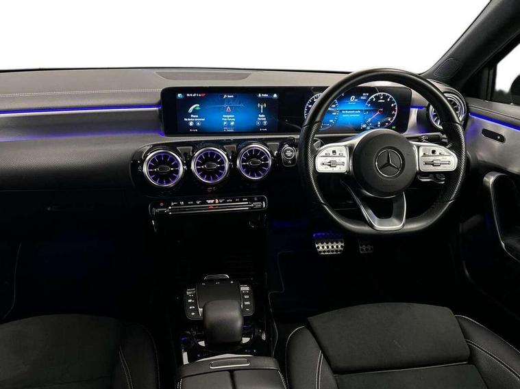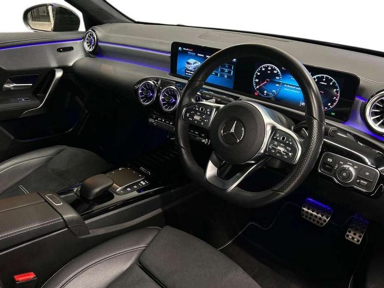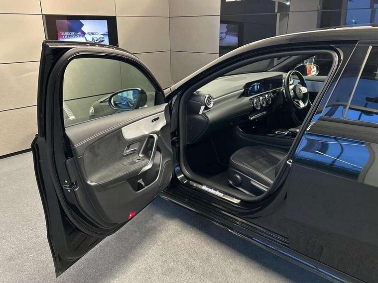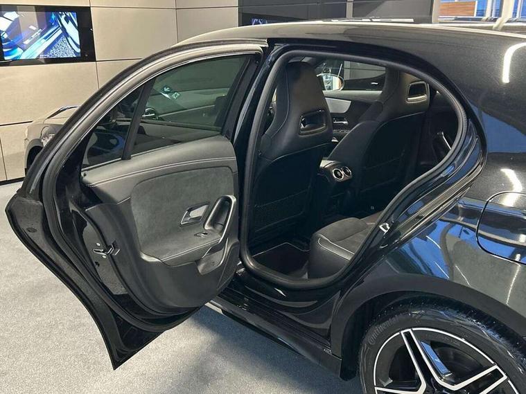 10.25" Digital instrument cluster display screen, 10.25" media display, 180 degree rear view camera with parking guidelines, Active parking assist with visual and audible warning of detected obstacles, Attention assist, Brake pad wear indicator warning light, Car wash mode, Cruise control + speed limiter, Direct steering, Dual bluetooth interfaces, DYNAMIC SELECT with a choice of driving modes (ECO, Comfort, Sport and Individual), ECO start/stop function, Fluid level warning indicator for fuel, oil, coolant and washer fluid, Hard-disk navigation, Hey Mercedes Voice activation, Lamp failure indicator, Lane keeping system, Mercedes me connect including emergency call system, accident recovery, breakdown and maintenance management, Mercedes me remote services, Outside temperature gauge, Owners manual in English, Pre-installation for private car sharing, Preinstallation for Mercedes Benz link, Service indicator (ASSYST), Smartphone integration with Apple CarPlay and Android auto, Speed sensitive power steering, Trip computer, Ultrasonic sensors positioned in the front and rear bumpers, Lowered comfort suspension, Rear axle torsion beam, 10 speakers, 2 USB ports (type C) in rear stowage compartment and one in front of center console, DAB Digital radio, MBUX multimedia system with DAB digital radio and touchpad including satellite navigation, Mercedes-Benz sound system - 100W, 4 Electric Front and Rear windows, Adaptive brake lights, AMG bodystyling - Front apron with splitter in chrome, rear apron with chrome trim and chrome visible trim elements in tailpipe, Black weather strip, Body colour bumpers, Body colour door handles, Body colour side skirt, Body coloured door mirrors, Electric adjustable and heated door mirrors with integrated LED side indicators, Exclusive diamond radiator grille, Exhaust system - Twin visible tailpipes in polished stainless steel, Headlamp assist automatic headlamp activation, Heated glass rear windscreen + timer control, High gloss black beltline, LED High level third brake light, LED high performance headlamps with integrated LED daytime running lights, LED tail lamp, Privacy glass, Radio aerial, Rain sensing windscreen wipers with two sensitivity settings, Rear fog lights, Rear wiper, Window line trim strip in high gloss black, 3 Spoke flat bottom leather multi function steering wheel with perforated leather in grip area, 40:20:40 split folding rear seats, Artico man-made leather/Microfibre Dinamica upholstery with contrast stitching in light grey, Auto Mercedes-Benz child seat recognition sensor, Black air vents with surround in silver chrome, Black roof lining, Brushed stainless steel sports pedals with rubber studs, Controller on centre console with chrome surround, Floor mats with black top stitching and embroidered edition logo and piping in light grey, Front centre armrest with storage compartment, Front seat backs luggage nets, Front seat cushion length adjustment, Galvanished gear shift paddles on steering wheel, Heated front seats, Height/reach adjustable steering column, Illuminated front door sills with changeable cover, Interior lighting - 64 colour Ambient lighting, Interior mirror with reading lamps in black and frameless, Manual height adjustable front seats, Rear armrest with 2 cupholders, Rear head restraints, Seat occupancy sensor for front passenger seat, Sports seats with integrated headrests, Stowage compartment in centre console with retractable cover, Sunvisors with illuminated vanity mirrors, Touchpad on center console, Twin front cupholders, Two zone thermotronic luxury automatic climate control, Light and sight pack - A Class, Mirror package - A Class, Night pack - A Class Saloon/Hatchback, Seat comfort pack - A Class, 3 rear 3 point seatbelts, ABS with Brake Assist, Active bonnet, Active brake assist includes forward collision warning system with autonomous braking, Adaptive brake assist with hold function and hill start assist, Black seatbelts, Childproof locks manually operated for rear doors and electrically operated for rear power windows, Crash responsive emergency lighting, Driver and passenger head and side airbags, Drivers knee airbag, Dual stage driver/passenger airbags, Electronic parking brake, ESP curve dynamic assist, ESP with ASR, Front and rear seatbelt reminder, Front brake callipers with Mercedes Benz lettering, ISOFIX and top tether child seat fixing points in two outer rear seats, Tyre pressure monitoring system, Warning triangle and first aid kit, Window airbags, Alarm system/interior protection/immobiliser, Keyless entry lock/unlock, Keyless Go, Remote central locking and crash sensor with emergency opening function, Urban guard vehicle protection system with immobiliser and interior protection, Matrix look light longitudinal grain aluminium trim element, 18" AMG 5 twin spoke light alloy wheels aerodynamically optimised painted in black with highsheen finish, Summer tyres, Tirefit sealant kit,