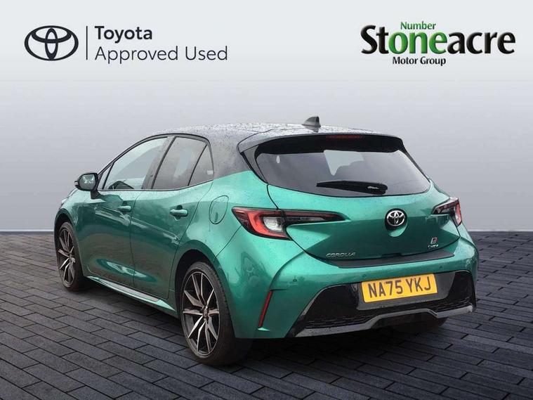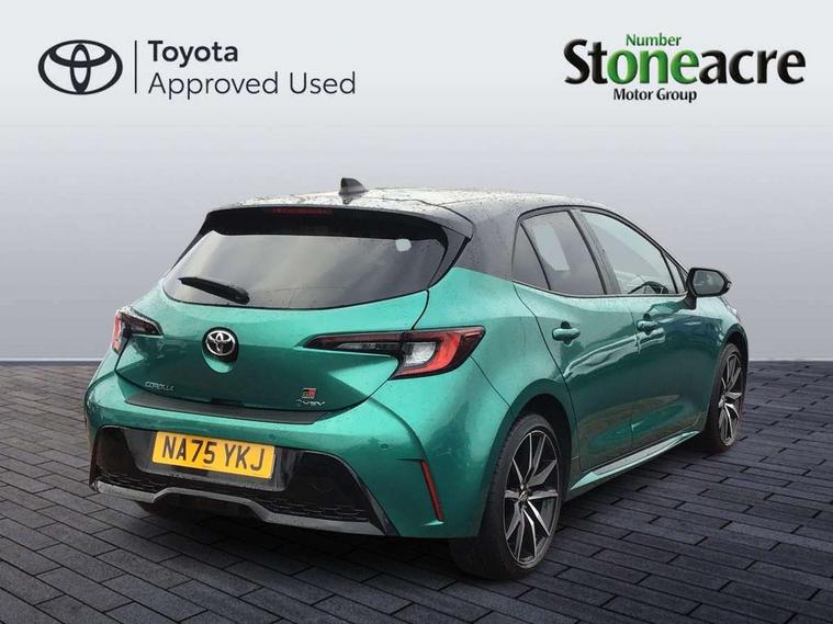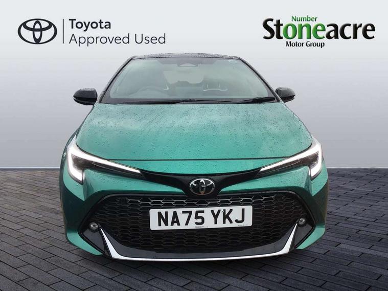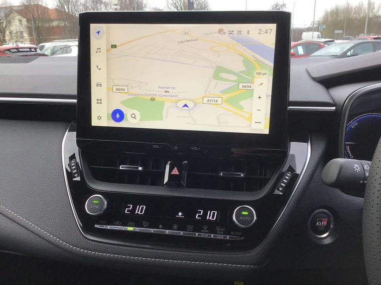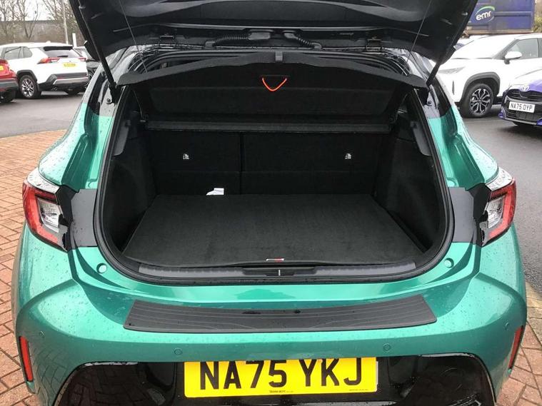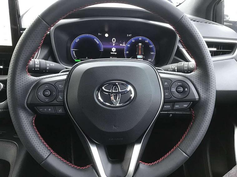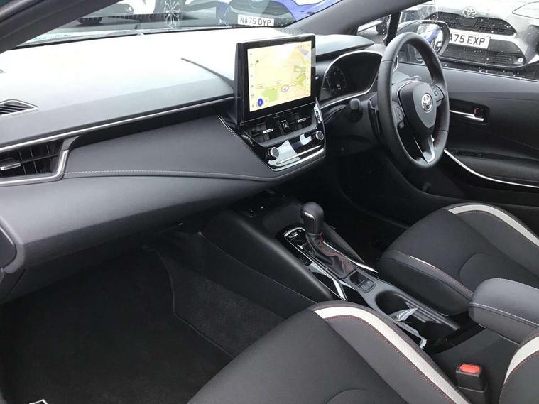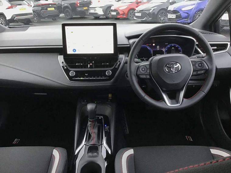 10.5" Multimedia display screen, Bluetooth telephone connectivity, Connected car functionality upgrade, tracker, remote status and e-care, Drive mode select (Eco, Normal), E-call, Electrically assisted power steering, EV drive indicator, Front and rear parking sensors, Full Digital 12.3" TFT Digital Combimeter, Intelligent clearance sonar, Key reminder warning, Lane Departure Alert (LDA) switch on steering wheel, Memory on adjustable speed limiter, MyT connected services, Proactive driving assist (PDA), Reversing camera, Smart entry and push button start with GR Logo, Smartphone integration with Apple CarPlay and wired android auto, Tailgate, Toyota remote services, Toyota smart connect navigation, Wireless charger, Gasoline particulate filter, Vehicle Stability Control (VSC), 6 speakers, AM/FM radio, DAB Digital radio, Front USB-C in centre console, Front USB-C in dashboard, Smart voice assist/ Voice recognition, USB and Aux in connectors + 12V front outlet, Anti-jam protection on power windows, Auto up and down function on all power windows, Automatic folding mirrors, Automatic headlights with high beam assist, Black centre and side air vents, Black toyota logo in front, Body coloured bumpers, Body coloured door mirrors, Body coloured outside door handles, Dark chrome lower grille, Electrochromatic mirror, Follow me home headlights, GR Sport dark chrome front mesh grille and black rear grille, GR Sport exclusive under guard, GR sport scuff plates, LED daytime running lights, LED dual beam projector headlights, LED front fog lights, LED High mounted stop light, LED rear combi lights with LED lightguide, Manual headlight levelling system, New grille pattern, Noise reduction layer on windscreen, Piano black diffuser, Power adjustable heated door mirrors, Power front windows, Power rear windows, Privacy glass with UV filter, Rain sensing wipers, Rear side wing doors, Rear window defogger, Rear window wiper, Reverse tilting door mirrors, Rocker and door lower moulding, Roof spoiler, Satin chrome insert on front air vents, Satin chrome insert on front door assist grips, Satin silver front spoiler, Shark fin antenna, Tailgate release with push button, Time adjustment on intermittent wiper, Turning signal integrated indicators in door mirrors, Unique lower skirt, Unique side rocker with black insert, UV-filter on driver and passenger windows, 2 Shopping bag hooks in luggage compartment, 3 rear headrests, 3 seat bench in 2nd row, 3 spoke steering wheel with satin insert and red stitching, 4 tie down hooks in luggage compartment, 60/40 split folding rear seat, Adaptive cruise control (ACC) switch on steering wheel, Adjustable speed limiter switch on steering wheel, Audio, multimedia and telephone switches on steering wheel, Black armrest on centre console box, Black gear shift console, Boot light, Boot underfloor storage, Centre room light, Driver and front passenger personal light, Driver and passenger assist grip, Driver and passenger seatback pockets, Driver and passenger sun visor with mirror and light, Dual zone automatic air conditioning with ECO mode switch, Electric lumbar support for passenger, Fabric/synthetic leather upholstery, Front and rear cup and bottle holders, Front door pockets, Front head restraints, Front passenger seat, Front sliding synthetic leather armrest, Gear knob, GR Sports seats with partial leather bolsters, Heated front seats, Illuminated entry system in room lamp, ISOFIX seat fixing (2 fixings on rear outer seats), Manual height adjustable for driver and front passenger seat, Manually tilt with sliding driver and front passenger seat, Nanoe-X air purifier, Paddle shifts, Parcel shelf, Pollen filter, Power adjustable lumbar support on driver seat, Power window switches with satin chrome inserts, Rear armrest with 2 cupholders, Rear passenger coat hooks (2), Red stitching on gear shift, Remote air conditioning, Satin chrome inside door handles, Satin chrome surround on speedometer, Sliding armrest on centre console box, Slow opening glovebox with lights, Textile floor mats, Tilt/telescopic steering column, Voice recognition switch on steering wheel, Whiplash Injury Lessening (WIL) feature (active headrest) for seats, White ambient lighting on open tray and front cup holder, Toyota safety sense 3 pack - Corolla, 3x3 point rear seatbelts, Adjustable driver and front passenger seat belt extender to top anchor point, Anti lock braking system + Electronic brake force distribution, Brake assist function, Child locks on rear doors, Downhill Assist Control (DAC), Electronic parking brake, Emergency brake light signal (EBS), Front passenger airbag on/off switch, Front seatbelt reminder, HAC - Hill start assist control, Rear seat belt reminder, Seatbelt pretensioners and force limiters, Supplemental restraint system (SRS) 7 airbags - dual driver, dual side curtain, side impact and driver knee airbags, Traction control, Tyre pressure warning system, Acoustic vehicle alert system (AVAS), Alarm with motion sensor and immobilizer, Power passenger window lock, Remote central locking + deadlocks, GR Sport interior and exterior styling, Satin chrome dash trim, Soft touch texture on upper dashboard, Stitching on lower dashboard, 18" 10 spoke black machined face alloy wheels, Tyre repair kit, Unique wheel finish with red wheel cap,
