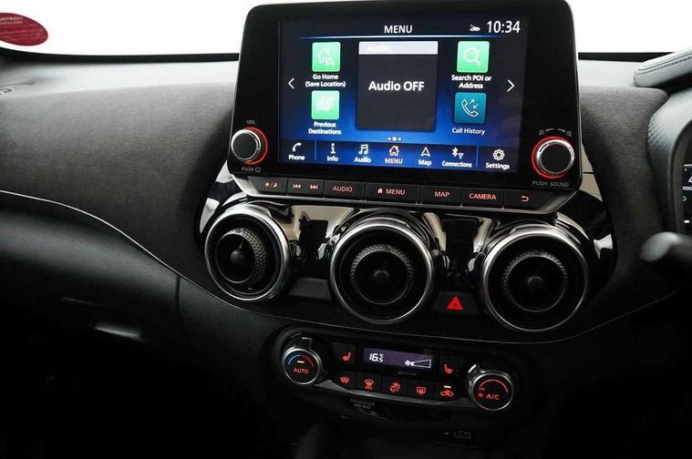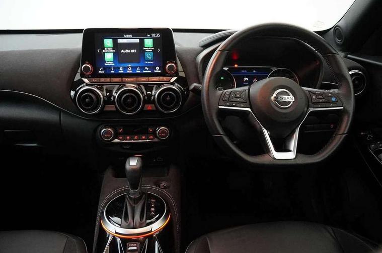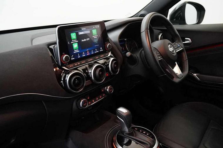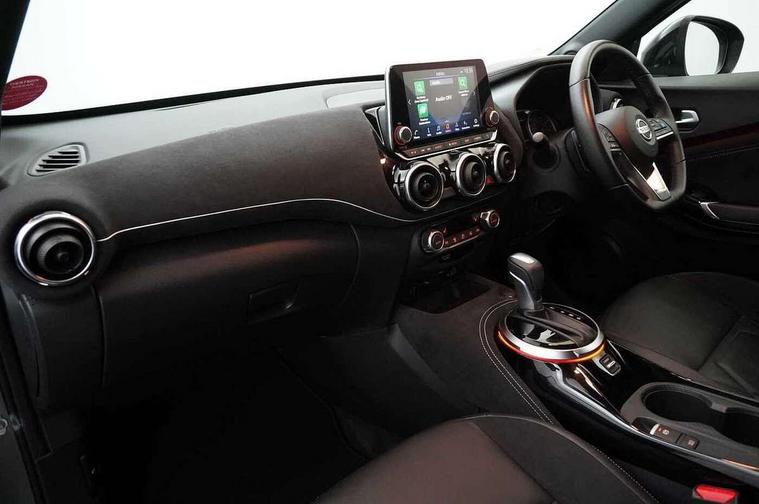 7" full colour TFT screen combimeter, 8" infotainment colour display with touch screen, Apple CarPlay and Google Android auto, Drive modes select (Eco, normal and sport), Emergency and breakdown call, Front parking sensor, Idle start/stop system, Intelligent lane intervention, Lane departure warning system, Nissan connect nav with TomTom traffic, Nissan connect services and Wifi connection, Outside temperature sensor, Power Steering, Rear parking sensor, Traffic sign recognition, Trip computer, Gasoline particulate filter, Bluetooth system, USB, Aux-in and 12V socket, Bose personal plus audio system with 8 speakers(4 speakers and 2 headrest speaker for driver and passenger seats), Bose personal sound stage control, DAB Digital radio, Front lower bumper painted in silver finisher, Rear console USB port, Auto dimming interior rear view mirror, Automatic hazard signal with emergency stop signal, Body colour bumpers, Body colour door handles, Electrically adjustable door mirrors with integrated indicators, Follow me home headlights, Front and rear electric window with one touch driver and passenger window, Heated and auto folding door mirrors, High beam assist, LED daytime running lights, LED front fog lights, LED headlamps, LED rear fog lamp, LED rear lamps, Rain sensor windscreen wipers, Rear privacy glass, Rear spoiler, Rear wiper, Thermaclear heated windscreen, Three blink turn signal, 3 height adjustable rear headrests, 60/40 split folding rear seat, Automatic climate control, Card holder on driver sunvisor, Door ambient lighting, Driver and passenger sliding and reclining seats, Driver seat back pocket, Driver side rear coat hanger, Driver/passenger sunvisors and illuminated vanity mirrors, Front and rear cabin lights, Front armrest, Front door pockets with bottle holders, Front head restraints, Front passenger isofix child seat anchorage point, Front/rear passenger grab handles, Gear console ambient circle lighting, Grey synthetic leather kneepad, Heated front seats, Height adjustable driver's seat, Height adjustable passenger seat, Internal chrome door handles, Leather gearshift knob, Leather steering wheel, Luggage board, Luggage space lighting, Monoform sporty seats, Multifunction steering wheel, Passenger seat back pocket, Rear door bottle holders, Steering wheel mounted gearshift paddles, Telescopic steering wheel adjustment, Two cupholders in front centre console, Two rear isofix child seat anchorage points with top tether, Voice recognition switch on steering wheel, Welcome light and console tray ambient lighting, ProPilot pack - Juke, ABS with EBD and brake assist, Active ride control, Active Trace Control, Driver and passenger airbags, Driver and passenger side airbags, Electric handbrake with auto hold function, Electronic Stability Programme (ESP), Front and rear curtain airbags, Height adjustable seatbelts, Hill start assist, Intelligent emergency braking with pedestrian and cyclist recognition, Seatbelt reminder for driver/front passenger and rear seats, Single tone horn, Three 3 point rear seatbelts, Traction control, Tyre pressure monitoring system, VDC Dynamic Vehicle Control, Ventilated rear brake discs, Alarm, Immobiliser, Intelligent Key with push button starter, Remote central locking, 19" Akari alloy wheels,