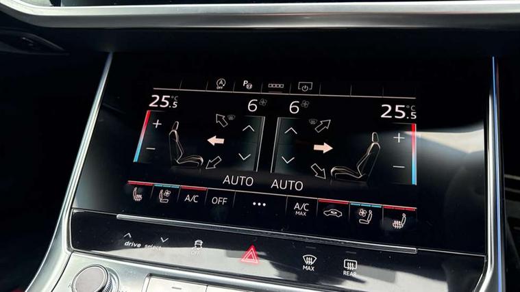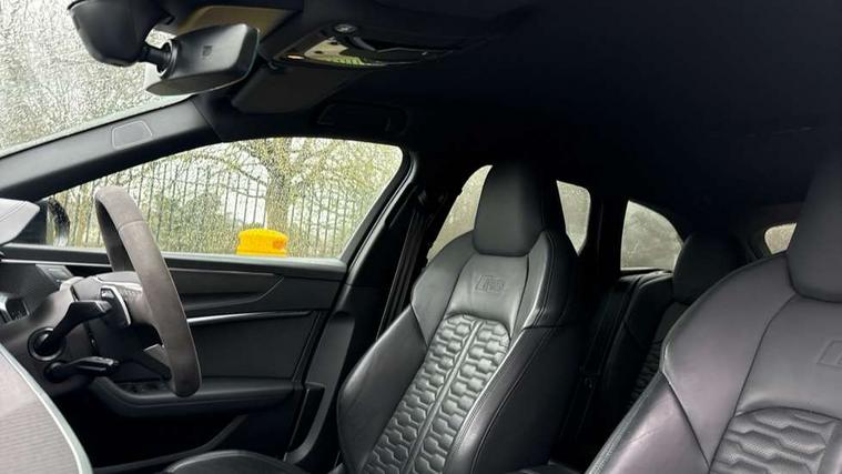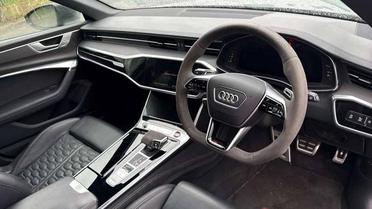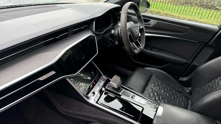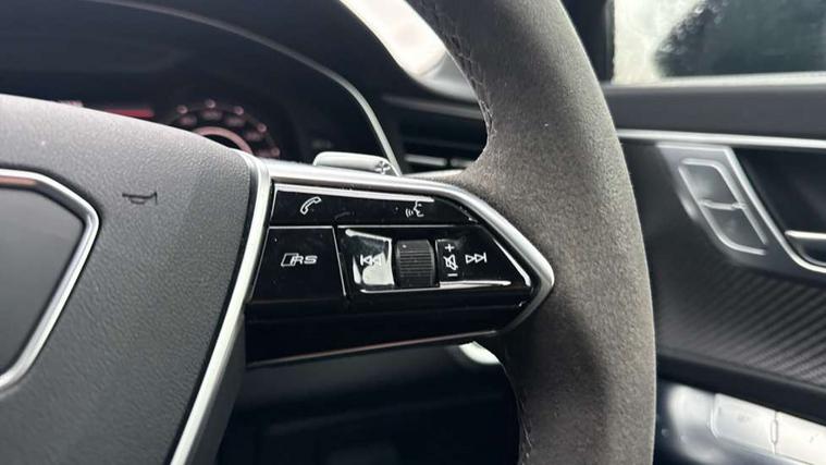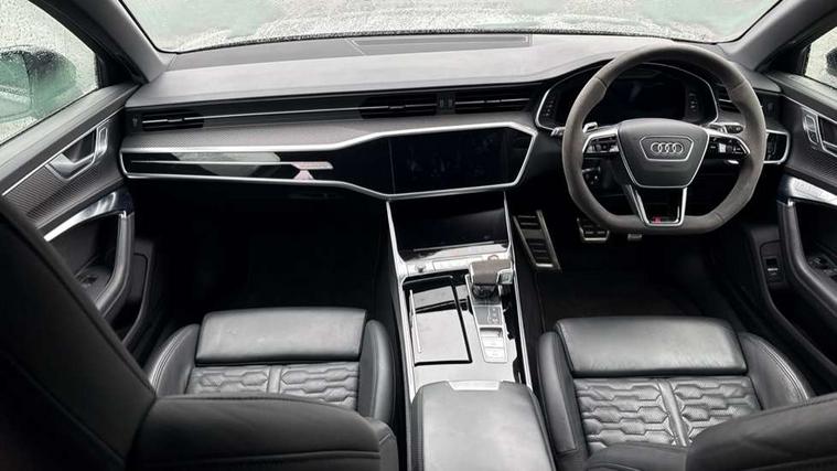 Audi connect safety and service (e-call), Audi connect with Amazon Alexa Integration, Audi drive select, Audi smartphone interface includes wireless Apple carplay/Android Auto, Audi virtual cockpit plus with RS specific design and 12.3" display with additional graphic display options, Automatic start/stop system, Bluetooth interface, Dynamic all wheel steering, Lane departure warning system, MMI navigation with MMI touch + twin touch screens 10.1" and 8.6" with haptic and acoustic feedback, Operating buttons in black, glass look with haptic feedback including extended aluminium look, Power operated tailgate, Rear view camera, Service interval indicator, Voice control system, 73 litre fuel tank, Quattro sports differential, Audi music interface, Audi sound system, DAB Digital radio, 3rd brake light, Adaptive windscreen wipers with integrated washer jets, Black mirror caps, Body colour rear roof spoiler, Electric front/rear windows, Electrically adjustable, heated and folding door mirrors with integrated LED indicators and kerb view function for passenger side, Frameless auto dimming interior rear view mirror, HD Matrix LED headlights with Audi laser light with dynamic light design and dynamic turn signal, Headlight washers, Heat insulating glass in side and rear windows, Illuminated door sill trims with RS lettering, LED daytime running lights, LED rear combination lamps with dynamic light design and dynamic turn signal, Privacy glass with rear/side windows and acoustic glazing side windows, Radiator grille in honeycomb structure, large front air inlets and rear diffuser in gloss black, Rain and light sensors, Rear side wing doors, Rear wiper, RS front bumper with air inlets on both side, Wheel arch extensions, 2 seat bench in 2nd row, 4 way electric lumbar support for driver and front passenger, 4 zone deluxe automatic climate control, Aluminiium gear shift paddles, Audi Sport logo projection (Audi Beam) in front and rear, Black cloth headlining, Electric steering wheel adjustment, Electrically adjustable front seats with driver memory, Front and rear headrests, Front centre armrest, Front seat ventilation, Front/rear floor mats, Heated front seats, ISOFIX child seat mounting and Top Tether with front passenger airbag deactivation, Leatherette on upper instrument panel and door shoulders, RS Front sports seats, Single passenger seat, Stainless steel pedals and foot rest, Valcona leather upholstery with perforated honeycomb and RS lettering, Air quality pack - RS6, Extended LED interior multi coloured lighting pack - RS6, Gloss carbon black styling pack - RS6, RS Grey design pack - RS6, Storage pack - RS6, 2 x 3-point rear seat belts, Airbags - Front side, front and rear including head, Audi pre-sense front, Direct tyre pressure monitoring system, EBD - Electronic brakeforce distribution, Electromechanical parking brake, Electronic Stability Control (ESC) including ABS, ASR and EDL, Extended pedestrian protection measures, Manual child lock in rear doors, Warning triangle and first aid kit, Anti theft alarm with tow away protection, Anti-theft wheel bolts and wheel loosening detection, Immobiliser, Keyless Go, Remote central locking, Carbon twill inserts, 22" Gloss black turned finish alloy wheels, Tyre repair kit,
