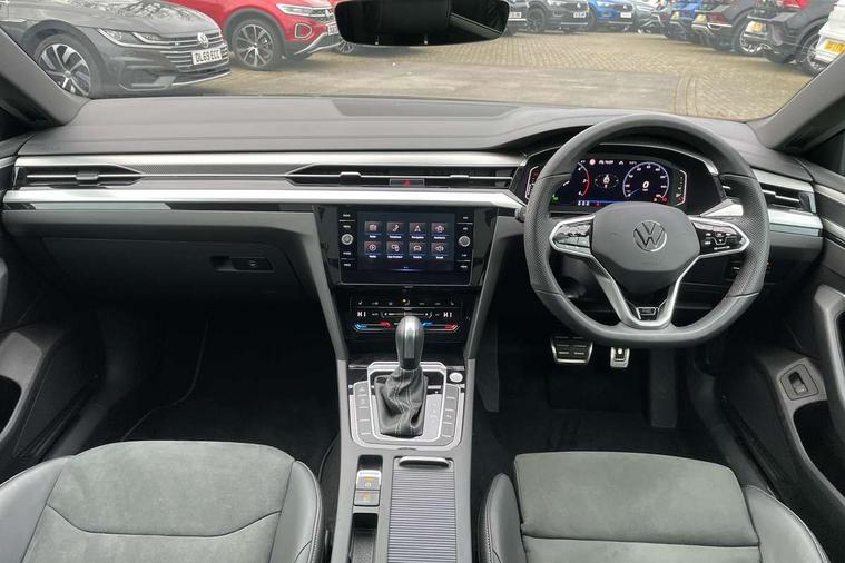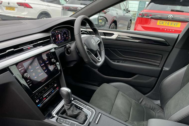 Adaptive cruise control (ACC) with speed limiter, front assist (reacting vehicles pedestrian and cyclists) and follow to stop, App connect including wireless Apple CarPlay, Camera for warning system, Digital cockpit with 10.25" high resolution TFT display screen with customisable menus and information, Driver alert system with fatigue detection, Driver profile selection including ECO function, Dynamic road sign display, eCall - Emergency call service for SOS calls to emergency response, Emergency assist, Hands free boot opening, Press and drive key, Progressive steering, Speedo and rev counter, electronic odometer, trip, service interval display and exterior temperature gauge, Tailgate, Travel assist - Lane keeping assist and traffic jam assist, Voice activation for telephone and navigation, Start/stop function with battery regeneration, External, USB type C data sockets with increased charging performance front (45 Watt), Premium USB cable in choice of either Apple or Android smartphone compatibility, Auto dimming interior rear view mirror, Automatic headlights, Body colour door handles, Body colour side skirt, Body coloured top and matt black lower door mirrors with integrated indicators, Chrome plated radiator grille inserts and light switch surrounds, Chrome side window surrounds, Dynamic headlight range control, Electric folding door mirror, adjustable, heated with front passenger exterior mirror lowering function, Front and rear electric windows, Front and rear stainless steel door sill protection, Front windscreen washers and wipers with 4x interval delay, Heat insulating side and rear windows, Heated rear windscreen, Heated windscreen washer jets, LED 3rd brake light, LED rear combination lamp with dynamic indicators, LED rear number plate lights, Panoramic sunroof with tilting and sliding including integrated roller blind, R Line design body coloured bumpers, Rain sensor, Rear fog lamp on one side and reversing lamp on both sides, Rear side wing doors, Rear tinted glass from B pillar backwards, approx 65% tinted, Rear windscreen washer and wiper with interval delay, Roof spoiler, Tailpipes behind rear bumper, 12V socket in front centre console, 12V socket on rear of front centre armrest, 3 rear head restraints, 3 seat bench in 2nd row, 30 colours options interior ambient lighting, 60:40 split folding rear seat backrests with centre armrest, Air care climatronic 3 Zone electronic air conditioning with automatic air recirculation, Black roof lining, Chrome trim on upper and lower air vents extending across cockpit, Driver and front passenger sunvisor with vanity mirror, Front + rear carpet mats, Front cupholders x 2, Front footwell illumination, Front sports comfort seats, Glovebox, Heated front seats, Height/reach adjust steering wheel, Isofix child seat preparation easy fit for two outer rear seats, Luggage compartment lighting, Removable luggage compartment cover, Single front passenger seat, Split folding front seat backrest with front centre armrest, Stainless steel pedals, Two LED front reading light, 3 rear three point seatbelts, ABS+EBD+Brake assist, Child locks on rear doors, Driver airbag and front passenger airbags with deactivation switch including driver knee airbags, Electronic parking brake, Electronic stability control (ESC) and Electromechanical brake booster, Front disc brakes, Front side airbags with curtain airbags, Hill start assist, Pro active occupant protection to detect critical situations with elevated accident potential from the front, Rear disc brakes, Three point height adjust front seatbelts + pretensioners, Two tone horn, Tyre pressure loss indicator, Warning buzzer for seatbelts if unfastened, Warning triangle, Alarm with interior protection with deactivation via infotainment system, Electronic engine immobiliser, Keyless entry system including start/stop button on centre console, Remote central locking, Aluminium decorative inserts, Chrome trim on lower doors in front and rear, Leatherette insert on door and side trim panel in foam film, Piano black decorative inserts in centre console,