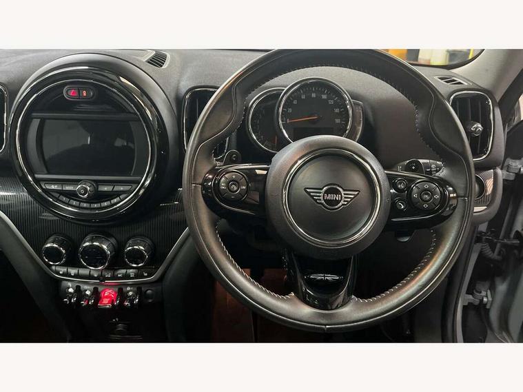 Active Guard incl speed limiting and lane departure functions with auto steering, and front collision warning with brake intervention, Automatic start/stop function with brake energy recuperation, Electro-mechanical speed dependant steering assistance, Instrument cluster, Mini E-call, MINI TeleServices, On board computer, Rear parking distance control, Double Vanos system, Fully variable valve control, High precision injection, Performance Control, Steptronic sport transmission with double clutch and steering wheel paddles, FM tuner and DAB digital radio, Bonnet scoop, Chrome border honeycomb structure radiator grille with S badge, Chrome fuel filler cap, Chrome line exterior, Day time driving lights, Dynamic brake lights, Electric windows, Heated rear window, Heated windscreen washer jets, Metal door sill strips with Cooper S imprint, Model logo, Model logo on Tailgate, Rain sensor with auto headlights, Rear fog lights, Rear window wiper, Side scuttle panel with integrated indicator, Split rear doors, Sun/heat protection glass, Twin exhaust tailpipe, White indicator lenses, 12V Accessory socket in centre console, 360L luggage compartment capacity, 4 lashing eyes in luggage compartment, 40:20:40 split folding rear seats, Chrome interior highlights, Cupholders, English handbook, Front headrests, Glove compartment, Height and length steering column adjustment, Interior lighting with 12 basic colours selectable via toggle switch in roof, Isofix rear child seat preparation, Leather gearshift lever and handbrake gaiters, LED reading lights, vanity mirror lights, front foot well light and spotlight on front seats, Manual air conditioning, Mechanical seat adjustment, driver seat height adjust, forward/back and front seats backrest, MINI Yours fine walk nappa leather steering wheel with contrast stitching in silver and MINI Yours badge, Multifunction steering wheel, Passenger seat height adjuster, Rear headrests, Storage compartments in doors, Sunvisors with vanity mirrors, Excitement pack - Countryman, Navigation pack - Countryman, 2 tone horn, 3 point seatbelts on all seats, 6 Airbags - front, side, head and seat belt tensioners, Anti-lock braking system (ABS), DSC - Dynamic Stability Control, Electronic handbrake, Front and rear disc brakes, Hill start assist, Tyre pressure monitoring system, Alarm system with tilt sensor, monitoring doors, bonnet interior and tailgate, Auto drive away locking, Deadlocking function, Electronic vehicle immobiliser, Locking wheel bolts, Start/stop toggle with keyless go, Chrome line interior, Tool kit,