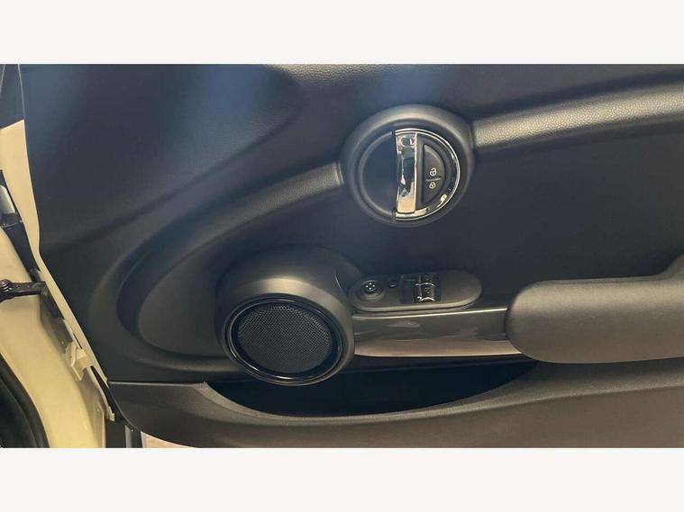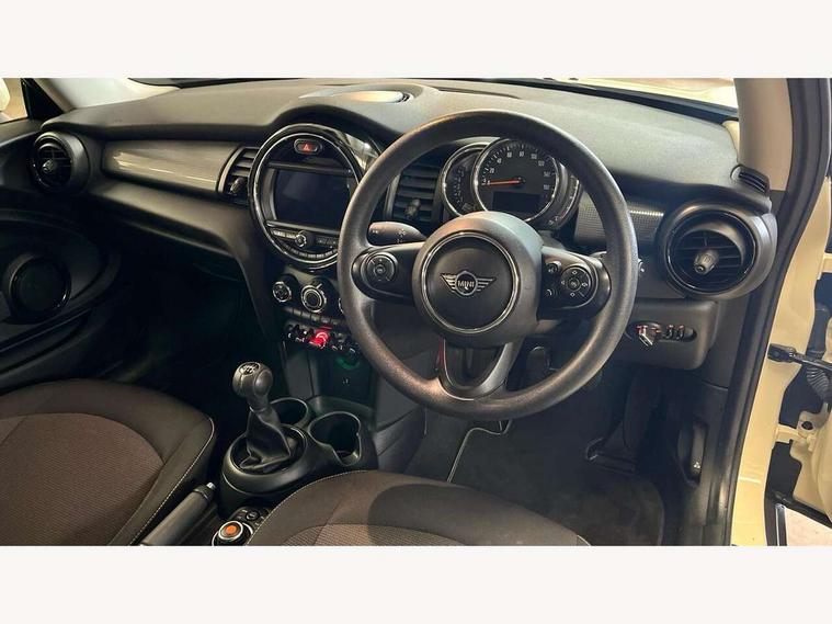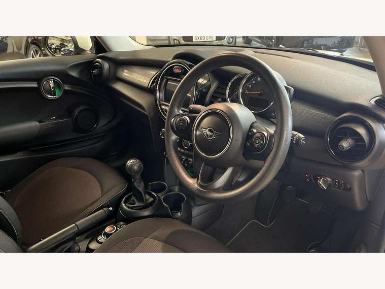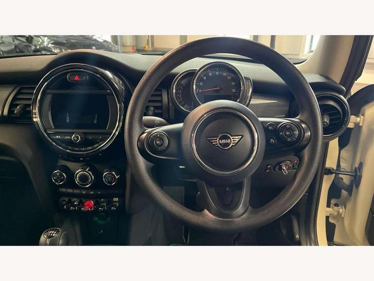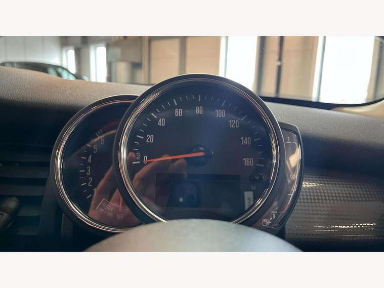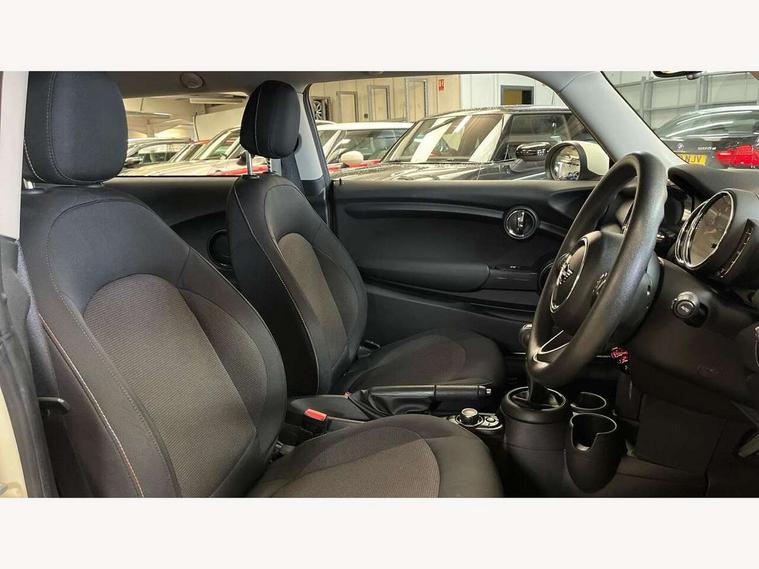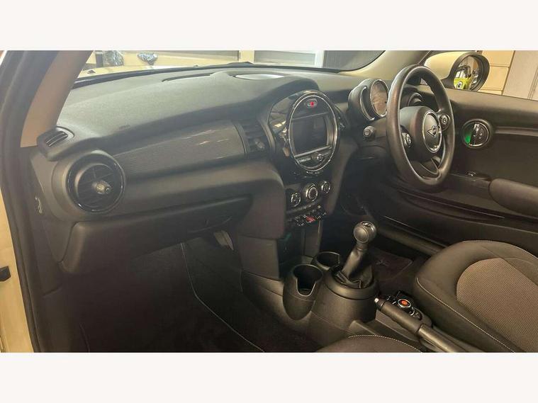 Automatic start/stop function with brake energy recuperation, Compatible mobile phone bluetooth with audio streaming, Electro-mechanical speed dependant steering assistance, Instrument cluster, Mini E-call, MINI TeleServices, On board computer, Service interval indicator, Double Vanos system, Fully variable valve control, High precision injection, 6.5" touchscreen with LED ring, FM tuner and DAB digital radio, Automatic headlight activation switch, Body colour fuel filler cap, Chrome border high gloss black slats radiator grille, Dynamic brake lights, Electric front+rear windows, Heated rear window, Heated windscreen washer jets, LED headlight with closed ring and daytime driving lights, Left exhaust tailpipe with chrome finisher, Metal door sill strips with MINI imprint, Model logo Cooper on right of tailgate, Rain sensor window wipers, Rear fog lights, Rear LED lights with union jack design, Rear window wiper, Side scuttle panel with integrated indicator, Sun/heat protection glass, White indicator lenses, 12V Accessory socket in centre console, 4 lashing eyes in luggage compartment, 60/40 split folding rear seat, Chrome interior highlights, Colour line - Carbon black, Cupholders, Front and rear head restraints, Front and rear isofix with front passenger airbag deactivation, Glove compartment, Height and length steering column adjustment, Interior lighting with 12 basic colours selectable via toggle switch in roof, Leather gearshift lever and handbrake gaiters, LED reading lights, vanity mirror lights, front foot well light and spotlight on front seats, Manual air conditioning, Mechanical seat adjustment, driver seat height adjust, forward/back and front seats backrest, Mini logo projection on floor from drivers exterior mirror, Multifunction steering wheel, Satellite grey headlining, Storage compartments in doors, Sunvisors with vanity mirrors, 3 point seatbelts on all four seats, 6 Airbags - front, side, head and seat belt tensioners, Anti-lock braking system (ABS), DSC - Dynamic Stability Control, Front and rear disc brakes, Hill start assist, Single tone fanfare horn, Tyre pressure monitoring system, Alarm system with tilt sensor, monitoring doors, bonnet interior and tailgate, Electronic vehicle immobiliser, Start/stop toggle with keyless go, Tool kit,