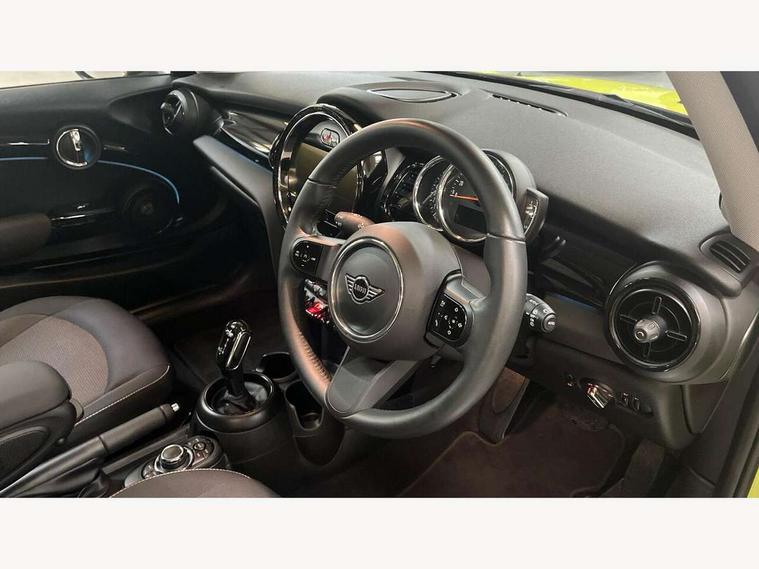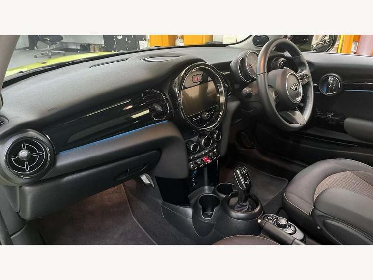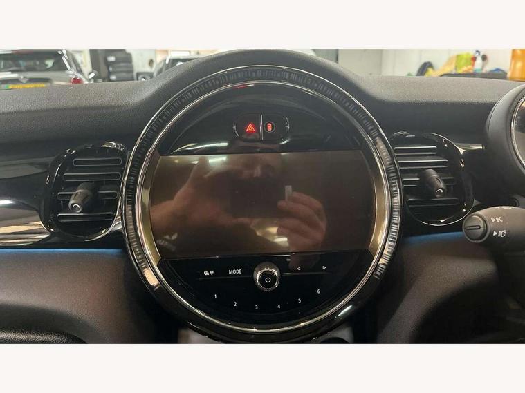 Apple CarPlay, Automatic start/stop function with brake energy recuperation, Compatible mobile phone bluetooth with audio streaming, Cruise control with brake assist, Electro-mechanical speed dependant steering assistance, Flexible car sharing preparation, Instrument cluster, Mini E-call, MINI TeleServices, On board computer, Service interval indicator, Double Vanos system, Fully variable valve control, High precision injection, Performance Control, Steptronic transmission with double clutch, 8.8" touchscreen with LED ring, FM tuner and DAB digital radio, 3rd brake light, Automatic headlight activation switch, Body colour fuel filler cap, Chrome border high gloss black slats radiator grille, Dynamic brake lights, Electric front windows, Exhaust tailpipe on left with chrome finisher, Heated rear window, Heated windscreen washer jets, LED headlight with closed ring and daytime driving lights, Metal door sill strips with MINI imprint, Model logo Cooper on right of tailgate, Rain sensor window wipers, Rear fog lights, Rear LED lights with union jack design, Rear window wiper, Side scuttle panel with integrated indicator, Sun/heat protection glass, White indicator lenses, 12V Accessory socket in centre console, 2 seat bench in 2nd row, 4 lashing eyes in luggage compartment, 60/40 split folding rear seat, Ambient lighting, Carbon black colour line - Knee roll and door armrest, Chrome interior highlights, Cupholders, Front and rear head restraints, Front and rear isofix with front passenger airbag deactivation, Front floor mats in velour, Glove compartment, Height and length steering column adjustment, Interior lighting with 12 different colours across the dashboard, underneath door bezel with illuminated laser-engraved design on central display, Leatherette gearshift lever and handbrake gaiters, LED reading lights, vanity mirror lights, front foot well light and spotlight on front seats, Manual air conditioning, Mechanical seat adjustment - forward/back & backrest for front seats and driver seat height adjust, Multifunction steering wheel, Passenger seat height adjuster, Satellite grey headlining including grab handles and clothes hooks, Single front passenger seat, Sport leather steering wheel with speed limiter and audio/communication controls, Storage compartments in doors, Sunvisors with vanity mirrors, 3 point seatbelts on all four seats, 6 Airbags - front, side, head and seat belt tensioners, Anti-lock braking system (ABS), DSC - Dynamic Stability Control, Front and rear disc brakes, Single tone fanfare horn, Tyre pressure monitoring system, Alarm system with tilt sensor, monitoring doors, bonnet interior and tailgate, Electronic vehicle immobiliser, Start/stop toggle with keyless go, Piano black interior trim, Tool kit, Tyre repair kit,