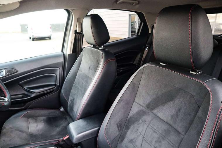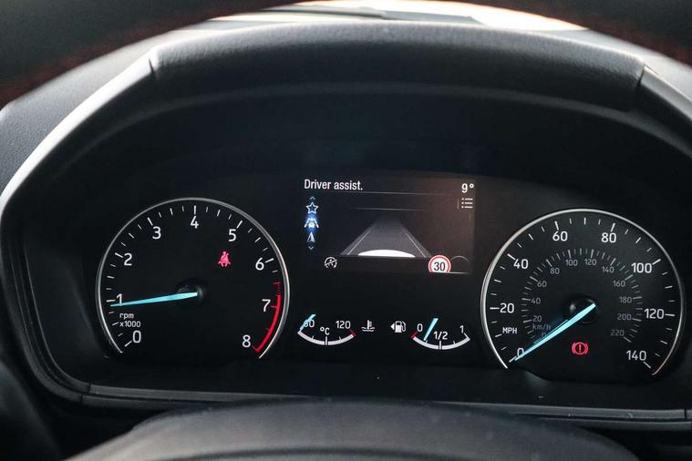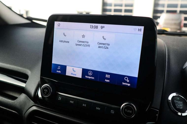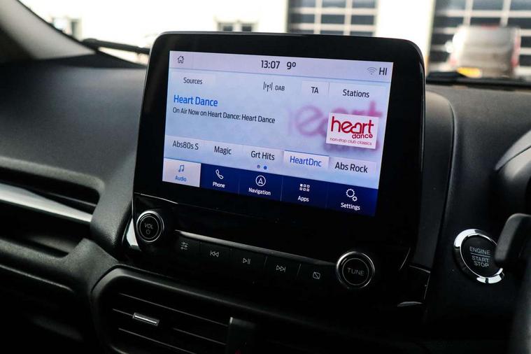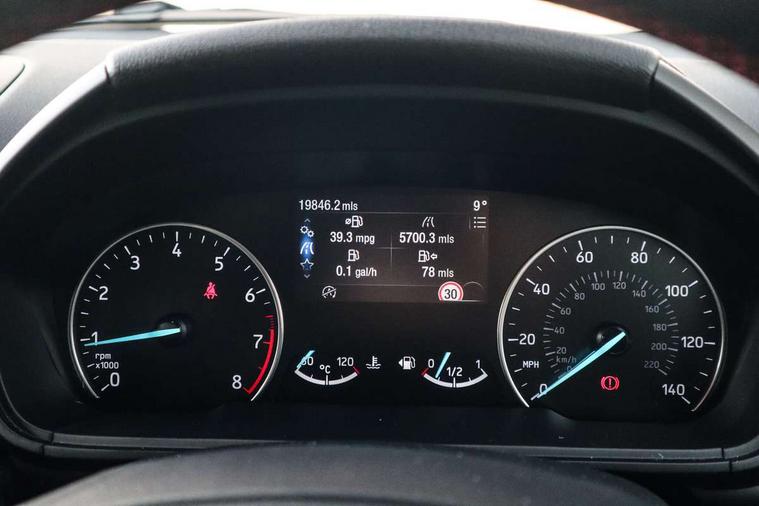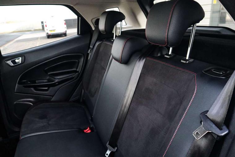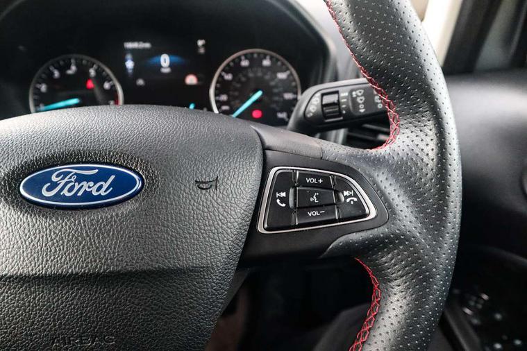 Cruise control with Intelligent speed assist, Easy fuel capless refuelling system, Ford SYNC 3 nav system with DAB radio, 8" screen, emergency assistance, Apple car play/Android auto, 2x USB, 6 speakers, Ford pass connect, PAS, Rear parking sensors and rear view camera, Traffic sign recognition, Trip computer, Sports suspension, Steering wheel mounted audio controls, Auto dimming rear view mirror, Automatic front wipers, Automatic headlights, Black roof rails, Body colour door handles, Body coloured bumpers, Chrome lower window surround, Electrically adjustable and heated door mirrors, Front fog lights, Headlight levelling control, Large rear spoiler, LED day running lights, LED third brake light, Power front and rear windows, Puddle lights, Quickclear' heated windscreen, Rear wiper, ST Line body styling kit - Black headlamp bezel, front and rear sport bumpers, body colour lower door claddings, ST-Line front grille, 12V socket in front and rear, 60/40 split rear seats, Ambient lighting, Centre console with sliding front armrest, Cooled glovebox, Courtesy lights with map reading light, Driver height adjust, Driver seat height/lumbar adjust, Driver's side glovebox, Driver/passenger sunvisors and lidded vanity mirrors, EATC - Electronic Auto Temperature control, Folding grab handles, Front head restraints, Front seat back map pockets, Illuminated glovebox, Illuminated luggage compartment, Isofix system on outer rear seats, Luggage compartment carpet, Neosuede/Partial sensico leather upholstery, Overhead console with sunglasses holder, Rake adjustable rear seats, Reach + rake adjustable steering column, Rear headrests, Sensico trimmed steering wheel, handbrake and gearshift gaiter with red stitching, ST-Line Front floor mats with red stitching, Stainless steel sports pedals, Storage drawers under front seats, Tie down hooks, Variable boot floor, 3x3 point rear seatbelts, ABS, Autonomous emergency braking, Child locks on rear doors, Curtain airbags, Driver airbag, Drivers knee airbag, Electronic Stability Programme with hill launch assist, Front passenger airbag deactivation, Front side airbags, Passenger airbag, Pre collision assist system with AEB, Seatbelt reminder for driver and front passenger, Traction control, Tyre pressure monitoring system, Immobiliser, MyKey system, Remote central locking, Thatcham 1 volume sensing alarm, Low rolling resistance tyres, Tyre inflation kit,