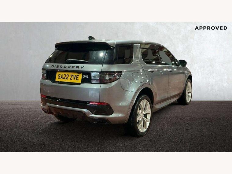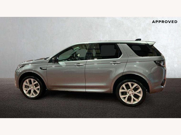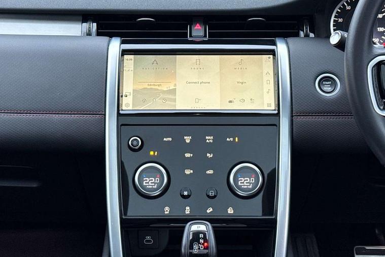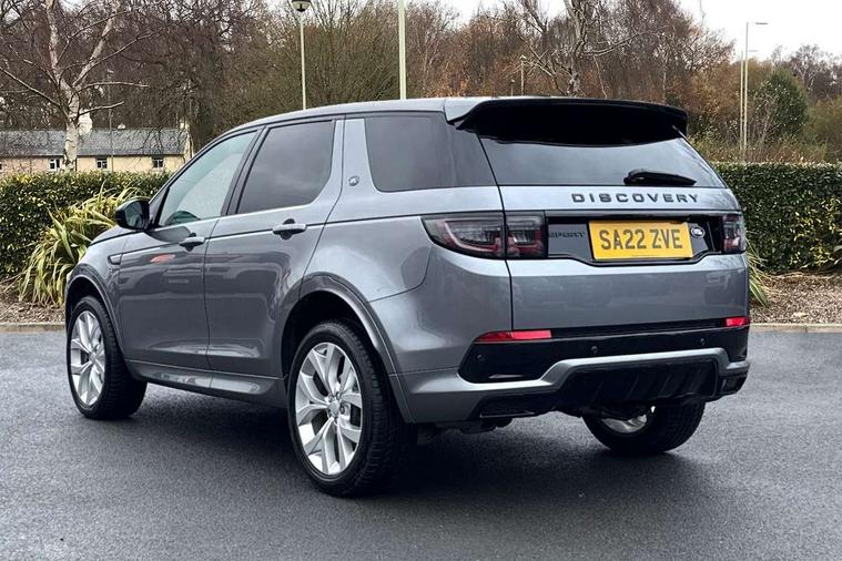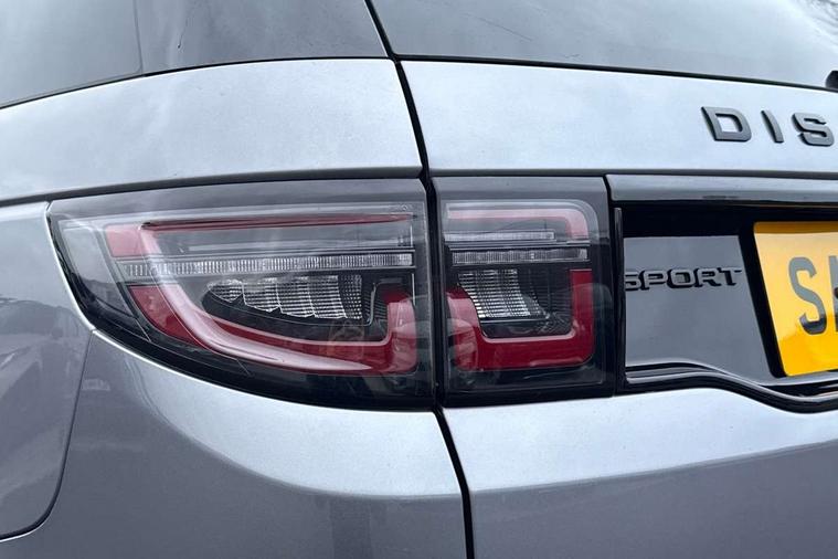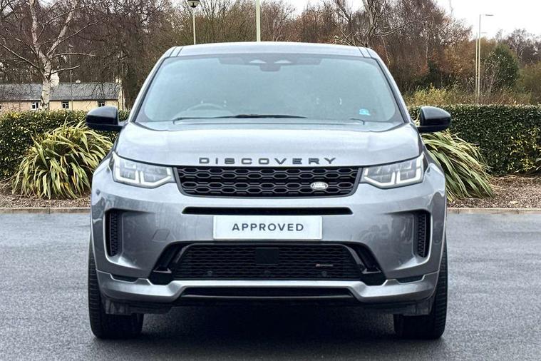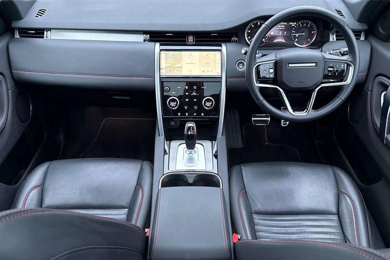 10" touch screen, Adaptive cruise control, Android Auto, Apple CarPlay, Driver condition monitor, eCall emergency call system, Front and rear parking aid, InControl remote premium, Lane keep assist, Locking fuel flap, PAS, Pivi Pro connected navigation system with upgraded Infotainment, Powered tailgate/boot lid, Push button start, Rear collision monitor, Service interval indicator, Traffic sign recognition with adaptive speed limiter, Trip computer, Wade Sensing, All terrain progress control, Coil suspension system, Diesel particulate filter, Dynamic stability control, Terrain Response 2, Bluetooth connectivity including audio streaming, Digital Audio Broadcast radio-DAB, Steering wheel mounted audio controls, 3rd brake light, Automatic headlights, ClearSight interior rear view mirror, Electric front/rear windows, Electric heated/power fold door mirrors with approach lights and auto dimming driver side, Fixed panoramic sunroof with powered sunblind, Front and rear recovery eyes, Heated rear window, Heated windscreen including heated washer jets, No badges, R Dynamic badge, Rain sensing windscreen wipers, Rear fog lights, Rear side wing doors, Rear wing door, Rear wiper, 5 seats, Bright metal pedals, Centre console with armrest, Footwell lights, Front and rear grab handles, Front passenger isofix child seat attachment, Loadspace cover, Loadspace light, Overhead lighting console, Overhead stowage for sunglasses, Rear headrests, Satin chrome gearshift paddles, Sunvisors with illuminated vanity mirrors, Tilt/reach adjustable steering wheel, Black exterior pack - Discovery sport, Online pack with data plan - Discovery, 3 point seatbelts on all seats, ABS, Brake hold function, Child locks on rear doors, Collision mitigation braking system, Cornering brake control (CBC), Driver/Front Passenger airbags, Drivers knee airbag, Electronic brake force distribution, Electronic parking brake, Emergency brake assist, ESP + traction control, Hill descent control, Hill launch assist, Pedestrian airbag system, Rear seat ISOFIX, Roll stability control, Side and curtain airbags for front and 2nd row seats, Trailer stability control, Tyre pressure monitoring system, Battery Back Up System (BBUS) with tilt sensor, Global lock and unlock switch on driver door, Intrusion sensor, Keyless entry, Locking wheel nuts, Centre stack rails in noble chrome,