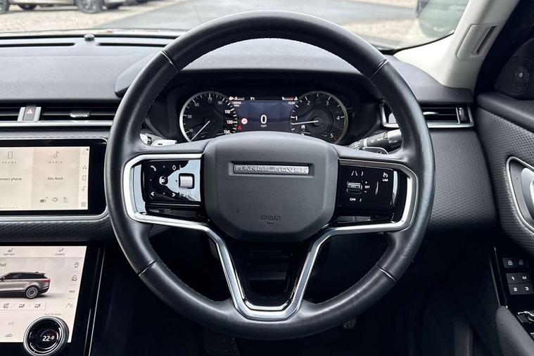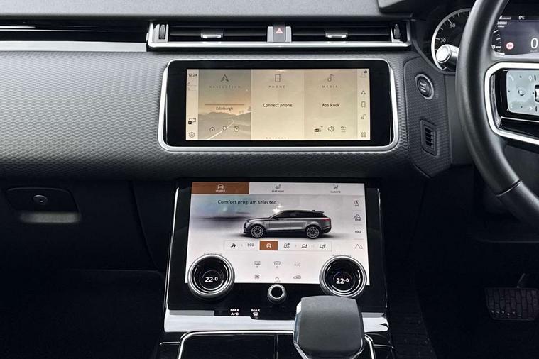 10" deployable touchscreen, Android Auto, Apple car play, Bluetooth connectivity, Brake pad wear indicator warning light, Driver condition monitor, eCall emergency call system, InControl remote, Land Rover InControl apps, Lane keep assist, Pivi pro with connected navigation, Push button start, Service indicator, Speed proportional electronic power assisted steering (EPAS), Traffic sign recognition with adaptive speed limiter, Trip computer, Voice control system, 8 speed automatic transmission, All terrain progress control, Open differential with torque vectoring by braking, Single speed transfer box, Digital Audio Broadcast radio-DAB, Steering wheel mounted controls, Acoustic laminated windscreen, Auto dimming interior rear view mirror, Automatic headlamp levelling, Automatic headlights, Body coloured bumpers, Boot protection plate, Electric heated/power fold door mirrors with approach lights and auto dimming driver side, Electric windows with one touch open/close and anti trap, Flush deployable exterior door handles, Follow me home headlights, Heated rear window with timer, Heated washer jets, Heated windscreen, LED 3rd brake light, Metal front tread plates, Metal load space scuff plates, No badge - Removes engine badge, Rain sensor windscreen wipers, Rear animated directional indicators, Rear fog lights, Rear side wing doors, Rear wash/wipe, Tailgate/boot lid spoiler, Trailer stability assist, Velar badge, 3 seat bench in 2nd row, Ambient lighting, Driver/passenger sunvisors with illuminated vanity mirrors, Isofix system on outer rear seats, Loadspace cover, Overhead lighting console, Overhead stowage for sunglasses, Passive front headrests, Rear air vents, Rear centre headrest, Satin chrome gearshift paddles, Single front passenger seat, Standard interior, Twin front cupholders, Twin sliding front centre armrest, Online pack with data plan - Velar, 355mm front brakes and 325mm rear brakes, 3x3 point rear seatbelts, Anti-lock braking system (ABS), Cornering brake control, Curtain airbags, Customer configurable autolock, Door side intrusion beams, Driver airbag, DSC - Dynamic Stability Control, Electronic brake force distribution, Electronic parking brake, Electronic traction control, Emergency brake assist, Emergency braking, Front and rear seatbelt reminder, Hill descent control, Hill launch assist, Low traction launch, Passenger airbag, Power operated child locks, Rear airbags, Roll stability control, Side airbags, Tyre pressure monitoring system, Unpainted brake calipers, Global lock and unlock switch on driver door, Immobiliser, Intrusion sensor, Keyless entry, Lock only switch on front passenger door, Locking wheel nuts, Perimetric alarm, Remote central locking, Standard IP end caps,
