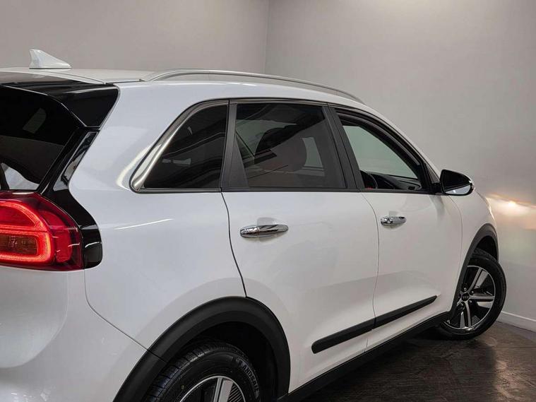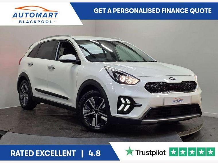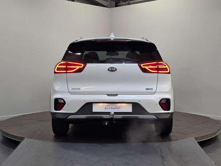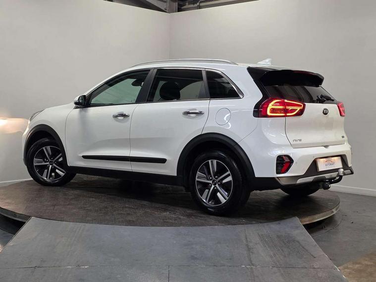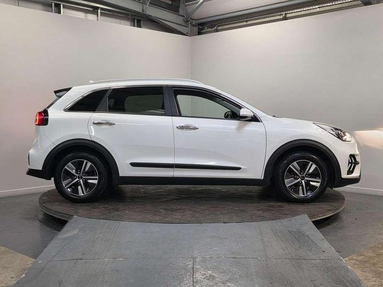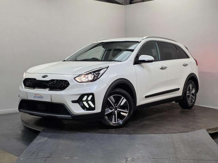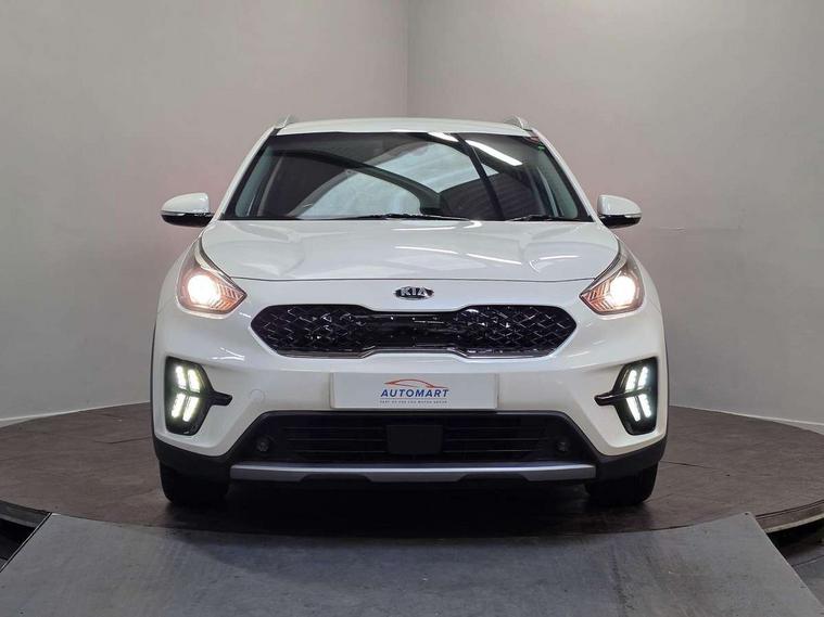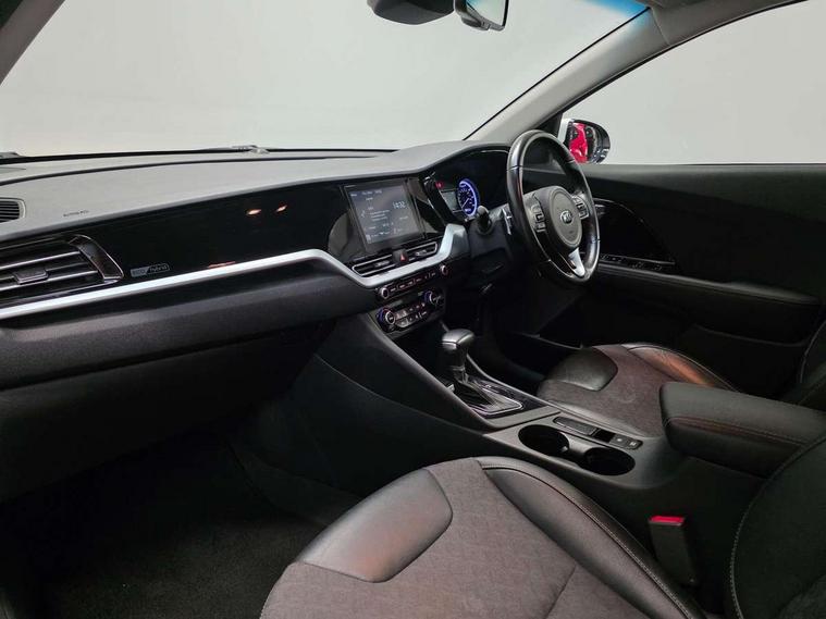8" touch screen, Adaptive smart cruise control function (SCC) with stop and go, Apple car play/Android Auto with voice control, Digital clock, Drive mode selector, Driver attention warning, Emergency stop signalling system, Forward collision avoidance assist, Lane Following Assist (LFA), Lane keep assist, Motor driven power steering, Rear parking sensors, Reversing camera, Speed limiter, Trip computer with distance/fuel consumption/average speed, 'Shark fin' mobile antenna, 4.2" supervision cluster with TFT colour display, 6 speakers, Bluetooth with music streaming, DAB Radio with MP3, Steering wheel mounted controls, USB connection located in centre console, USB port, All round electric windows with drivers auto up/down function, Auto dimming rear view mirror, Automatic defog system, Automatic headlight control system, Black beltline mouldings, Black side sills, Body colour bumpers, Body coloured/high gloss door mirrors, Chrome door handles, Driver's side wide angle mirror, Electrically folding/adjustable/heated door mirrors with LED indicators, Front fog lights, LED daytime running lights, LED rear combination lights, Manual headlight levelling, Matt black radiator grille, Privacy glass - Rear windows and tailgate, Projector headlamps, Rain sensing front wipers, Rear spoiler, Rear wiper, Roof rails, Solar glass, Welcome and follow-me home light functionality, Wheel arch mouldings, 3 x passenger assist grips, 60/40 split/folding 2nd row of seats, All-round height adjustable headrests, Centre console storage box, Centre room lamp, Cloth/leather upholstery, Cupholders in rear armrest, Door armrest in leather, Driver's seat height adjuster, Driver/passenger sunvisors with illuminated vanity mirrors, Dual zone automatic air conditioning, Front and rear door storage, Front/rear centre armrests, Headlining in Light grey, High gloss black lower console trim, High gloss black steering wheel trim, Illuminated ignition key hole, Interior door lock/unlock function, ISOFIX Child seat top tethers and anchor fixings, Leather trimmed gearshift, Leather trimmed steering wheel, Luggage area lamp, Luggage compartment cover, Luggage net with hooks, Overhead console lamp with sunglasses case, Passenger seat height adjuster, Satin finish inner door handles, Seatback pocket - front passenger, Steering wheel mounted paddle shift, Tilt/telescopic adjustable steering wheel, Under floor storage box, Ventiliation ducts to rear compartment, Towing pack - Niro, 3 point seatbelts on all seats, ABS, Automatic unlocking of doors in case of impact, Drivers knee airbag, Electric parking brake with auto hold function, Electronic stability control, Front passenger airbag cut-off switch, Height adjustable front seatbelts, Hill start assist control (HAC), Traction control, Twin curtain airbags with roll over sensor, Twin front and side airbags, Tyre pressure monitoring system, Alarm system and engine immobiliser, Deadlocks, Locking wheel nuts, Remote central door locking with fold away key, Speed sensitive auto door locking, Visible vehicle identification number, High gloss black centre fascia, High gloss black door inserts, 16" alloy wheels, Tyre mobility kit,