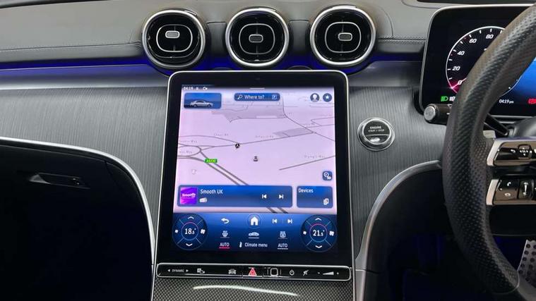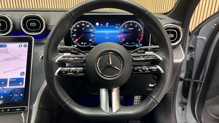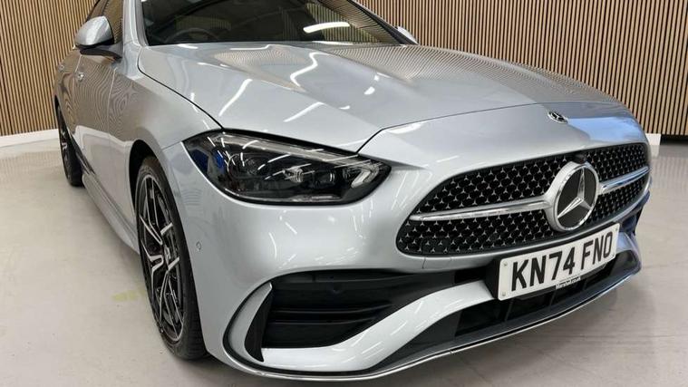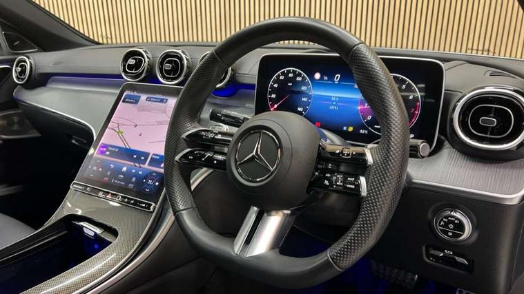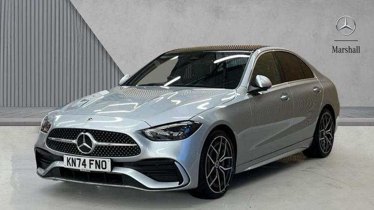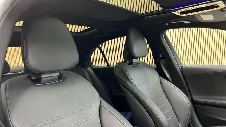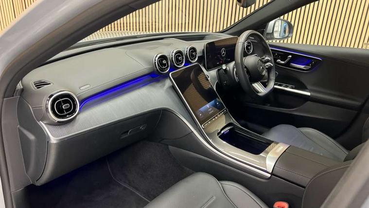 11.9" high resolution multimedia colour display, 12.3" digital instrument cluster display, Active parking assist with PARKTRONIC, Attention assist, DYNAMIC SELECT with a choice of driving modes (Comfort, ECO, Sport, Sport+, Individual), E-call, Extended MBUX functions, Finger print sensor, Fluorescent jacket for driver, Hard disc navigation, Head up Display, MBUX navigation premium, Mercedes me remote services, Outside temperature gauge, Service indicator (ASSYST), Smartphone integration, Sports direct steer speed sensitive steering, Status display for rear seat belts in instrument cluster, Traffic sign assist, Wireless charging system for mobile devices, 9G TRONIC 9 speed automatic transmission, Petrol Particulate Filter, Sport suspension, Burmester 3D surround sound system, DAB Digital radio, MBUX multimedia system, Adaptive brake lights, Adaptive high beam assist plus, AMG body styling front apron, rear apron and side skirts, AMG Line exterior, Body coloured bumpers, Body coloured door mirrors, Digital light LED headlamps, Electric panoramic glass sunroof, Electric windows with one touch opening/closing and obstruction sensors, Electrically adjustable and heated door mirrors, Heat insulating dark tinted glass, LED daytime running lights, LED Indicators, LED tail lights, LED third brake light, Noise acoustic glass, Radiator diamond grille with integrated Mercedes Benz star and louvre silver with chrome pins, Rain sensor with automatic windscreen wiper activation, Rear boot, Rear side wing doors, Two visible exhaust pipes integrated into rear bumper, 3 seat bench in 2nd row, 40:20:40 split folding rear bench seat, Ambient lighting premium, Ambient lighting with projection of brand logo, AMG floor mats, AMG line interior, Artico man-made leather upholstery, Auto Mercedes-Benz child seat recognition sensor, Black roof liner, Boot lid convenience closing feature, Comfort seats, Double cupholder in centre console, Electrically height/reach adjustable steering column, Folding rear seat backrest, Front and rear head restraints, Gearshift paddles on steering wheel, Illuminated door sills with Mercedes Benz lettering, Illuminated glove compartment stowage, Multifunction sports steering wheel in nappa leather, Rear top tether child seat ISOFIX attachment, Single front passenger seat, Sunvisors with illuminated vanity mirrors, THERMATIC 2 zone automatic climate control, AIR BALANCE Package - C Class, Energizing package plus - C Class, Interior light package - C Class, Keyless go comfort package - C Class, Memory package - C Class, Mirror package - C Class, Parking package with 360 degree camera - C Class, Stowage space pack - C Class, USB package plus - C Class, 3 rear 3 point seatbelts, Active bonnet pedestrian safety measure which detects an impact and raises bonnet, Adaptive brake system with HOLD function and brake drying in the wet, Anti-lock braking system (ABS), Black seat belts, Brake calipers with Mercedes-Benz lettering + perforated front brake discs, Child proof door locks, Drivers knee airbag, Drivers pelvis airbag, Dual stage driver/passenger airbags, Electric parking brake, Electronic Stability Programme (ESP), Front centre airbag between driver and front passenger seats, Front side airbags, Tyre pressure monitoring system, Warning triangle and first aid kit, Window airbags for driver, front passenger and rear passenger, Antitheft alarm system, Interior monitoring system and Increased antitheft protection, Central locking with interior switch, automatic locking and crash sensor with emergency opening function, Chrome surround in electric key, Urban guard vehicle protection plus, Black open pore aluminium lines wood trim with centre console in metal structure finish, Dashboard, instrument panel and beltlines in ARTICO man made leather in nappa look, 19" AMG multi spoke light alloy wheels painted black with high sheen finish, TIREFIT with tyre inflation compressor,