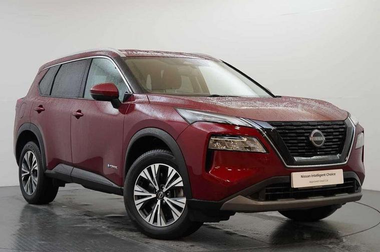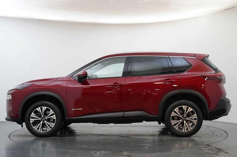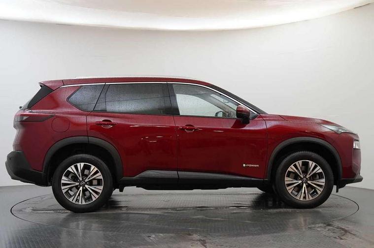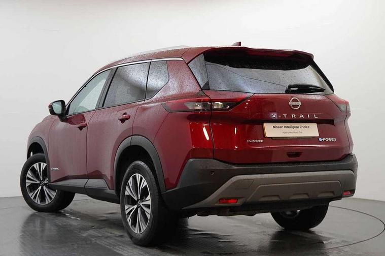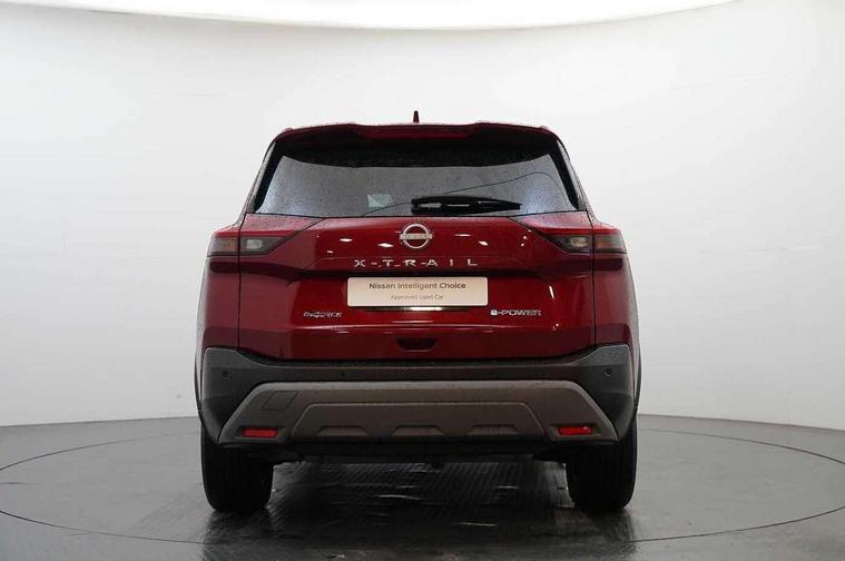 Android auto/Apple CarPlay (Wired), Blind spot warning, Drive modes (sport, normal, eco, snow, off-road), e-Pedal step, Electric speed sensitive power steering, Emergency and breakdown call, Front and rear parking sensors, Full Digital 12.3" TFT Digital Combimeter, Google maps services - search, weather, 3D maps and Google street view, Idle stop/start system, Intelligent around view monitor, Intelligent Cruise control (ICC), Intelligent driver alert system, Intelligent forward collision warning, Intelligent lane departure warning, Intelligent lane intervention, Intelligent lane keep assist, Maximum speed limiter, Moving object detection, Nissan connect 12.3 inch touchscreen infotainment system, Nissan connect nav with TomTom traffic, Push button starter, Rear cross traffic alert, Rear view camera, Remote control services - door locks, lights, horn and car locator, Telematics - notifications and connectivity services, TomTom live traffic services, Traffic sign recognition with legal speed adjustment, Trip computer, Virtual personal assistant and firmware over the air capability, Wireless apple carplay, 6 speakers, AM/FM audio system with DAB, Bluetooth audio streaming, Front USB connections (Type-A and Type-C), Rear USB charging only ports (Type-A and Type-C), 3rd brake light, Auto dimming rear view mirror, Auto rear wiper when reversing, Body colour mirror caps, Body coloured door handles, Bodyside mouldings, Chrome side window finisher, e-4ORCE badging, e-POWER badging, Electric auto folding door mirrors, Electrically adjustable and heated door mirrors, Follow me home headlights, Headlights auto levelling system, High beam assist, Intelligent auto headlights, LED daytime running lights, LED Headlights, LED rear lights, One touch front and rear electric windows with remote opening and closing, Partially body coloured bumpers, Rain sensing wipers, Rear privacy glass, Rear reversing light (bulb lighting), Rear roof spoiler, Rear side wing doors, Rear styling plate, Shark fin antenna, Splash free wipers, Super UV and infrared cut glass, Three blink turn signal, 12v power socket in dashboard and luggage, 3 bench rear seats in 2nd row, 3 rear headrests, 60/40 split folding rear seat bench, Butteryfly console, Chrome interior door handles, Cloth monoform upholstery, Driver and front passenger sunvisors with illuminated vanity mirrors, Driver seat back pocket, Dual zone automatic climate control with pollen filter, Front centre console and armrest, Front cupholders, Front door with bottle holders, Height adjustable driver's seat, Height adjustable front headrests, Height adjustable passenger seat, Leather shift knob, Leather steering wheel, Luggage board system, Luggage space lighting, Multifunction steering wheel, Passenger seat back pocket, Rear armrest with 2 cupholders, Rear door bottle holders, Single front passenger seat, Tilt/telescopic adjustable steering wheel, Two rear isofix child seat anchorage points with top tether, 3x3 point rear seatbelt pretensioners + load limiters, ABS with EBD and brake assist, Active brake limited slip, Auto hold function, Child locks on rear doors, Curtain and front side, far side airbags, Driver and passenger airbags, Driver, passenger and 2nd row rear seat belt reminder, Electronic parking brake, Front seatbelt pretensioners + load limiters, Height adjustable front seatbelts, Hill start assist, Intelligent blind spot intervention, Intelligent front emergency braking with pedestrian, cyclist recognition and junction assist, Intelligent rear automatic braking, Tyre pressure monitoring system, Vehicle dynamic control, Engine immobiliser, Intelligent Key, Remote central door locking with deadlocking, Thatcham Cat.1 alarm, 18" Diamond cut alloy wheels, Tyre puncture repair kit,