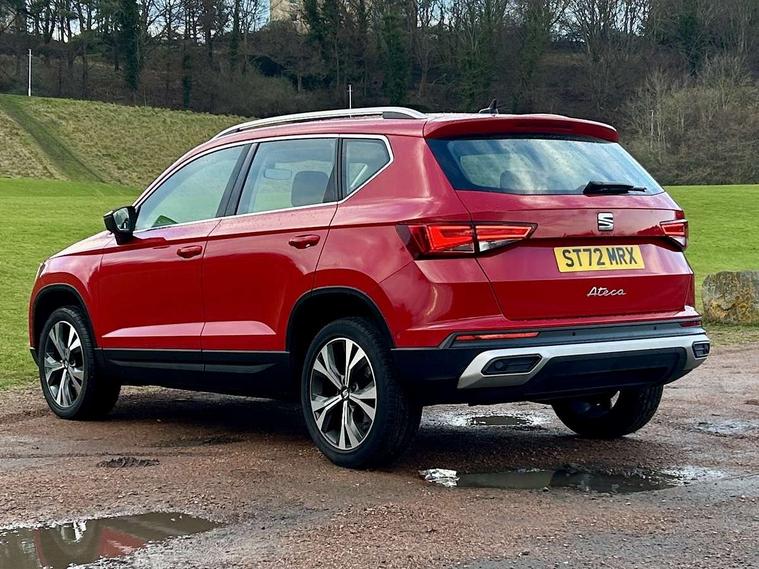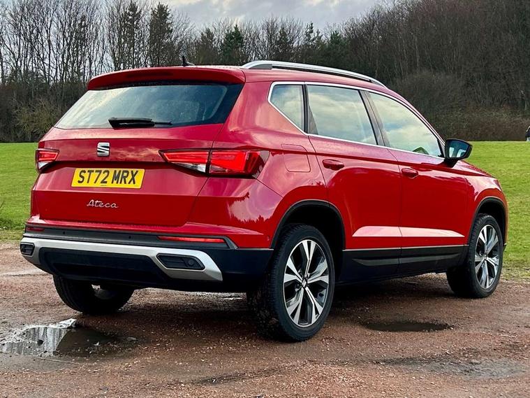 8" Digital cockpit, Colour multi-function on board computer display, Cruise control system with speed limiter, E-call, Outside temperature gauge, PAS, Self parking functionality (includes front and rear parking sensors), Start/stop system, Tailgate, Trip computer, Wireless full link smartphone integration, Wireless phone charger, Steering wheel mounted audio/phone controls, Black wheel arch surrounds, Body colour bumpers, Chrome front grille frame, Chrome roof rails, Chrome side window trim, Daytime running lights, Door mirrors with welcome light silhouette, Dynamic headlight range control with self adjusting whilst driving, Electric adjustable/heated/folding door mirrors, Front and rear electric windows, Full LED headlamps with lens and LED front fog lamps with cornering function, LED rear tail lights with dynamic indicators, Rear fog lights, Rear side wing doors, Rear wash/wipe, Simulated exhaust pipes, Third brake light, Variable front intermittent wipers, 12V socket in front, 3 seat bench in 2nd row, 60/40 split folding rear seat, Cloth upholstery with front comfort seats, Drawer under right front seat, Dual zone climate control, Front and rear head restraints, Front centre armrest, Front seat back storage pockets, Height adjustable driver and passenger seat with lumbar adjustment, ISOFIX points in outer rear seats with top tether anchorage points, Leather steering wheel and gear knob, Rear armrest and easy back seat release mechanism from boot, Single front passenger seat, Interior lighting pack - Ateca, Navigation system pack with DAB - Ateca, 3x3 point rear seatbelts, ABS, Traction control system (TCS), Electronic stability control (ESC) and Electronic differential lock system (XDS), Airbags - Driver and front passenger airbag with deactivation, front side, two curtain and driver's knee airbags, Electric parking brake with auto hold function, Front and rear seatbelt reminder, Front assist with autonomous emergency braking, Hill hold control, Manual rear child locks, Single tone horn, Tiredness recognition system, Traction control, Tyre pressure monitoring system, Alarm, Keyless entry, Locking wheel bolts, Remote central locking, Chrome interior detailing, 18" Performance machined alloy wheels 36/2 in nuclear grey,