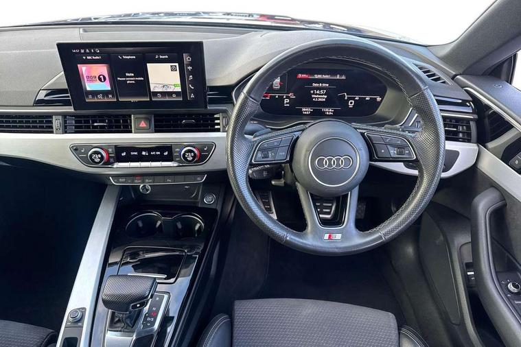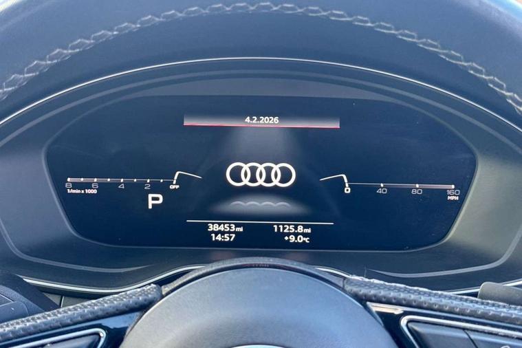 Audi connect safety and service (e-call), Audi connect with Amazon Alexa Integration, Audi drive select (Auto, Comfort, Dynamic and Individual), Audi parking system plus with front and rear sensors, Audi smartphone interface, Audi virtual cockpit - 12.3" full colour digital instrument cluster, vehicle/engine speed, Radio/media information+Driver assistance systems, Automatic start-stop system with coasting functionality and efficiency programme, Bluetooth interface, Electro-mechanical power steering, Email, calendar and text messages displayed via MMI, MMI nav+ with MMI touch - 10.1" high resolution MMI display, touch sensitive, 3D map, route/country info, dynamic route guide, personal route assist, Power operated tailgate, Rear view camera, Service interval indicator, Voice control system, Sports suspension lowered by 23mm, 8 passive loudspeakers, CD player, DAB digital radio reception, Two additional USB ports for rear passenger in rear centre console, Two SDXC card slots, Audi matrix LED headlights with LED rear lights + dynamic front and rear indicators, Auto dimming door mirrors, Auto dimming rear view mirror, Body colour bumpers, Body colour door handles, Body colour front spoiler lip, Body colour side sill trim, Body coloured door mirrors, Electric adjustable heated door mirrors, Electric folding door mirrors, Electric front windows, Front fog lights, Honeycomb structure radiator grille in grained matt black, Kerb-view function for passenger side, LED daytime running lights, LED side indicator lights integrated into door mirrors, LED third brake light, Matt aluminium silver tailpipe trim, Privacy glass, Rain and light sensors, Rear side wing doors, S line badges on front wings, S line front and rear bumpers with side skirts, S Line rear diffuser in matt titanium black with trim strip in matt aluminium silver, Side air inlets in grained matt black with matt aluminium silver inlay, Variable front intermittent wipers, Windscreen with acoustic glazing, 3 seat bench in 2nd row, 4 way electric lumbar support for driver and front passenger, 40/20/40 split folding 3 seater rear bench seat, Adjustable steering column, Black cloth headlining, Black perforated leather gearknob, Contrast stitching on seats, steering wheel and gear lever gaiter, Deluxe 3 zone electronic climate control, Front centre armrest, Front head restraints, Front/rear floor mats, Heated front seats, Illuminated door sill trim with S logo, ISOFIX child seat mounting and top tether, Luggage compartment mat, Manual seat adjustment, Rear centre armrest, Rear headrests, Single front passenger seat, Stainless steel pedals, Sunvisors with vanity mirrors, LED interior light pack - A5/RS5, 3x3 point rear seatbelts, 6 airbags - Driver, front passenger, curtain and side airbags, Electromechanical parking brake, Electronic Stabilisation Control (ESC) including ABS, ASR and EDL, Front passenger airbag deactivation, Height adjustable front seatbelts, Hill hold assist, Manual child lock in rear doors, Multi collision brake assist, Pop-up bonnet for pedestrian protection, Pre sense city, Seatbelt monitoring, Tyre pressure warning, Variable restraint system, Warning triangle and first aid kit, Anti theft alarm system, Anti theft wheel bolts, Immobiliser, Keyless Go, Remote central locking, Matt brushed aluminium inlays, Tool kit, Tyre repair kit,