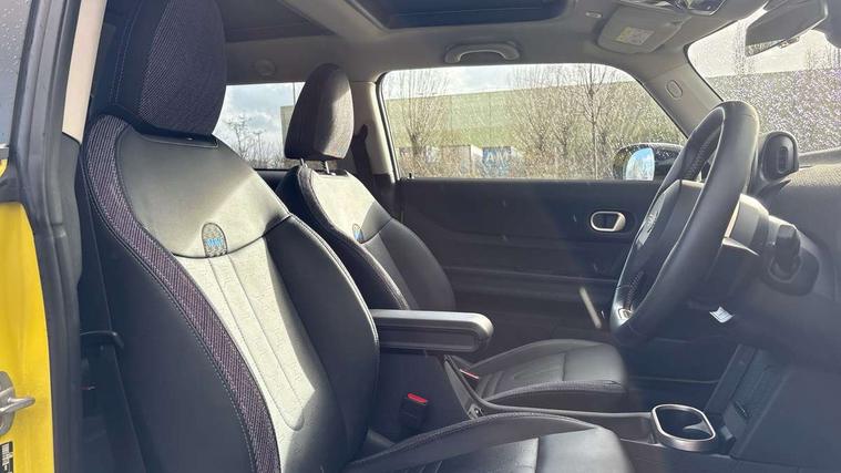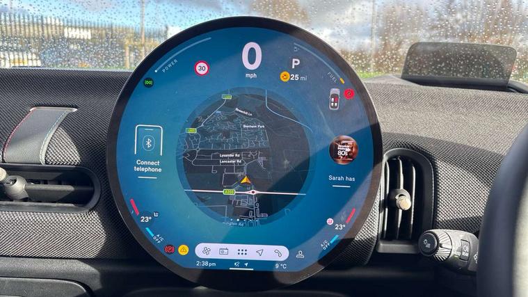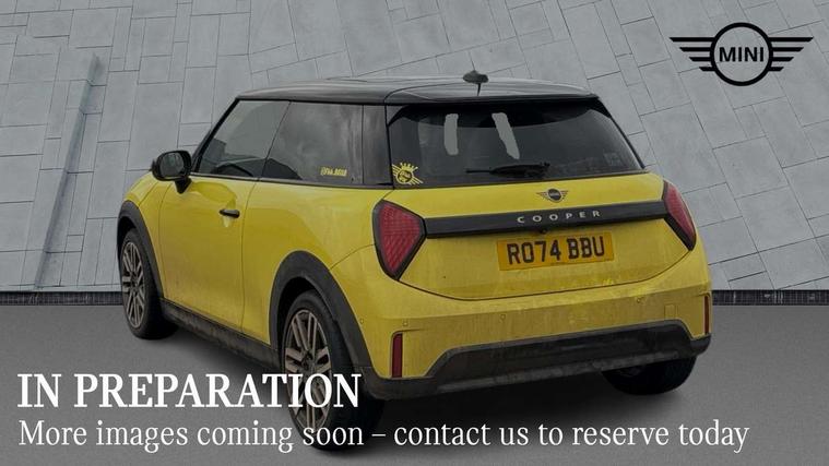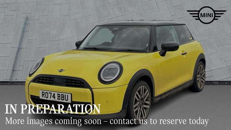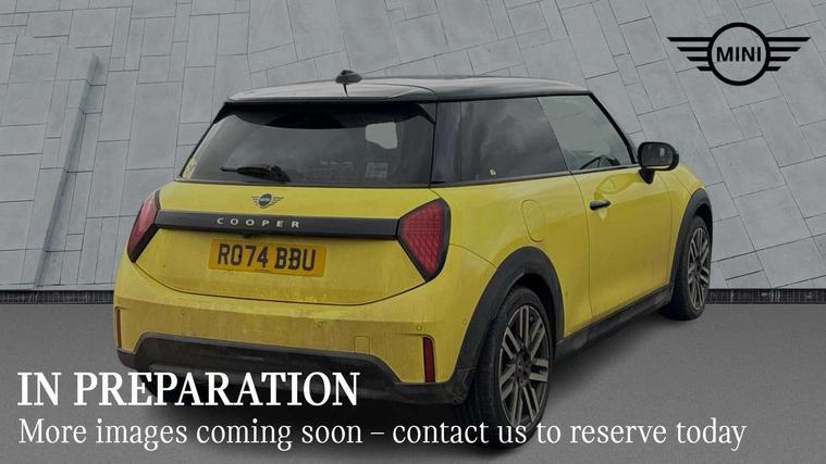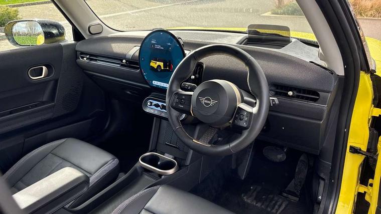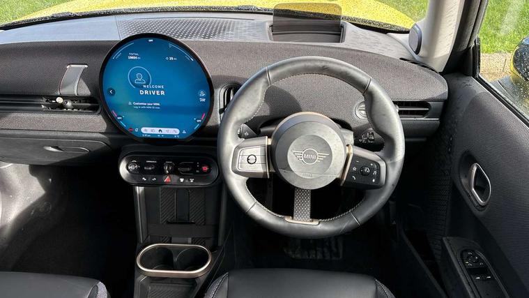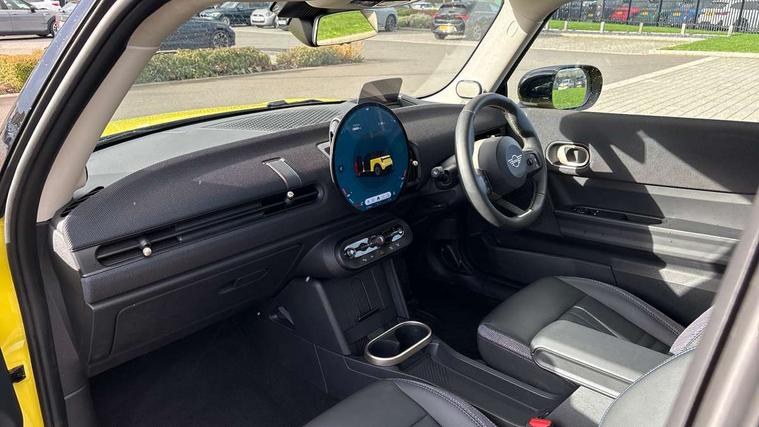 Central toggle bar, Circular OLED Screen, Compatible mobile phone bluetooth with audio streaming, Cruise control, Digital instrument cluster, Electro-mechanical speed dependant steering assistance, Emergency call service, MINI Experience Modes, Mini navigation system, On board computer, Service interval indicator, 7 speed steptronic transmission with double clutch, DAB Digital radio, Personal eSim, Auto headlights, Black grille surround, Electric folding door mirrors, Electric front windows, Heated rear window, Heated windscreen washer jets, LED daytime running lights, LED Headlights, LED indicator lights, LED rear lights, Rain sensor window wipers, Rear fog lights, Rear window wiper, Third brake light, 2 seat bench in second row, 2 zone automatic air conditioning, 60/40 rear seat bench, Ambient lighting, Cupholders, Floor mats, Front and rear head restraints, Front compact armrest, Heated steering wheel, Height adjustable passenger seat, Light headliner, Luggage compartment lighting, Single front passenger seat, Sport Vescin Steering Wheel, Sunvisors with vanity mirrors, Vescin/Cloth upholstery, Driving assistant pack - Cooper Hatchback, Park assistant pack - Cooper Hatchback, 3 point seatbelts on all four seats, 6 Airbags - front, side, head and seat belt tensioners, Acoustic pedestrian protection, Anti-lock braking system (ABS), DSC - Dynamic Stability Control, Electronic parking brake, Front and rear disc brakes, Front ISOFIX (iSize), Front passenger airbag deactivation, Traction control, Tyre pressure monitoring system, Alarm, Immobiliser, Remote central locking, Black/Blue dashboard knit, Tyre repair kit,