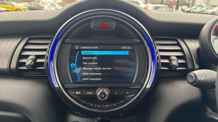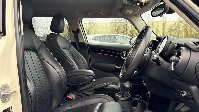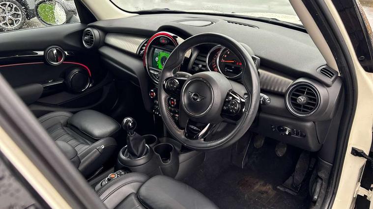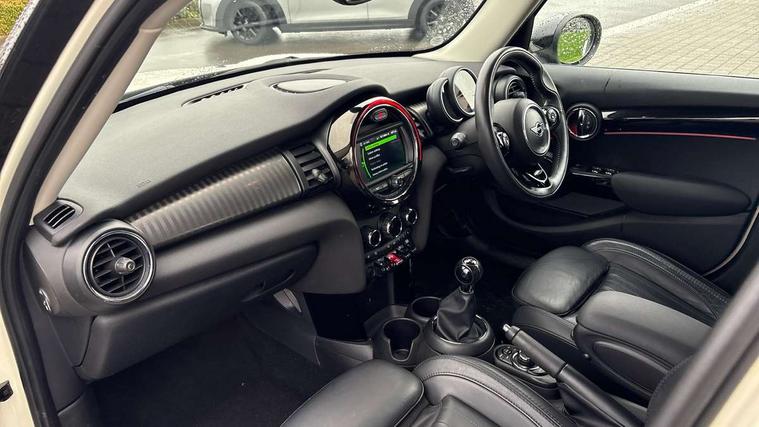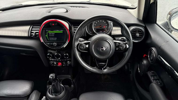 Compatible mobile phone bluetooth with audio streaming, Instrument cluster, Mini E-call, MINI TeleServices, On board computer, Service interval indicator, Performance Control, 6.5" touchscreen with LED ring, FM tuner and DAB digital radio, Automatic headlight activation switch, Bonnet scoop, Chrome border honeycomb structure radiator grille with S badge, Chrome plated fuel cap, Dynamic brake lights, Electric front+rear windows, Heated rear window, Heated windscreen washer jets, LED headlight with closed ring and daytime driving lights, Metal door sill strips with Cooper S imprint, Model logo Cooper S on right of tailgate, Rain sensor window wipers, Rear fog lights, Rear LED lights with union jack design, Rear window wiper, Side scuttle panel with integrated indicator, Sun/heat protection glass, Two central exhaust tailpipes with chrome finisher, White indicator lenses, 12V Accessory socket in centre console, 4 lashing eyes in luggage compartment, 60/40 split folding rear seat, Chrome interior highlights, Cupholders, Front and rear isofix with front passenger airbag deactivation, Glove compartment, Height and length steering column adjustment, Interior lighting with 12 basic colours selectable via toggle switch in roof, Leather gearshift lever and handbrake gaiters, LED reading lights, vanity mirror lights, front foot well light and spotlight on front seats, Manual air conditioning, Mechanical seat adjustment, driver seat height adjust, forward/back and front seats backrest, Mini logo projection on floor from drivers exterior mirror, MINI Yours leather steering wheel with silver contrasting stitching with MINI Yours badge, Multifunction steering wheel, Storage compartments in doors, Storage pocket on back of front seats, Sunvisors with vanity mirrors, Tool kit, 3 point seatbelts on all five seats, 6 Airbags - front, side, head and seat belt tensioners, Anti-lock braking system (ABS), DSC - Dynamic Stability Control, Front and rear disc brakes, Hill start assist, Two tone horn, Tyre pressure monitoring system, Alarm system with tilt sensor, monitoring doors, bonnet interior and tailgate, Electronic vehicle immobiliser, Start/stop toggle with keyless go, Chrome line interior,