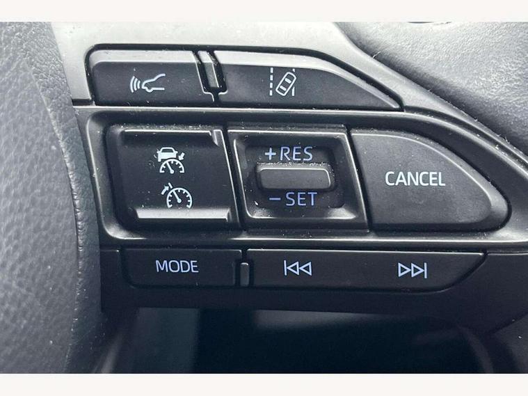 4.2" multi information display, 8" Toyota touch 2 multimedia system with Smartphone integration with Apple CarPlay and Android auto, Adjustable speed limiter, Bluetooth connectivity, Digital speedometer, Driver attention alert system, eCall emergency system, Electric power steering, Full range intelligent adaptive cruise control, Hybrid system indicator, Key reminder warning, Lane trace assist, Multimedia, audio, telephone and voice recognition switches on steering wheel, My T Connected services, Pre-collision system enhanced with emergency steering assist, Reversing camera, Road sign assist - RSA, Steering assisted vehicle stability control, 6 speakers, DAB Digital radio, USB connection, 3rd brake light, Acoustic windscreen glass, Anti-jam protection on power windows, Auto high beam [AHB] with on/off switch, Automatic headlights, Black lower front grille, Black Shark-fin antenna, Black upper front grille, Black wheel arch mouldings, Body colour door handles, Body colour front bumper, Body colour rear bumper, Electric adjustable heated door mirrors, Follow me home headlights, Front and rear electric windows with auto up/down function, Front intermittent wipers, Halogen projector headlights, Headlight cut off reminder, Indicators integrated on door mirrors, Intermittent rear wiper, LED daytime running lights, LED Indicators, Manual headlight levelling, Manually retractable door mirrors, Noise reduction layer on windscreen, Rain sensor, Rear side wing doors, Rear spoiler, Rear window defogger, 12v power outlet - front, 2x Rear coat hooks, 3 seat bench in 2nd row, 3 spoke leather steering wheel, 60/40 split folding rear seat, Adjustable speed limiter switch on steering wheel, Auto air conditioning, Boot light, Central armrest, Driver and front passenger personal lights, Fabric door trim, Fabric upholstery, Front console box, Front cup holders, Front head restraints, Glovebox, Grey roof lining, Height adjustable driver's seat, Height adjustable front passenger seat, ISOFIX child restraint system, Lane departure alert switch on steering control, Leather gearshift, Manual telescopic and tilting steering wheel, Mirror on driver and passenger sun visor, Pollen air filter, Rear head restraints, Single front passenger seat, Soft tonneau cover, 3x3 point rear seat belts, ABS+EBD+Brake assist, Driver and passenger central airbags, Driver and passenger front airbags, Driver and passenger side airbags, Electronic parking brake, Emergency brake light system (EBS), Front seat belt reminder, Hill start assist control (HAC), Passenger airbag on/off switch, Pre-collision system with pedestrian and cyclist detection, Rear door child safety locks, Rear passenger side airbags, Rear seat belt reminder, Traction control, Tyre pressure warning system, Immobiliser, Intrusion alarm, Keyless smart entry with push button start, Power door locks, Power passenger window lock, Remote door lock, 16" 10 spoke alloy wheels, Tyre repair kit,