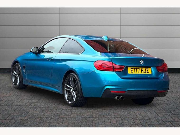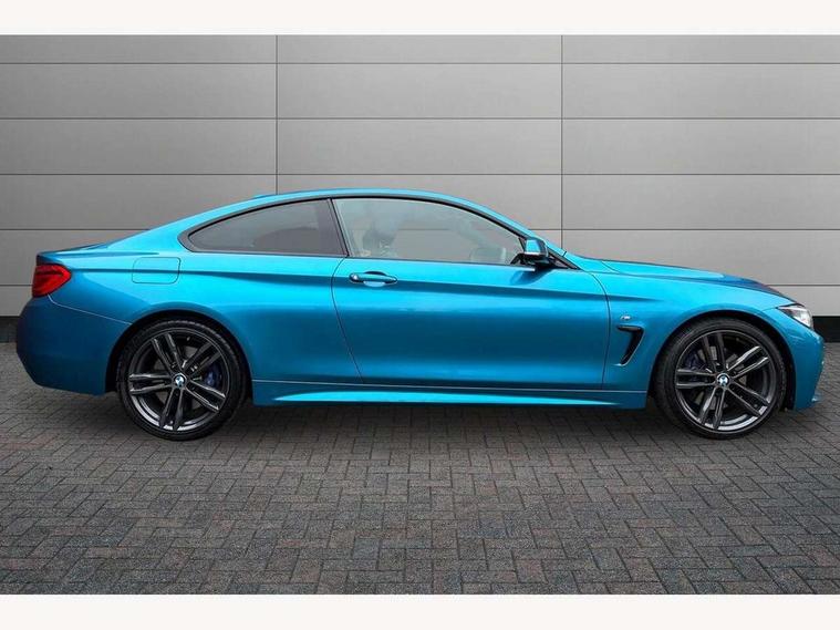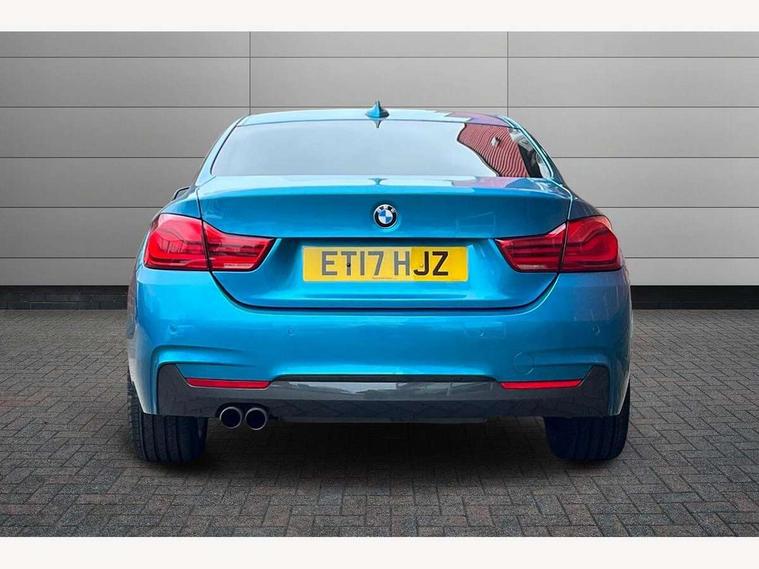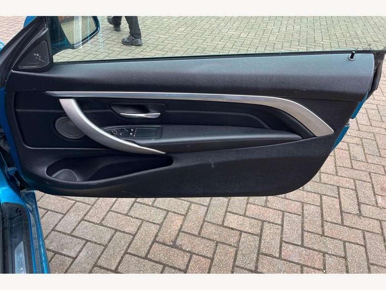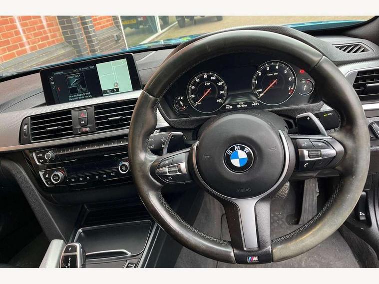 BMW Online services, BMW Teleservices, Brake pad wear indicator warning light, Check control system, Door/boot open warning, Front/rear Parking distance control, Lights on warning, Oil temperature gauge, On board computer, Outside temperature display, Run flat indicator, Service interval indicator, Stop/start button, Drive Performance Control, Sports function on gearbox with steering wheel mounted gearshift paddles, Bluetooth audio streaming, BMW professional radio/CD/MP3, DAB Digital radio, 2 speed adjustable intermittent wipers with wash/wipe function, Auto dimming rear view mirror, Body colour bumpers, Body colour door handles, Body colour door mirrors, Body colour roof mouldings, Chrome kidney grille with black vertical slats, Door sill finishers, Dual chrome exhaust, Electric adjustable heated door mirrors, Electric front windows/one touch facility, Follow me home headlights, Heat insulating tinted glass, Heated windscreen washer jets, High gloss shadow line, LED daytime running lights, LED front fog lights, M aerodynamic bodystyling, Rain sensor including auto headlights activation, Windscreen with grey shadeband, 12V sockets in front centre console and passenger footwell, 3 spoke leather M sport multifunction sports steering wheel, 4 grab handles, Anthracite headlining, Anthracite Velour floor mats, Dual zone climate control, Folding front centre armrest with storage compartment, Folding storage compartment with glasses holder + coin tray, Front cupholders x 2, Front door storage with bottle holder, Front head restraints, Front sports seats with electric side bolster adjustment, Front/rear armrests within door panels, Glovebox with lid, Heated front seats, Integrated rear head restraints, ISOFIX child seat preparation+airbag deactivation, Lashing eyelets in boot, Leather gearknob, Leather handbrake grip, Reach + rake adjustable steering column, Rear centre armrest with 2 cupholders, Storage compartment in rear centre console, Toolkit located in luggage compartment, Extended lights package - 4 Series, 3 point seatbelts on all seats, ABS/EBD, Automatic Stability Control (ASC), BMW emergency call, Cornering brake control (CBC), Crash Sensor - activates hazard/interior lighting + unlocks doors, Driver seatbelt warning indicator, Driver/Front Passenger airbags, DSC+, Dynamic brake control, Dynamic Traction Control - DTC, Front seatbelt force limiters, Front seatbelt pretensioner, Front side airbags, Hill start assist, ITS head airbags for front/rear, Tyre pressure monitor, Warning triangle and first aid kit, Drive away door locking, Electronic immobiliser, Remote central locking, Remote control Thatcham category 1 alarm, Run flat tyres,