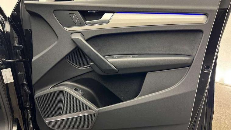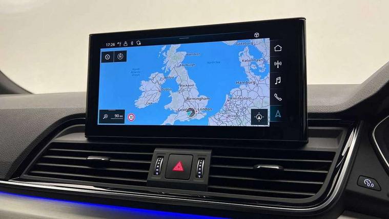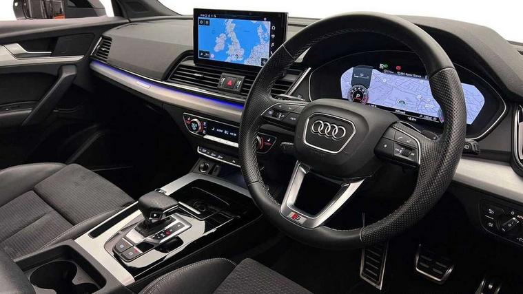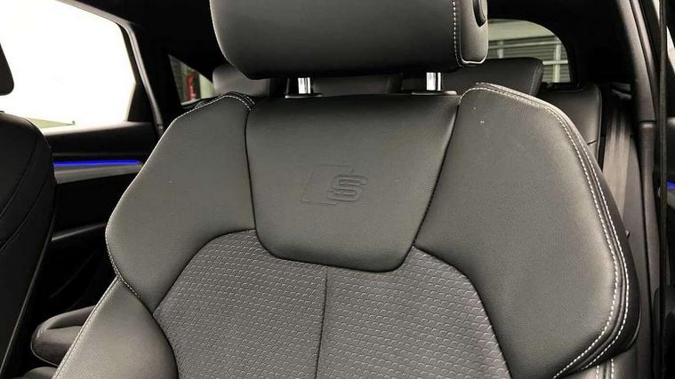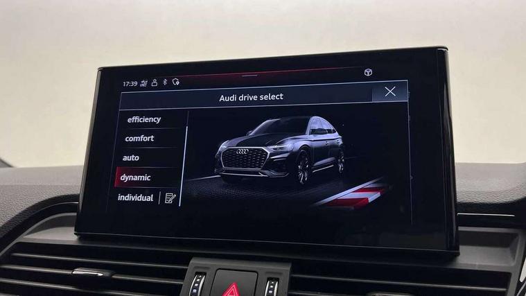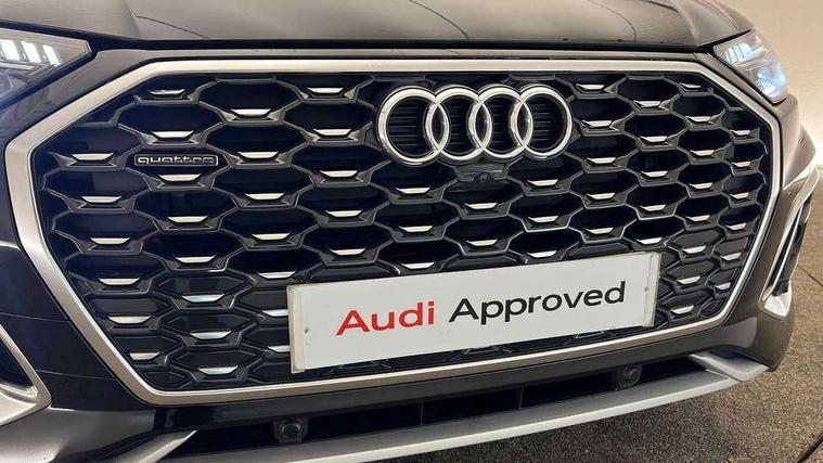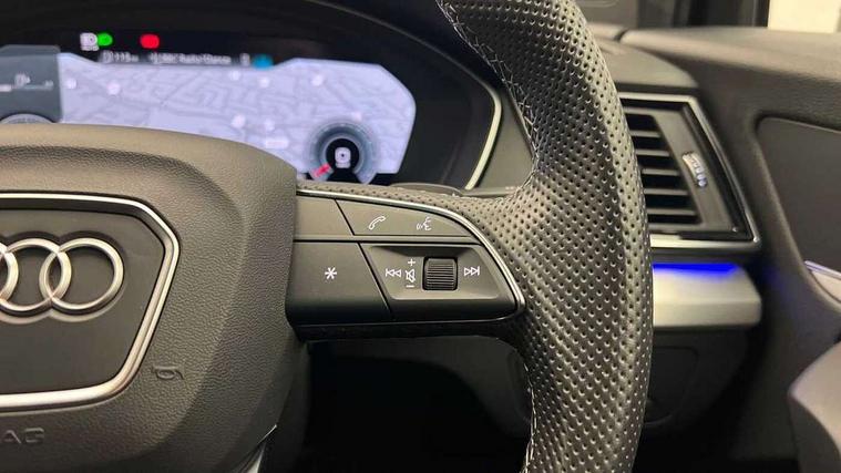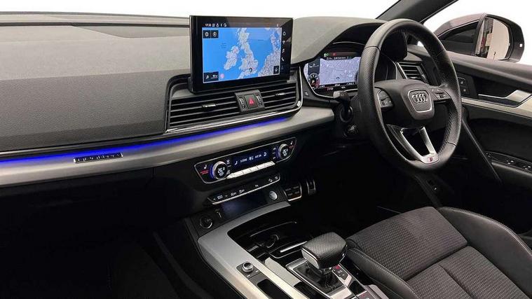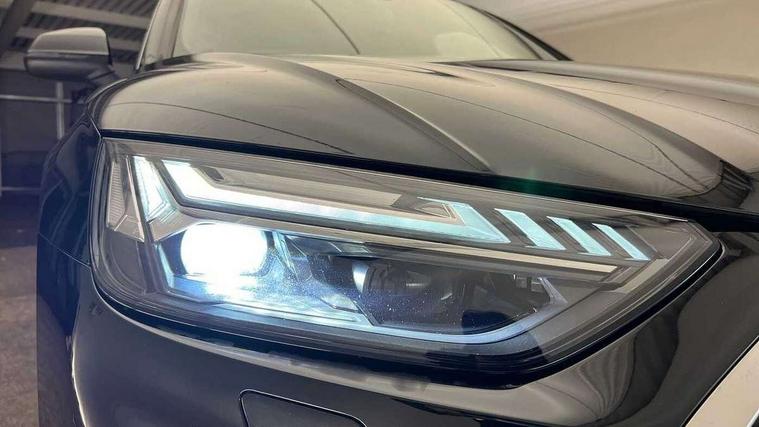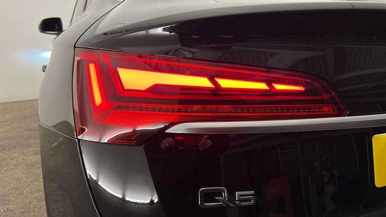 Audi connect safety and service (e-call), Audi connect with Amazon Alexa Integration, Audi drive select, Audi virtual cockpit plus with 12.3" screen and three different layout designs, Audi wireless smartphone interface, Automatic start-stop system with coasting functionality and efficiency programme, Bluetooth interface, Electro - mechanical power assisted steering, MMI navigation plus with 10.1" touch screen, Power tailgate, Reversing camera, Service interval indicator, Voice control system with Audi hotword activation "Hey Audi", Quattro on demand, S line sports suspension, DAB Digital radio, Acoustic windscreen, Aluminium roof rails, Audi matrix LED headlights with dynamic front and rear indicators, Auto dimming door mirrors, Auto dimming rear view mirror, Automatic headlight adjustment, Automatic headlights and windscreen wipers, Body colour door mirrors, Body colour rear diffuser with matt aluminium silver surrounds, Body colour underbody protection, Chrome plated exhaust trims, Daytime running lights, Door sills in Selenite silver, Electric adjustable/heated/folding door mirrors, Front air inlet surrounds in aluminium, Front and rear electric windows, Front radiator grille in honeycomb design, Headlight washers, High level LED brake light, Lower bumpers painted in contrast Manhattan grey, Rear chrome trim strip below lights, Rear privacy glass and rear side windows, Rear side wing doors, Rear wiper, Roof bars, S Line badges on the front wings, S Line front and rear bumpers, S Line rear spoiler, S Line side skirts, 2 x USB charging port with aux input socket, 3 rear headrests, 40:20:40 split folding 3 rear bench seat in 2nd row with rear centre armrest, Black cloth headlining, Comfort front centre armrest, Contrast stitching on seats, steering wheel and gear lever gaiter, Deluxe 3 zone electronic climate control, Front head restraints, Front/rear floor mats, Gear lever in black leather, Heated front seats, Height/reach adjustable steering column, Illuminated door sill trims with S logo, ISOFIX child seat mounting and top tether, Manual seat adjustment with 4-way electric lumbar support, Removable luggage compartment floor, Single front passenger seat, Stainless steel pedals, Sunvisors with vanity mirrors, Trunk roller cover, High gloss pack - Q5, LED interior light pack - Q5, 3 point seatbelts on all seats, 6 airbags - Driver, front passenger, curtain and side airbags, Electrically operated child locks on rear doors, Electromechanical parking brake, Electronic stabilisation control including ABS, ASR and EDL, Front passenger airbag deactivation, Hill descent control, Hill hold assist, Multi collision brake assist, Pop-up bonnet for pedestrian protection, Pre sense city, Seat belt force limiter, Seatbelt monitoring, Tyre pressure warning, Warning triangle and first aid kit, Anti theft alarm, Anti-theft wheel bolts, Keyless Go access/ignition system, Remote central locking, Matt brushed aluminium inlays,