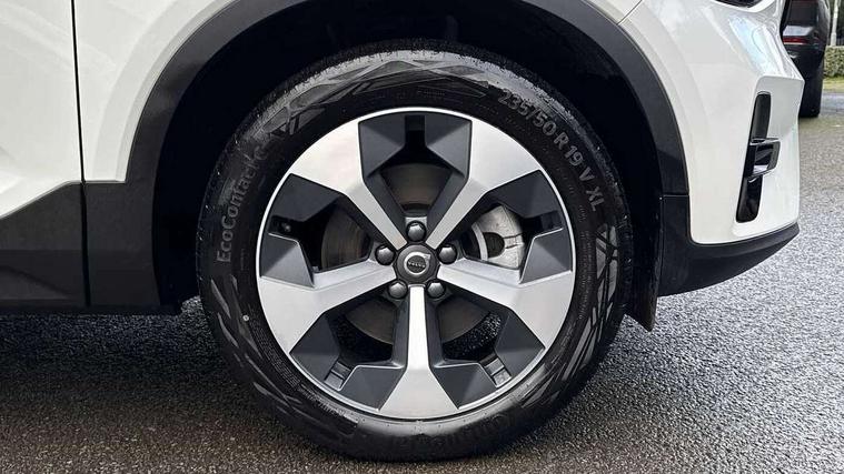 12.3" Progressive Driver Display, 9" centre console portrait touch screen, Adjustable steering wheel force, Android auto (Wired), Apple carplay (wired), Bluetooth handsfree system, Driver alert control, Driver assistance (pilot assist and adaptive cruise control), Driver awareness - Blind spot information system with steer assist, cross traffic alert with autobrake and rear collision warning and mitigation, E-call, Front and rear parking sensors, Front park assist, Google automotive services - Enabled entertainment apps, navigation with google maps, voice recognition with google assistant, Hands free power tailgate, Intelligent speed assistance, Lane keeping aid, Oncoming Lane Mitigation, Speed sensitive steering, Volvo cars services with app - Driving journal, emergency and breakdown call, engine remote start, remote door locking/unlocking and vehicle dashboard, Wireless/Inductive Mobile Phone Charging, Automatic transmission with start/stop and manual change functions, Dynamic chassis, DAB Digital radio, Steering wheel mounted remote controls, Adaptive brake lights with high level LED brake lights, Auto dimming feature for exterior door mirrors, Auto dimming interior mirror, Auto folding and heated power door mirrors, Automatic headlamp levelling, Automatic LED Headlights + Active high beam incorporating daytime running lights, Front aluminium tread plates, Front and rear electric windows, High gloss black front and rear skid plate, High gloss black front bumper deco, High gloss black mesh front grille with high gloss black surround, High gloss black window trim, Home safe and approach lighting, Integrated roof rails in high gloss black, LED front fog lights, Puddle lights, Rain sensor with automatic windscreen wiper activation, Rear side wing doors, Rear wiper, Roof antenna, Roof spoiler, Visible VIN plate, 12V socket in front tunnel console and luggage compartment, 2-Zone electronic climate control with CleanZone air quality system and pollen filter, 3 seat bench in 2nd row, 3 Spoke tailored steering wheel with chrome trim, 60/40 versatile split folding rear seat, Centre console cupholders and storage, Charcoal carpet and floor mats, Charcoal headlining, Connect suede textile/microtech upholstery, Flexible load floor and grocery bag holder, Front headrests, Front seat cushion extensions, Glovebox bag hook, Heated front seats, Height adjustable passenger seat, Height/reach adjustable steering column, High gloss centre tunnel deco, High level illumination - Front door pocket, front side step (under door), tailgate, instrument panel, front door inlay, rear courtesy&reading lights, Integrated waste bin, Isofix attachments on outer rear seats, Load cover, Load protection net, Mid level illumination - Front footwell, luggage & glovebox compartment, front cabin courtesy & reading lights, illuminated vanity mirrors+ticket holder, Multi directional lumbar support for driver and passenger seat, Power driver seat with memory + exterior mirrors memory, Rear armrest with cupholders, Rear headrests, Single front passenger seat, Underfloor luggage compartment storage, Climate pack without heated front seats - XC40, 3x3 point rear seatbelts, City safety with steering support with Pedestrian + cyclist + front collision warning with full auto brake and rear auto brake, Driver and passenger airbags, Drivers knee airbag, Electronic parking brake with auto hold, First aid kit, Front and outer rear seatbelt reminder and pretensioners, Front seats SIPS airbags, Hill descent control - Off-road drive mode, Hill start assist, IC (Inflatable Curtains) - Full Length, Passenger airbag cut-off device, Power child locks on rear doors, Road sign information display, Run off Road Protection, SIPS (Side Impact Protection System), Slippery road and hazard light alert, Stability and Traction Control with Spin control, Engine Drag Control and Corner Traction Control, Tyre pressure monitoring system, Vehicle deceleration control with Anti-lock Brake System, Electronic Brake Distribution and Emergency Brake Assist, Warning triangle, WHIPS whiplash protection system - front, 2 x Key integrated remote control central locking including with deadlocking system and auto open/close windows, Anti-theft alarm including immobiliser/volume sensor + level sensor, Keyless drive includes keyless entry and keyless start, Locking wheel nuts,