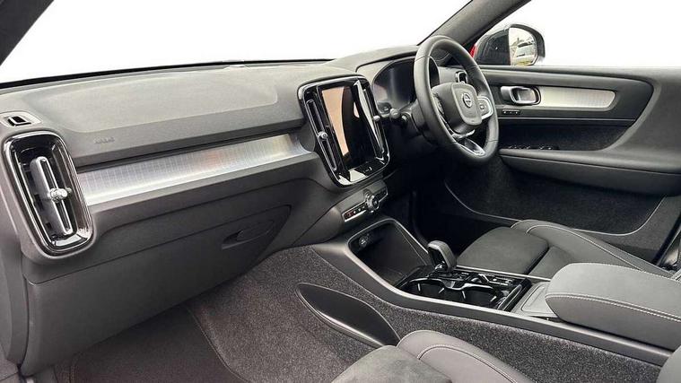 12.3" Progressive Driver Display, 9" centre console portrait touch screen, Adjustable steering wheel force, Android auto (Wired), Apple carplay (wired), Bluetooth handsfree system, Driver alert control, Driver assistance (pilot assist and adaptive cruise control), Driver awareness - Blind spot information system with steer assist, cross traffic alert with autobrake and rear collision warning and mitigation, E-call, Front and rear parking sensors, Front park assist, Google automotive services - Enabled entertainment apps, navigation with google maps, voice recognition with google assistant, Hands free power tailgate, Intelligent speed assistance, Lane keeping aid, Oncoming Lane Mitigation, Speed sensitive steering, Volvo cars services with app - Driving journal, emergency and breakdown call, engine remote start, remote door locking/unlocking and vehicle dashboard, Wireless/Inductive Mobile Phone Charging, Automatic transmission with start/stop and manual change functions, Dynamic chassis, DAB Digital radio, Steering wheel mounted remote controls, Adaptive brake lights with high level LED brake lights, Auto dimming feature for exterior door mirrors, Auto dimming interior mirror, Auto folding and heated power door mirrors, Automatic headlamp levelling, Automatic LED Headlights + Active high beam incorporating daytime running lights, Front aluminium tread plates, Front and rear electric windows, High gloss black front and rear skid plate, High gloss black front bumper deco, High gloss black mesh front grille with high gloss black surround, High gloss black window trim, Home safe and approach lighting, Integrated roof rails in high gloss black, LED front fog lights, Puddle lights, Rain sensor with automatic windscreen wiper activation, Rear side wing doors, Rear wiper, Roof antenna, Roof spoiler, Visible VIN plate, 12V socket in front tunnel console and luggage compartment, 2-Zone electronic climate control with CleanZone air quality system and pollen filter, 3 seat bench in 2nd row, 3 Spoke tailored steering wheel with chrome trim, 60/40 versatile split folding rear seat, Centre console cupholders and storage, Charcoal carpet and floor mats, Charcoal headlining, Connect suede textile/microtech upholstery, Flexible load floor and grocery bag holder, Front headrests, Front seat cushion extensions, Glovebox bag hook, Heated front seats, Height adjustable passenger seat, Height/reach adjustable steering column, High gloss centre tunnel deco, High level illumination - Front door pocket, front side step (under door), tailgate, instrument panel, front door inlay, rear courtesy&reading lights, Integrated waste bin, Isofix attachments on outer rear seats, Load cover, Load protection net, Mid level illumination - Front footwell, luggage & glovebox compartment, front cabin courtesy & reading lights, illuminated vanity mirrors+ticket holder, Multi directional lumbar support for driver and passenger seat, Power driver seat with memory + exterior mirrors memory, Rear armrest with cupholders, Rear headrests, Single front passenger seat, Underfloor luggage compartment storage, Climate pack without heated front seats - XC40, 3x3 point rear seatbelts, City safety with steering support with Pedestrian + cyclist + front collision warning with full auto brake and rear auto brake, Driver and passenger airbags, Drivers knee airbag, Electronic parking brake with auto hold, First aid kit, Front and outer rear seatbelt reminder and pretensioners, Front seats SIPS airbags, Hill descent control - Off-road drive mode, Hill start assist, IC (Inflatable Curtains) - Full Length, Passenger airbag cut-off device, Power child locks on rear doors, Road sign information display, Run off Road Protection, SIPS (Side Impact Protection System), Slippery road and hazard light alert, Stability and Traction Control with Spin control, Engine Drag Control and Corner Traction Control, Tyre pressure monitoring system, Vehicle deceleration control with Anti-lock Brake System, Electronic Brake Distribution and Emergency Brake Assist, Warning triangle, WHIPS whiplash protection system - front, 2 x Key integrated remote control central locking including with deadlocking system and auto open/close windows, Anti-theft alarm including immobiliser/volume sensor + level sensor, Keyless drive includes keyless entry and keyless start, Locking wheel nuts,