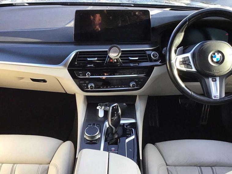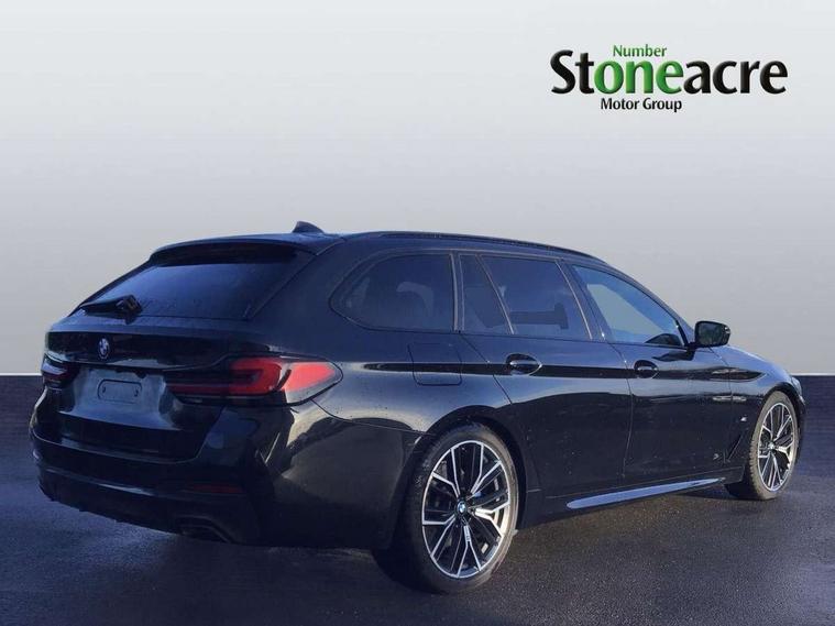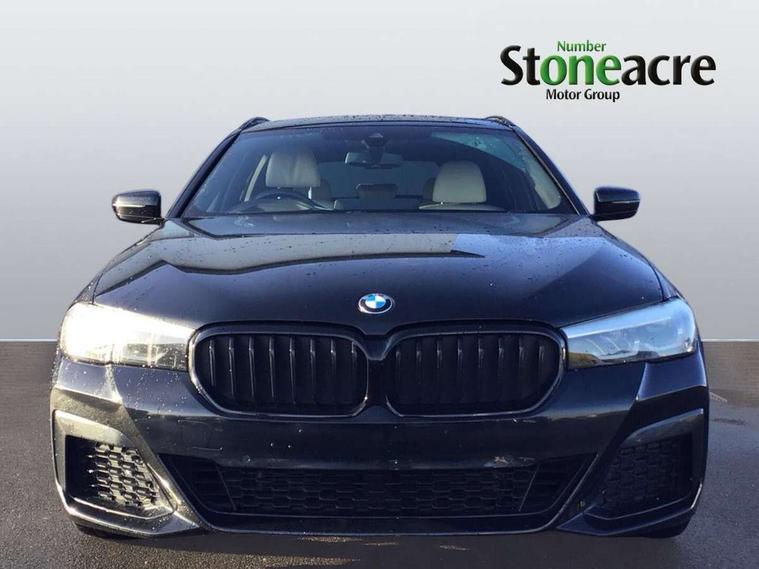 32GB hard disc drive (HDD) memory, Active Guard, BMW ConnectedDrive online services, BMW Live Cockpit Professional sat nav system with 12.3" instrument display and high resolution control display, BMW Teleservices, Brake pad wear indicator, Cruise control with brake assist, Driving experience switch, Electric boot lid - electrically opening/closing rear tailgate, Electric Power Steering (EPS) with Servotronic, iDrive touch controller with shortcut buttons, Intelligent emergency call, Multifunctional instrument panel, Oil sensor for level and grade, On board computer inc. average speed, fuel consumption, liquid crystal Info display, journey computer, outside temperature display, personal profile, On-board diagnosis - OBD, Powered by Operating System 7.0, Service interval indicator, Speed limiting function, Stop/start button, 48V Mild hybrid technology, Drive performance control with ECO PRO comfort + sport mode, Engine cover with twin turbo designation, M sport suspension, Petrol Particulate Filter, Steptronic transmission with gearshift paddles on steering wheel, DAB Digital radio, Favourite buttons, Acoustic glazing, All round anti-corrosion system, Automatically dimming rear view mirror, BMW Individual high gloss shadow line includes exterior mirror frame, window frame surround, B pillar finish, air breather in high gloss black, BMW Individual high gloss shadow line roof rails, Body colour door handles, Body coloured bumpers, Door handle illumination, Dynamic brake lights with LED technology, Electric front and rear windows with fingertip open/close + anti-trap facility and comfort closing function, Electrically adjustable and heated exterior mirrors includes integrated direction indicators and automatic parking function, Follow me home headlight function, Heated windscreen washer jets, High gloss black active air stream kidney grille, Independent opening for tailgate window, Interior rear view electrochromatic mirror with automatic anti dazzle function, LED daytime running lights, LED third brake light, M designation on front side panels, left and right in chrome, Rain sensor with automatic headlight activation, Trapezoidal visible exhaust tailpipes, 12V power socket in front and rear, 40/20/40 split folding rear seats with additional mechanism in luggage compartment, Armrest - front and rear integrated door trim, centre console includes storage compartment, rear centre includes 2 cupholders, Child seat ISOFIX attachment with rear outer seats includes top tether, Cup holders (2 front and 2 rear), Front and rear footwell lights, Front reading lights, Height and length adjustable steering column and activation via lateral lever on the steering column, Illuminated M door sill finishers, Lockable glove compartment with light, M specific pedals, M specific velour floor mats, Multifunction controls for leather steering wheel, Rear headrests, Retractable luggage compartment dividing net, Three spoke sport M leather steering wheel, Through loading system with 40/20/40 split folding rear seat, Ambient lighting pack - 5 Series, Connected package professional - 5 Series, Expanded exterior mirror pack - 5 Series, M Aerodynamic pack - 5 Series, 3x3 point rear seatbelts, Airbags - driver/front passenger, rear and side, first and second row seats head airbags, front passenger seat airbag deactivation + knee airbag, Anti-lock braking system (ABS), Automatic Stability Control (ASC), Brake assist function, Brake energy regeneration, Cornering brake control (CBC), Crash sensor activating central locking release, hazard warning lights, fuel cut off and interior lighting, Deformation zones - front and rear with door reinforcements and bumpers up to 2.5 mph, DSC - Dynamic Stability Control, Dynamic brake control, Dynamic Traction Control - DTC, Electromechanical parking brake with automatic drive away release and auto hold function, Electronic brake force distribution, Engine drag torque control, Front and rear brake discs with interior ventilation, Front head restraints with anti-whiplash, Hill start assist, Mechanical child proof lock on rear doors, Passive protection for pedestrians, Side impact protection, Three point seat belts for all four seats, Two tone horn, Tyre pressure indicator, Warning triangle and first aid kit, Alarm system (Thatcham 1) with remote control and electronic engine immobiliser, Locking wheel bolts,