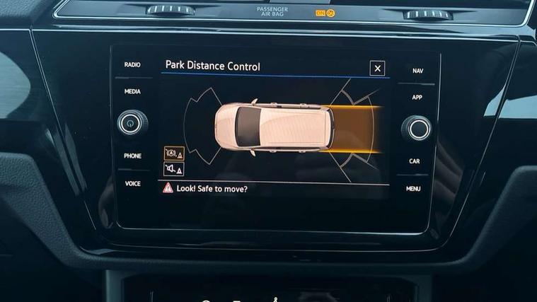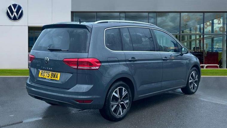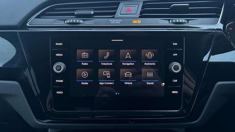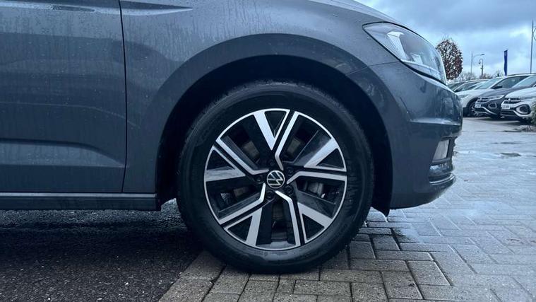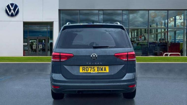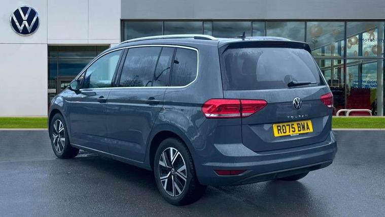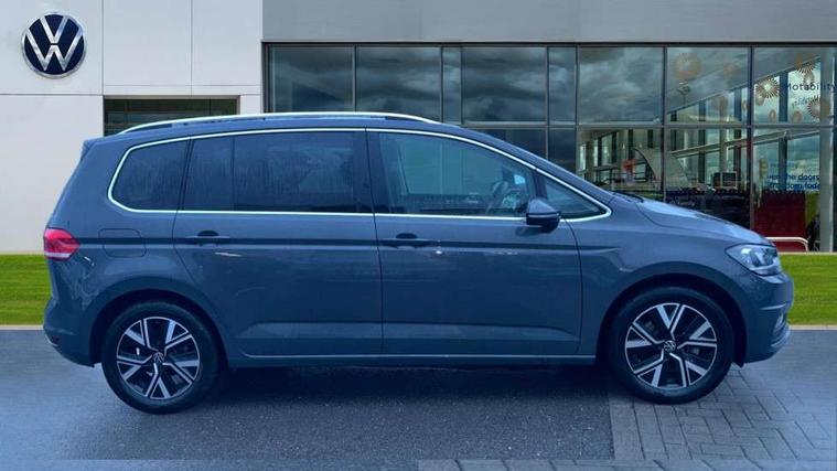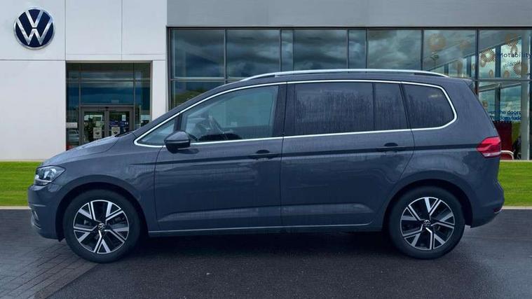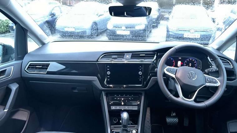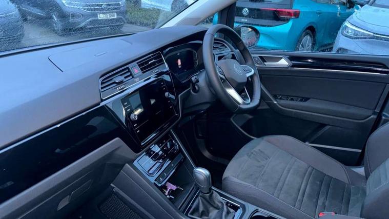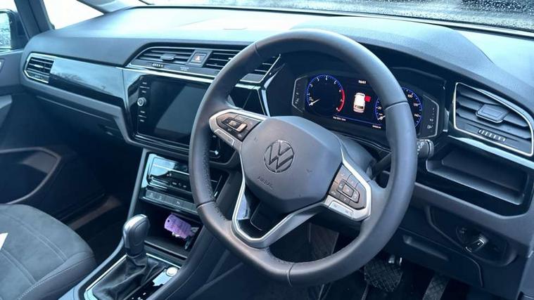 Active info display - Digital cockpit 10.25" HD display screen, Adaptive cruise control, Audible lights on warning, Discover media navigation touchscreen navigation/radio system with streaming and internet, Driver alert system, Driver electronic voice amplification function, Driver profile selection, Dynamic road sign display, Electronic odometer, Emergency services call system, Extended, crash-active and proactive Pedestrian and cyclist monitoring, External temperature gauge, Front parking sensors, Lane change system side assist and rear traffic alert, Lane keep assist, Mobile pairing with SMS function, Mobile phone interface with inductive charging, Rev counter with fuel gauge, Speed limiter, Speed sensitive power steering, Stop/start system, Think blue trainer driver tips and journey analysis, Trip and service interval display, Wireless app connect without mirror link, Petrol Particulate Filter, XDS electronic differential lock, 4x20 watt output, 8 Speakers, Audio Connectivity System, DAB Digital radio, External USB-C data socket with increased charging performance - 2 USB sockets 45W, MP3/WMA compatability, SD card slot, Title and cover art display, USB connection, Aerial integrated into side window, Auto dimming door mirrors, on driver side, surround lighting and front passenger side mirror lowering function, Auto dimming rear view mirror, Automatic coming/leaving home lighting function, Body colour bumpers, Body colour door handles, Body colour door mirrors with integral indicators, Chrome fog light surround, Chrome lower front bumper insert, Chrome trimmed front air intake surrounds, Chrome trimmed radiator grille louvre inserts, Chrome trimmed side windows, Dusk sensor + auto driving lights, Front and rear electric windows, Front fog lights with static cornering function, Fully galvanised body, Gloss black finish B pillar, Green tinted heat insulating glass, High level third brake light, Rain sensor, Rear side wing doors, Rear tinted glass from B-pillar backwards approx 65% tinted, Rear wash/wipe with intermittent wipe setting, Silver roof rails, Tailgate wiper- reverse gear activation, Twin chrome exhaust tailpipes, Volkswagen roundel, Windscreen wipers intermittent wipe, 12V power point for Row 2, 12V socket in luggage compartment, 2 individual fold flat 3rd row seats, 2 three point seatbelts in 3rd row, 2nd row centre armrest, 2nd row centre seat converts into table, 3 single slide/fold/removable 2nd row seats, 3 spoke steering wheel, 3 Zone electronic climate control with automatic air recirculation, 3x3 point seatbelts on 2nd row with height adjust on outer seats, 4 boot load lashing points, 4 way adjustable front head restraints, 5 headrests, Ambient lighting in door trim and foot well, Art velour/Microfibre cloth upholstery, Driver and front passenger under seat drawer, Dust/pollen filters, Foldable front passenger seat backrest, Front + rear carpet mats, Front and rear reading lights, Front centre armrest with storage compartment, Front comfort seats with lumbar support, Front cupholders x 2, Front passenger seat height adjust, Front seat storage pockets, Front seatback folding tables, Height adjustable driver's seat, Height/reach adjust steering wheel, Illuminated glovebox, Illuminated vanity mirrors, Instrument lighting white adjustable panel illumination with red night time illumination, Interior light with delay, Isofix on 2nd row outer seats, Isofix on 3rd row seats, Large storage compartment in roof console, Leatherette on rear of front seats, Low tunnel 2nd row seat, Luggage compartment lighting, Media box in dashboard on passenger side, Multi storage in passenger/luggage areas, Multi-function centre console with storage facilities, Multifunction leather trimmed steering wheel including leather trimmed gear knob with 3.5" screen with multifunction computer, Retractable luggage cover, Split folding rear seat backrests, Storage bins on all doors, Mirror pack - Touran, 3 point height adjustable front seatbelts, Auto hold function, Automatic post collision braking system, Door open warning reflectors, Driver/Front Passenger airbags, Drivers knee airbag, EDL + ASR, Electrically operated child locks on rear doors, Electronic parking brake, Energy recovery system, ESC with ABS, First aid kit, Front and rear (row 2) curtain airbags, Front assist including city emergency braking, Front seat side impact airbags, Front seatbelt pretensioners, Front/rear disc brakes, Hill hold control, Hydraulic Brake Assist (HBA), Loose wheel warning function, Manual passenger airbag deactivation function, Pre crash preventive occupant protection, Proactive passenger protection system with front and side assist, Rear child proof door locks, Seatbelt warning lamp and buzzer, Traction control, Two tone horn, Warning triangle, Alarm with remote central locking and interior protection, Electronic engine immobiliser, Chrome plated instrument surrounds, Piano black decorative inserts, 17" Alexandria alloy wheels with self sealing tyres and anti-theft wheel bolts,
