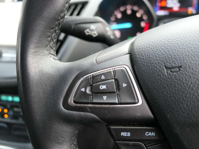 Bluetooth system, EPAS, Rear parking sensor, SYNC Emergency Assistance, Trip computer, Auxiliary socket for external device, Remote audio controls on steering wheel, USB connection, Auto dimming rear view mirror, Automatic headlights, Body colour bumpers, Body colour rear spoiler, Electric folding mirrors, Electrically heated door mirrors, Front scuff plate, Halogen headlights, LED daytime running lights, Power front and rear windows, Quickclear heated windscreen, Rain sensor windscreen wipers, Rear diffuser, Tailgate wash/wipe, Twin exhaust pipes, 6 way manually adjustable passenger seat, 60/40 split/folding rear back and cushion, Auxiliary power socket in luggage area, Centre console with stowage tray/bottle holder/CD stowage/front and rear 12V power point, Cloth/Salerno leather upholstery, Driver seat lumbar adjustment, Driver/passenger front seatback pockets, Dual electronic automatic temperature control, Folding rear centre armrest, Footwell courtesy lights front and rear, Front floor mats, Front head restraints, Front overhead courtesy lights with theatre style dimming and delay, Front/rear reading lights, Isofix system on outer rear seats, Leather gearknob, Leather steering wheel, Memory for drivers seat/door mirrors, Multi-colour ambient interior lighting, Passenger lumbar support, Reach + rake adjustable steering column, Rear floor mats, Rear head restraints, Sports style front seats, Stowage unit in upper instrument panel, Tie down hooks, Tonneau cover, Variable intensity instrument illumination, 3 point seatbelts on all 3 rear seats, ABS/EBD, Driver and passenger airbags, Driver and passenger side airbags, Electric traction assist system, Electronic parking brake, ESP+EBA, Front and rear curtain airbags, Hill start assist, Intelligent Protection System (IPS), Tyre pressure monitoring system, Immobiliser, Keyless entry, Keyless start, Locking wheel nuts, Remote central locking, Thatcham Cat.1 alarm, Mini steel spare wheel,