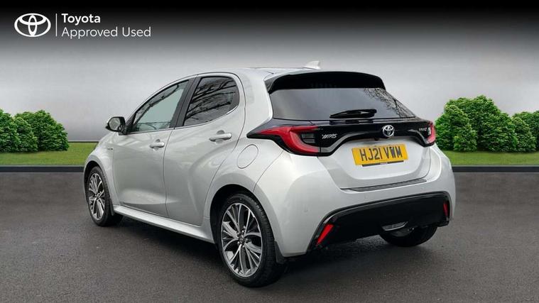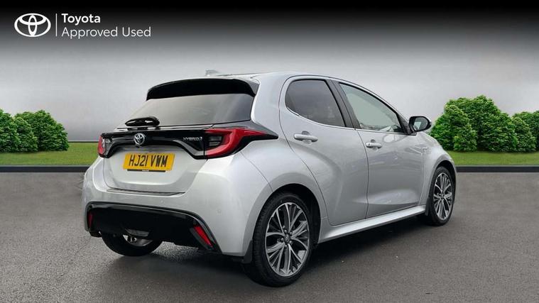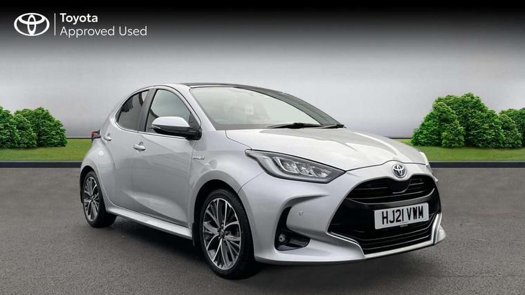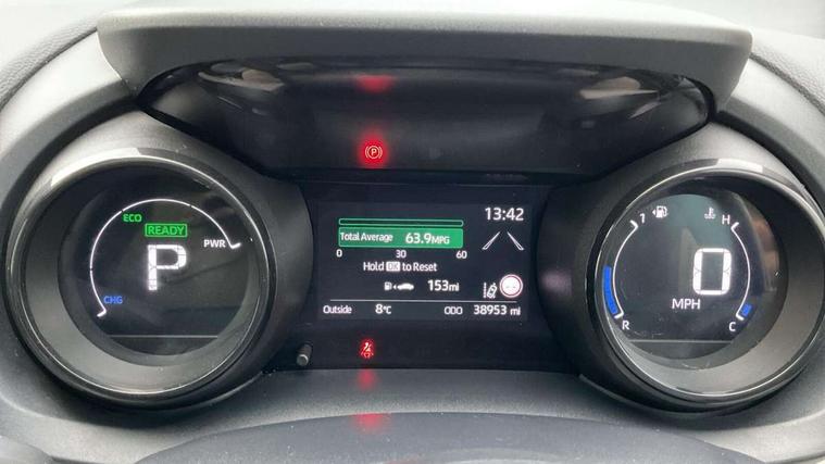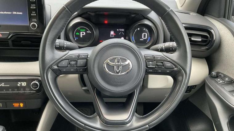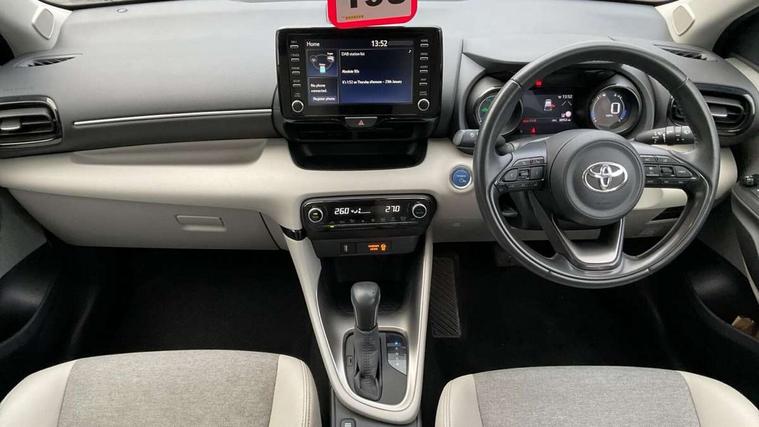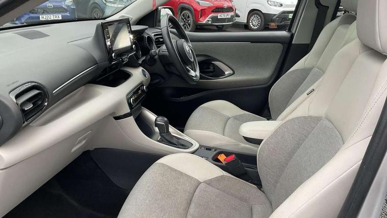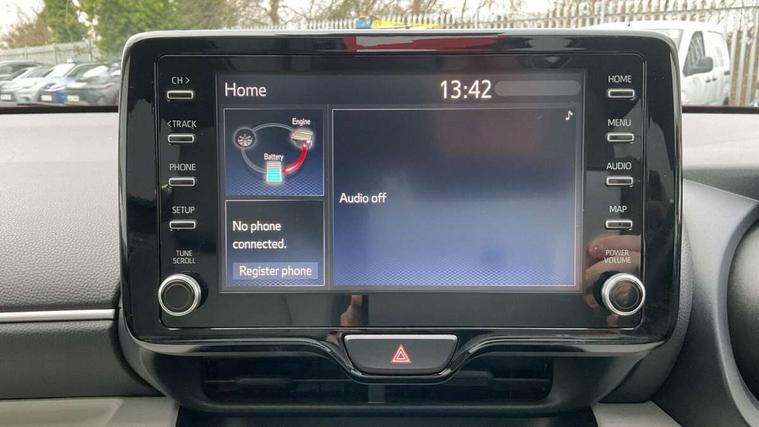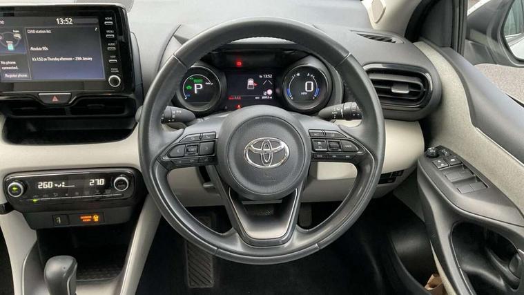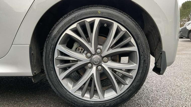 Adaptive cruise control, Adjustable speed limit with speed warning, Blind spot monitoring, Bluetooth connectivity, Colour binocular inspired displays with digital speedometer, E-call, Electric power steering, Front and rear parking sensors and intelligent clearance sonar with automatic braking, Hybrid energy display, Multi information display switches on steering wheel, Reversing camera, Smartphone integration with Apple CarPlay and Android auto, Vehicle Stability Control (VSC), 6 speakers, 8" Multimedia display touch screen, Toyota Touch 2 with DAB, USB connection, Acoustic windscreen glass, Auto windscreen wipers, Automatic headlights, Automatically retractable door mirrors, Body coloured door mirrors, Electric adjustable heated door mirrors, Follow me home headlights, Front auto power windows with anti jam protection, Full LED rear lights, LED daytime running lights, LED front fog lights, LED Headlights, LED High mounted stop lamp, Painted front grille, Rear auto power windows with anti jam protection, Rear privacy glass, Rear spoiler, Satin lower front grille, Shark fin antenna, Turning signal integrated indicators in door mirrors, 3 adjustable rear headrests, 3 spoke leather steering wheel, 60/40 split folding rear seat, Adjustbale boot height, Coat hooks in rear grab handles, Cup holders (2 front & door), Data Communication Module (DCM) connected services, Dual zone automatic air conditioning, Fabric seat with partial synthetic leather upholstery, Front armrest, Front sport seats, Glovebox, Height adjustable driver's seat, Height adjustable passenger seat, Isofix seat fixing, Leather gearshift, Map pockets on the backs of the front seats, Pollen filter, Shopping bag hooks, Tilt/telescopic steering column, 3 point seatbelts on all rear seats, ABS+EBD+Brake assist, Active headrests, Electronic parking brake, Emergency brake light system (EBS), Front passenger airbag on/off switch, Front seatbelt reminder, Hill start assist control (HAC), Rear child proof door locks, Rear seat belt reminder, Supplemental Restraint System (SRS) 8 airbags: Driver & passenger's airbags, dual side curtain airbags, side impact airbags, front centre airbag, Toyota Safety Sense 2, Precollison + Night time Pedestrian & Cyclist Detection, Lane Trace Assist, Auto High Beam, Intelligent ACC & Road Sign Assist, Tyre pressure warning system, Alarm/immobiliser, Keyless smart entry with push button start, Remote powered central double locking doors, Satin chrome interior styling, Soft touch instrument panel, Space saver spare wheel,