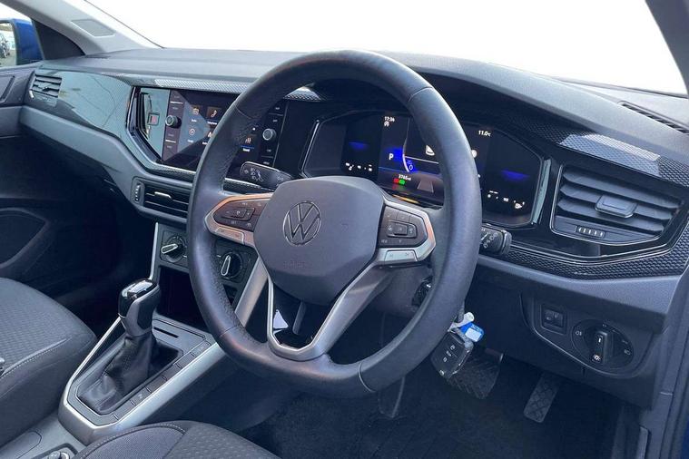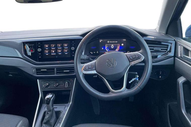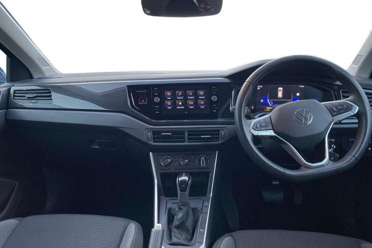 Advanced driver attention and drowsiness monitor, Bluetooth mobile phone interface, Dynamic road sign display, Emergency call service, Mobile phone preparation with inductive charging function, Multifunction front facing camera for distance control, Power assisted speed sensitive steering, Predictive adaptive cruise control without follow-to-stop and speed limiter, Preparation for navigation system with media and internet package, Preparation for We connect and We connect plus, Rear view camera, Speedo and rev counter, electronic odometer, trip, service interval display and exterior temperature gauge, Standard rear axle, Travel Assist - Lane keeping system and traffic jam assist, Travel assist including emergency assist, Trip computer, Warning signal and warning light for front and rear seatbelts not fastened, Washer fluid level indicator, Wireless app connect, Front wheel drive, Rear shock absorpion, Start-stop system with battery regeneration (recuperation - energy recovery during braking), DAB Digital radio, Diversity antenna for FM reception, Automatic dimming interior rear view mirror, Automatic headlight control with LED separate daytime running lights with coming/leaving home function, Body colour bumpers with chrome inserts, Body colour door handles, Body colour door mirrors, Electric front windows, Engine badge deletion, Headlight range adjustment, Heat insulating and laminated safety glass windshield, LED Headlights, LED rear combination lamps, Power folding adjustable/heated exterior mirrors and front passenger exterior mirror lowering function, Rain sensor, Rear electric windows, Rear fog light, Rear side wing doors, Rear tinted glass from B-pillar backwards approx 65% tinted, Rear windscreen washer and wiper with interval delay, Third brake light, 12V power socket in centre console, 2 front and 2 rear reading lights with switch off delay and dimmer, 2 USB-C ports in the front, 2 USB-C charging sockets on the center console in the rear, 3 rear head restraints, 60/40 split folding rear seat and rear seat bench not split, Ceramique roof lining, Chrome plated radiator grille inserts, air vent surrounds and light switch surrounds, Door and side trim panel, Driver and front passenger seat height adjustment, Driver/passenger sunvisors with illuminated vanity mirrors, Front centre armrest, Front seat backrest storage pockets, Front standard seats, Handbrake lever handle in leather, Hartley/Thomas cloth upholstery, Headliner in recycled material, Isofix child seat preparation easy-fit (for two outer rear seats, and front passenger seat) compatible with I-size, Leather trimmed gear knob, Luggage compartment cover, Luggage compartment lighting, Removable luggage compartment floor, Single front passenger seat, Standard climatic zones, Standard pedal cluster, Three spoke leather wrapped multifunction steering wheel with shifting paddles, Light and vision pack - Polo, 3 point height adj front seatbelts + pretensioners, 3 point seat belt for centre rear seat, 3 point seatbelts, outer rear with ECE lable, ABS, Driver and front passenger airbag with front passenger airbag deactivation, Drivers and front passengers safety optimised head restraints, ESC (Electronic stability control) + EDL (Electronic Differntial lock) and ASR (Traction control), Extended and predictive pedestrian/ cyclist protection, Front assist with autonomous emergency braking (for Adaptive Cruise Control ACC up to 130 mph), Front curtain and side airbags with center airbag, Front disc brakes, Hill hold control, Manual child lock in rear doors, Rear drum brakes, Single tone horn, Tyre pressure loss indicator, Alarm with interior protection, Anti-theft alarm system with interior monitoring, backup horn, and towing protection, Anti-theft wheel bolts, Electronic engine immobiliser, Lava stone black gloss/matt decorative inserts in dash and front door panels, 16" Torsby alloy wheels, Low rolling resistance tyres,