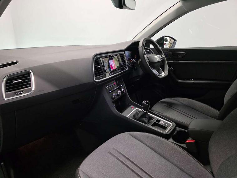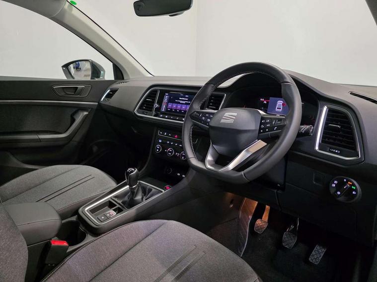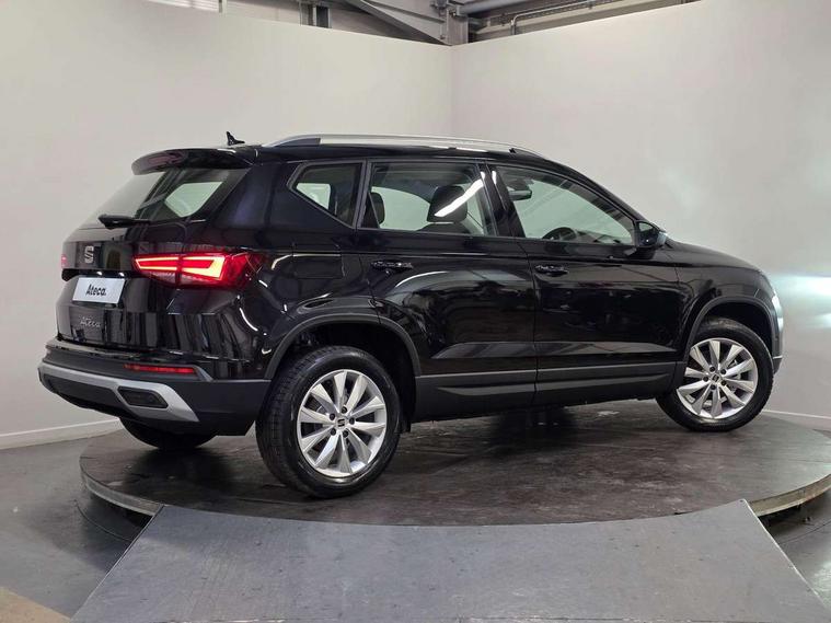 8" Digital cockpit, Cruise control system with speed limiter, E-call, Outside temperature gauge, PAS, Self parking functionality (includes front and rear parking sensors), Start/stop system, Tailgate, Trip computer, wired and wireless full link smartphone integration, Wireless phone charger, Black side window trim, Black wheel arch surrounds, Body colour bumpers, Chrome front grille frame, Chrome roof rails, Daytime running lights, Door mirrors with welcome light silhouette, Dynamic headlight range control with self adjusting whilst driving, Electric adjustable/heated/folding door mirrors, Front and rear electric windows, LED 3rd brake light, LED headlamps with lens and LED front fog lamps with cornering function, LED rear tail lights with dynamic indicators, Rear exhaust tailpipe, Rear fog lights, Rear side wing doors, Rear wash/wipe, Variable front intermittent wipers, 12V socket in front, 3 seat bench in 2nd row, 60/40 split folding rear seat, Cloth upholstery with front comfort seats, Drawer under right front seat, Dual zone climate control, Front and rear head restraints, Front centre armrest, Front seat back storage pockets, Height adjustable driver and passenger seat with lumbar adjustment, ISOFIX points in outer rear seats with top tether anchorage points, Leather sports steering wheel and gear knob, Rear armrest and easy back seat release mechanism from boot, Single front passenger seat, Convenience pack - Ateca, Interior lighting pack - Ateca, Media system plus pack - Ateca, Safety and driving pack with attention and drowsiness assist - Ateca, 3x3 point rear seatbelts, ABS, Traction control system (TCS), Electronic stability control (ESC) and Electronic differential lock system (XDS), Airbags - Driver and front passenger airbag with deactivation, front side, two curtain and driver's knee airbags, Electric parking brake with auto hold function, Front and rear seatbelt reminder, Front assist with autonomous emergency braking, Hill hold control, Manual rear child locks, Single tone horn, Tyre pressure monitoring system, Alarm, Keyless entry, Locking wheel bolts, Remote central locking, Chrome interior detailing, 17" Brilliant silver alloy wheels with super low rolling resistance, Tool kit,