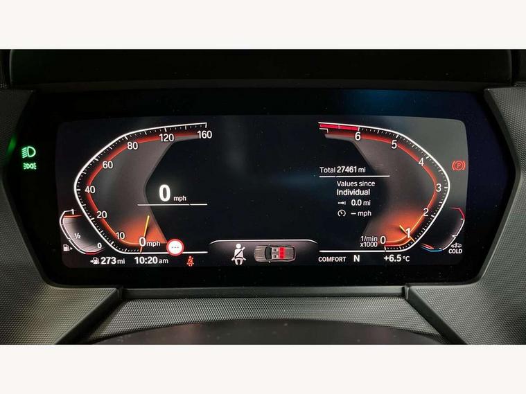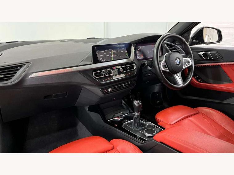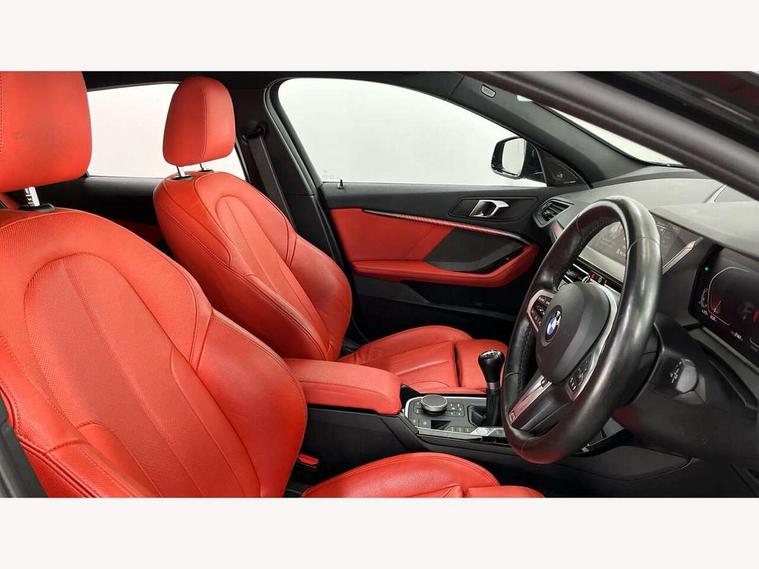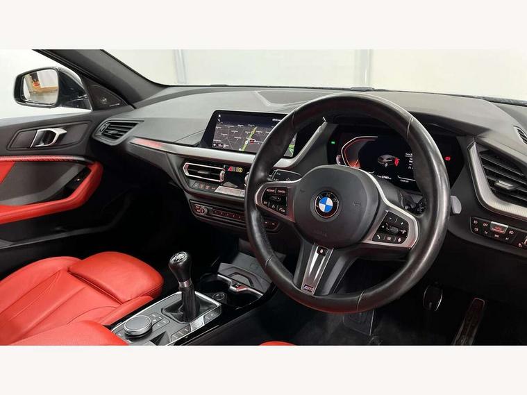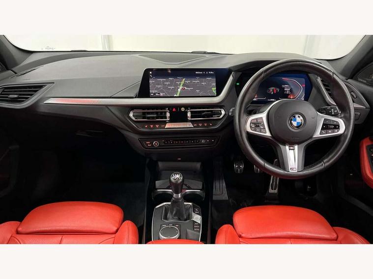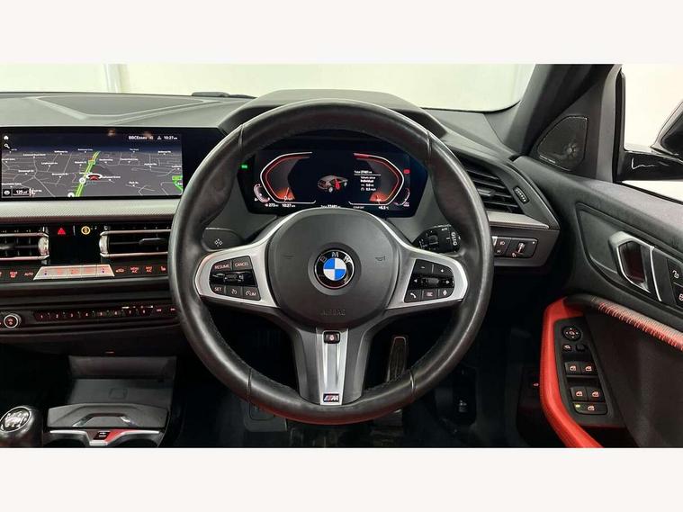 Active guard plus, Attentiveness assist, BMW ConnectedDrive online services, BMW Teleservices, Check Control warning system for monitoring of lights and door/luggage compartment open warning, Cruise control with speed limiter, Eco pro mode, Front axle single joint with specific axle kinematics to minimise drive influences on steering + provide increased rigidity agile driving behaviour, Integrated owners handbook, Lane departure warning system, Oil sensor for level and grade, On board computer, Optimum shift indicator, Personal Profile, Pull away assistant, Rigidly mounted rear subframe - Multi link construction with separate spring / damper configuration and excellent driving characteristics, Speed limit Info including no-overtaking indicator, Aluminium lightweight construction, Anti roll bar front and rear, Balancer shaft, Double VANOS twin scroll turbocharging system, Drive Performance Control, Electronic differential lock, High precision injection, M sport suspension, Petrol Particulate Filter, Twin tube gas filled shock absorbers with degressive characteristic curve, VALVETRONIC engine management, DAB Digital radio, Auto dimming rear view mirror, Automatic headlight beam throw control, Automatic windscreen wipers and automatic headlight, Body colour door handles, Body colour mirror caps, Body colour roof trims, Chrome 'M' logo side designation, Chrome exhaust twin tailpipes round 90mm in left, Chrome kidney grille frame with Satin Aluminium struts, Direction indicator side lights in exterior mirrors, Electrically adjustable exterior mirror with mirror adjustment switch on drivers armrest and aspheric on driver side, convex on passenger side, Fading support, Folding side mirrors with auto dimming/folding wing mirrors with auto dimming, Follow me home headlights, Front and rear bumper system with replaceable deformation elements, Front and rear electric windows with open and close fingertip control, anti trap facility and comfort closing, Front door sill finishers in black plastic with M designation in metallic look, Green tinted heat protection glazing, High gloss shadowline window frame, Recess cover mirror frames and B/C pillar embelisher trim, High level third brake light, Integrated front windscreen with washer jets, LED daytime running lights, LED eyebrow turn indicators, LED front fog lights, Lightweight engineering, Matt black air guide grilles, Matt black wheel arch trim, Model designation on electric bootlid, Nearside reverse light in rear light cluster, Preparation for high beam assistant, Rear fog lights, Rear side wing doors, Rear window wiper, Shark fin antenna, Trailer stabilisation logic, Visible VIN plate, Welcome lighting, 12V power socket in front centre console with blanking plug, 3 rear seat head restraints, 3 seat bench in 2nd row, 3 spoke sports leather steering wheel in black leather with black stitching and decorative finisher in pearl chrome, specific M badge + leather knob, Anthracite headlining, Black boot net with lashing eyes, Cargo function on 2nd seat row, Child seat ISOFIX attachment for two outer rear seats and front passenger seat with anchorage points, Conditioned based service, Driver and front passenger backrest net on rear, Driver and front passenger seat heating, Driver side folding compartment in instrument panel, Folding rear clothes hook, Four grab handles integrated in roof lining, Front and rear door pockets with bottle holders, Front and rear side armrest integrated into door trim, Front armrest, Front sports seats, Gearshift lever with M designation, Glove compartment, Height adjustable front head restraints, Luggage compartment for bag hooks on left and right, foldable luggage compartment liner and four lashing eyelets, Manual adjust steering wheel, Multi-function controls for steering wheel, Single front passenger seat, Storage compartment in centre console, Storage compartment in luggage compartment, Stowage of the parcel shelf in luggage compartment trim, Sun visors with vanity mirrors and insert tab, Two front centre console cupholders, Two zone automatic air conditioning, Type C two USB ports in rear centre console, Velour floor mats, Additional interior lighting pack - 1 Series, BMW live cockpit professional pack- 1 Series, Connected pack professional - 1 Series, Interior lights pack - 1 Series, M Sport exterior styling aerodynamics pack - 1 Series, 2 tone horn, 3 point seatbelts on all seats, front pyrotechnic belt tensioners, stopper and belt force limiters, rear coded belt buckles, Airbags - Front driver/passenger, front and rear curtain head protection, front side, manual deactivation of front passenger airbag, Anti lock braking system (ABS) with brake assist, BMW emergency call, Brake drying, Braking readiness, Child proof locking system in rear door, City braking function, Comfort modes, Cornering brake control, Crash sensor activating of airbags, Unlocking doors, hazard warning lights, interior light, safety battery terminal, Driver and front passenger seat belt security check, Dynamic stability control + (DSC+), Dynamic Traction Control - DTC, Electrically operated hand brake, Front and rear disc brakes, Seatbelt warning, Side impact protection, Tyre pressure monitoring system, Warning triangle and first aid kit, Central locking switch for all doors, fuel filler cap and luggage compartment, Deadlocking function system to all doors, Drive away locking system on all doors and luggage compartment with de-activated in iDrive settings, Locking wheel bolts, Remote control with integrated key with High-gloss Black inlay and M designation and 1 button for open/ close lock, window, open luggage compartment, Start/stop button illuminated in centre console with keyless engine start and auto start stop deactivation button, Thatcham Cat.1 alarm and immobiliser, Wheel slip limitation close to the actuator (ARB), Contrast stitching on instrument panel, 18" Burnished M double spoke bi-colour alloy wheels finished in orbit grey - style 819M