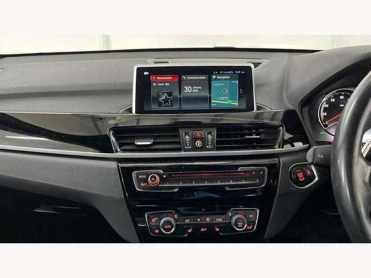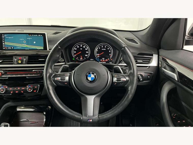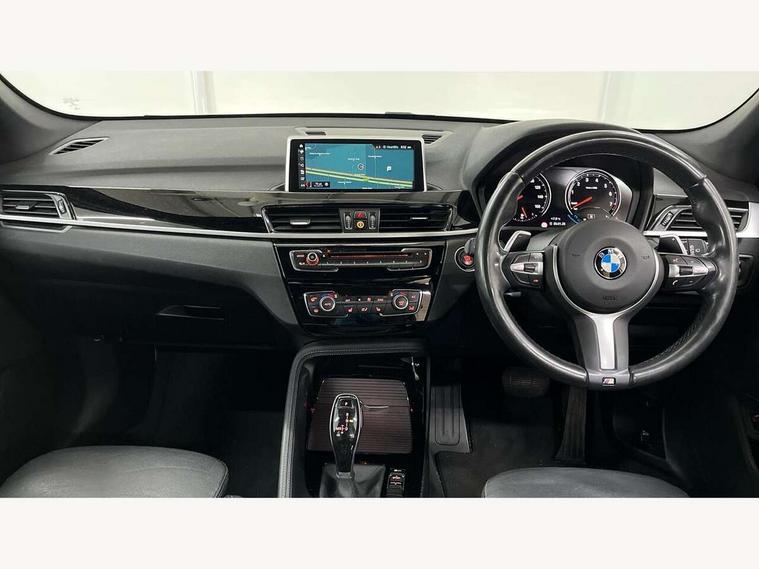 Active Guard incl speed limiting and lane departure functions with auto steering, and front collision warning with brake intervention, Ambient temperature display, Attentiveness assist, Automatic tailgate opening, BMW Online services, BMW remote services, BMW Teleservices, Brake pad wear indicator in front and rear, Instrument cluster with speedometer with miles per hour read out, tachometer and fuel gauge, Lights on warning by audio warning signal when ignition is switched off, On board computer, Outside temperature gauge, Personal Profile - automatic lock when driving away selectable, Real time traffic information, Service interval indicator, Speed limiter, Stop/start button, Tyre puncture warning system, 12V compressor with integrated sealant injection bottle and hose, Drive performance control with ECO PRO comfort + sport mode, Electronic differential lock, High precision injection, Performance Control, 2 USB Power socket for rear seat, BMW professional radio with CD player, DAB Digital radio, USB connection located in centre console, USB/audio interface, Adaptive LED Headlights, Adjustable headlights, Body colour bumpers, Body colour door handles, Body colour door mirrors, Clear lenses direction indicator lights, Direction indicator side lights integrated exterior mirrors, Dynamic brake lights, Electrically adjustable and heated door mirrors, Fingertip control / anti-trap function on electric window, Follow me home headlights, Front air inlets with black matt finisher and silver matt highlight, Front and rear electric windows, Front fog lights, Halogen headlights, Headlight beam throw control, Heat insulating tinted glass, Heated windscreen washer jets, High level third brake light, kidney grille with high gloss black vertical slats, LED daytime running lights, Lightweight engineering, M aerodynamic body styling, M door entry sills, M logo designation in side chrome, Rain sensor including auto headlights activation, Rear fog lights, Rear window aerial, Rear window wash/wipe, Reversing light in rear light cluster, Shark fin antenna, Sill cover in silver matt insert, Twin chrome exhaust tailpipes x2, Visible VIN plate, Welcome home function, 12v power point in centre console, 3 rear headrests, 3 spoke sport nappa leather steering wheel, 4 grab handles, Anthracite headlining, Boot light, Centre console with cupholders, Child seat ISOFIX attachment for two outer rear seats and front passenger seat with anchorage points, Driver and front passenger heated seats, Driver/passenger sunvisors with ticket holders, Drivers folding storage compartment, Dual zone automatic air conditioning, Extended storage, Front and rear door armrests, Front centre armrest/sliding cover, Front sports seats, Front/rear adjustable head restraints, Gearshift lever with M designation, Illuminated glovebox, Leather gearknob/gaiter/handbrake grip, LED ambient lighting in door trim, Luggage area underfloor compartment, Luggage compartment lighting, Luggage compartment loading edge with stainless steel insert, Multifunction steering wheel, Rake/reach adjustable steering wheel, Rear coded belt buckles, Sliding/split/reclining 40/20/40 rear seat with 60/40 split rear seat base, Steering wheel gearshift paddles, Velour floor carpets, Extended storage package - X1, 3 rear 3 point seatbelts, ABS/EBD, Audio/visual collision warning system, Automatic Stability Control (ASC), Battery safety cut-off, BMW emergency call, Brake drying, Brake energy regeneration, Braking readiness, Collision mitigation braking system, Cornering brake control (CBC), Crash Sensor - activates hazard/interior lighting + unlocks doors, Driver/Front Passenger airbags, Driver/front passenger side airbags, Dynamic brake control, Dynamic stability control + (DSC+), Dynamic Traction Control - DTC, Electronic parking brake, Front and rear head airbags, Front passenger airbag deactivation, Front seatbelt force limiters, Front ventilated disc brakes, Hill start assist, Pyrotechnically pre-tensioned front seatbelts, Rear disc brakes, Rear door child safety locks, Seatbelt warning, Side impact protection, Twin horns, Tyre pressure monitor, Warning triangle and first aid kit, Auto door lock when driving, Central locking including boot and fuel flap with deadlocks, Engine immobiliser, Locking wheel nuts, Remote control Thatcham category 1 alarm, Remote control with integrated key with M specific highlight, High gloss black centre console, Low rolling resistance tyres,