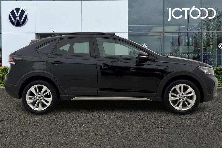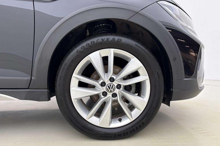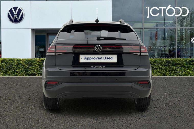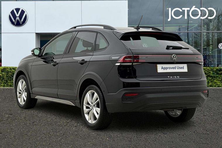 Advanced driver attention and drowsiness monitor, Dynamic road sign display, e-Call (emergency call), Power Steering, Rear view camera, Travel assist including emergency assist, Washer fluid level indicator, Wireless Charging including Bluetooth, Start-stop system with battery regeneration (recuperation - energy recovery during braking), WeConnect plus, Ambient lighting with logo projection, Aspherical driver's exterior mirror, Body coloured bumpers, Body coloured exterior mirror housings and door handles, Electric windows, External USB type C socket and charging sockets, Heat insulating glass windscreen, LED rear combination lamp, LED third brake light, Left convex exterior mirror, Power folding adjustable/heated exterior mirrors and front passenger exterior mirror lowering function, Rear fog light on one side, reversing light on both sides, Rear side wing doors, Rear wash/wipe with intermittent wipe setting, Side windows in heat-insulating glass, from B-pillar and rear window dark tinted, 'Slash/ Austin' Cloth upholstery, 12V socket in centre console, 2 front reading lights, 3 rear head restraints, 3 seat bench in 2nd row, Black carpets, Ceramique headliner, Child seat anchor for child seat system i-Size, 2x top tether and child seat anchor in front on front passenger side, Door and side trim panels in titan black, Driver and front passenger seat height adjustment, Front centre armrest, Handbrake lever handle in leather, Height and reach adjustable steering wheel, Leather trimmed gear knob, Leather wrapped multifunction steering wheel, Luggage compartment floor, Luggage compartment light, Lumbar support for driver's and front passengers seat, Seat covers in titanium black, Single front passenger seat, Split folding backrest with centre armrest and unsplit rear seat bench, Storage compartment under front seats, Sun visors with illuminated vanity mirrors, Titanium black instrument panel, Chrome Package - Taigo, Drivers assistance package - Taigo, Light and sight pack - Taigo, 2 x 3-point seatbelts/outer rear seats with ECE label, 3-point seat belts in front with pretensioner and height adjustment, 3-point seatbelt for centre rear seat, Driver and front passenger airbag with front passenger airbag deactivation, Driver and front passenger safety-optimised head restraints, Electronic stability control, Extended and predictive pedestrian/ cyclist protection, Front and rear disc brakes, Front curtain and side airbags with center airbag, Hill start assist, Manual rear child locks, Single tone horn, Tyre pressure loss indicator, Anti-theft alarm system with interior monitoring, backup horn, and towing protection, Anti-theft wheel bolts, Keyless locking and starting system keyless access with safelock, Black (slush) Dashboard, Lava stone black gloss/matt decorative inserts in dash and front door panels, Low rolling resistance tyres,
